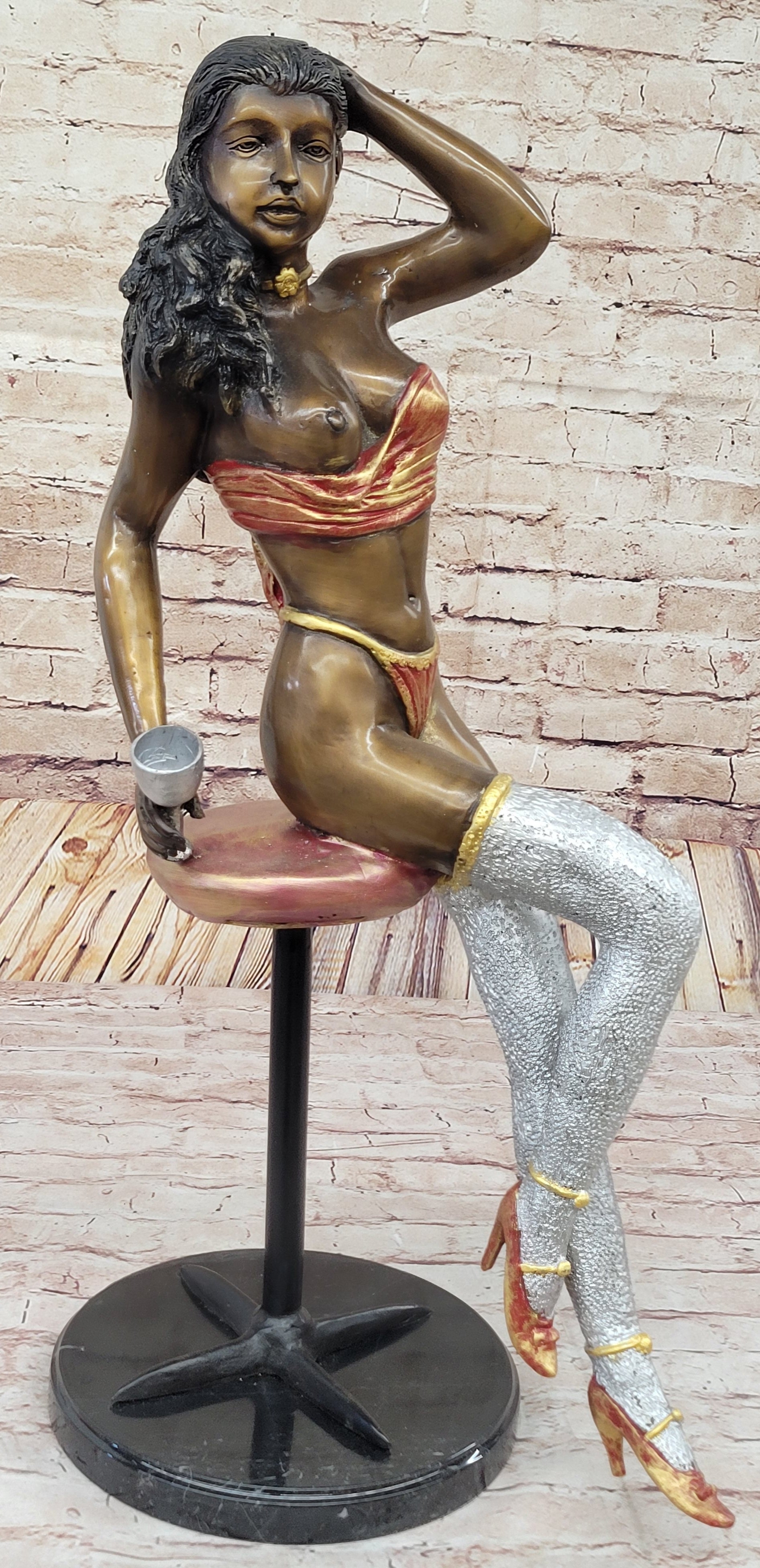 Sexy Nude Girl Sitting on a Stool Limited Edition Signed and Numbered Bronze Statue