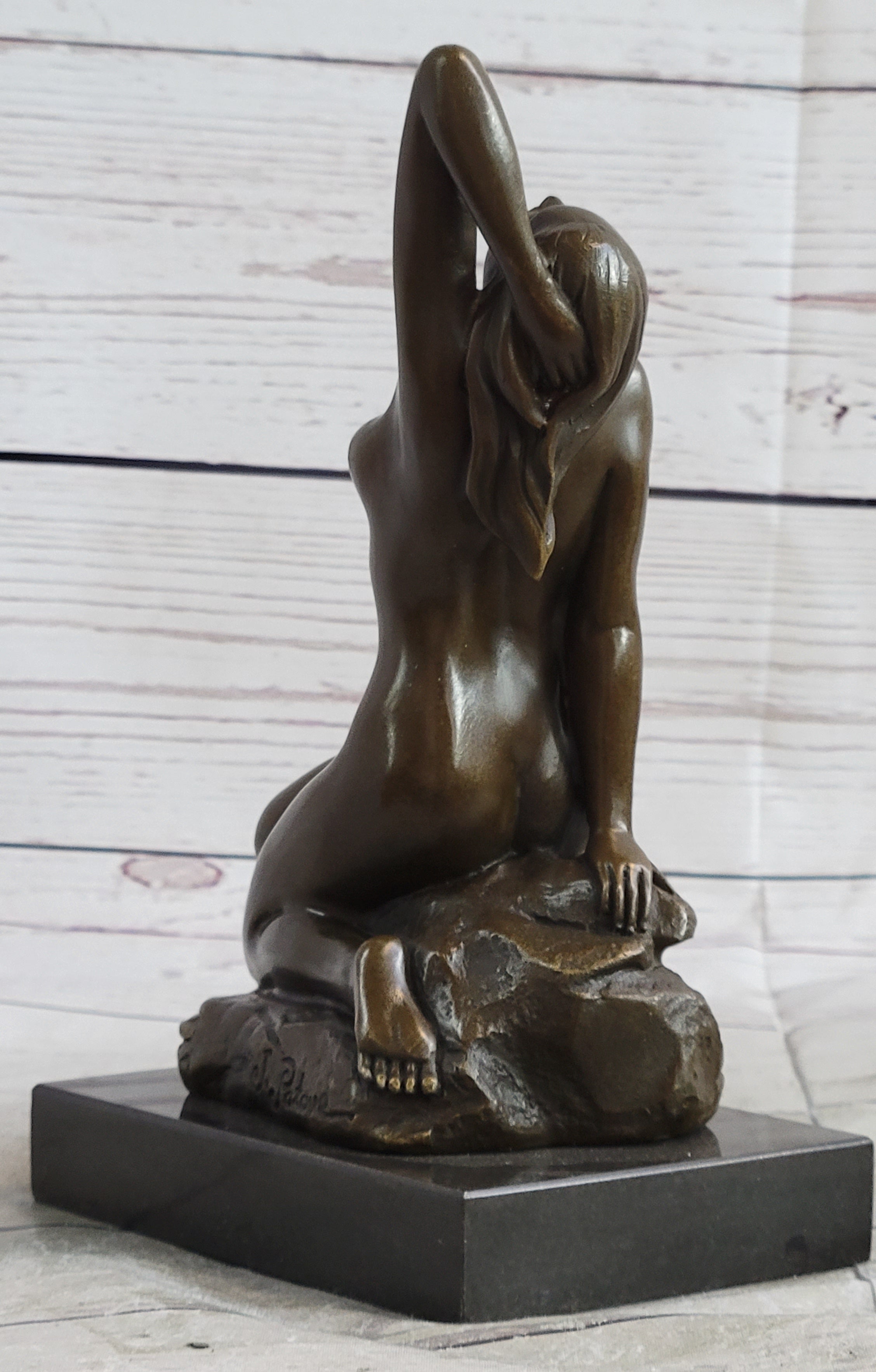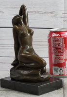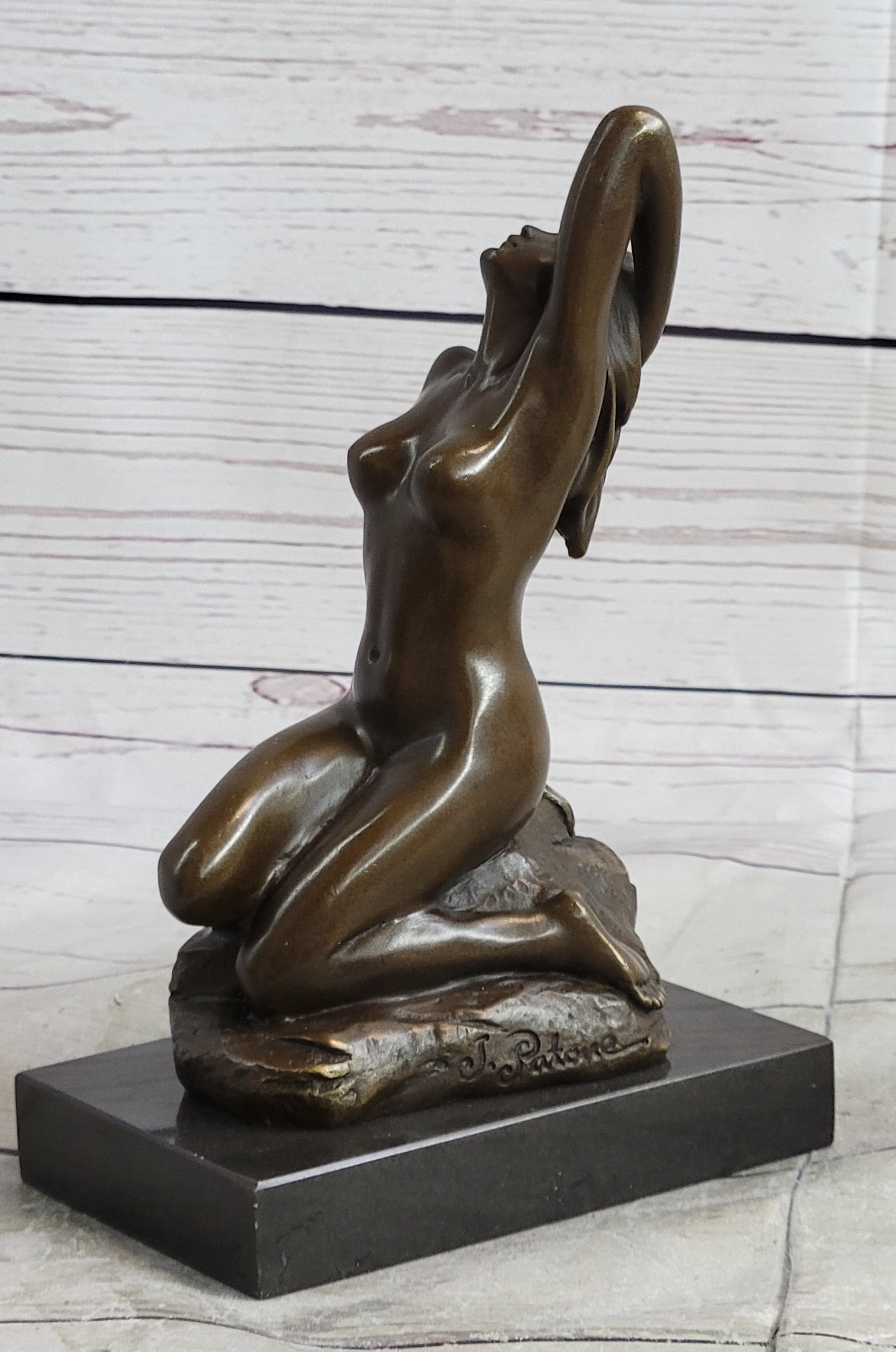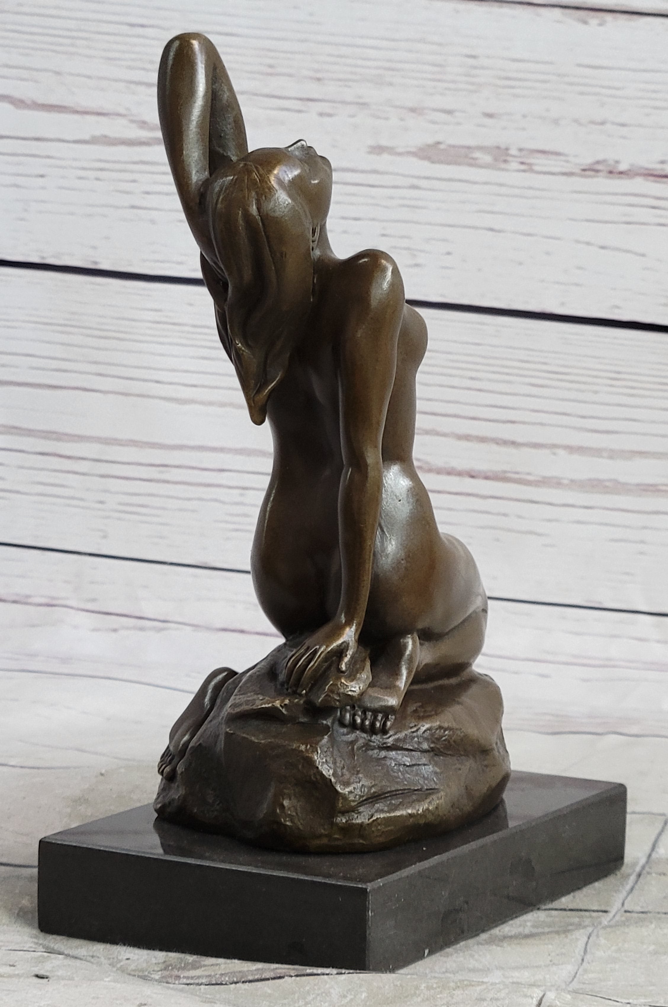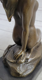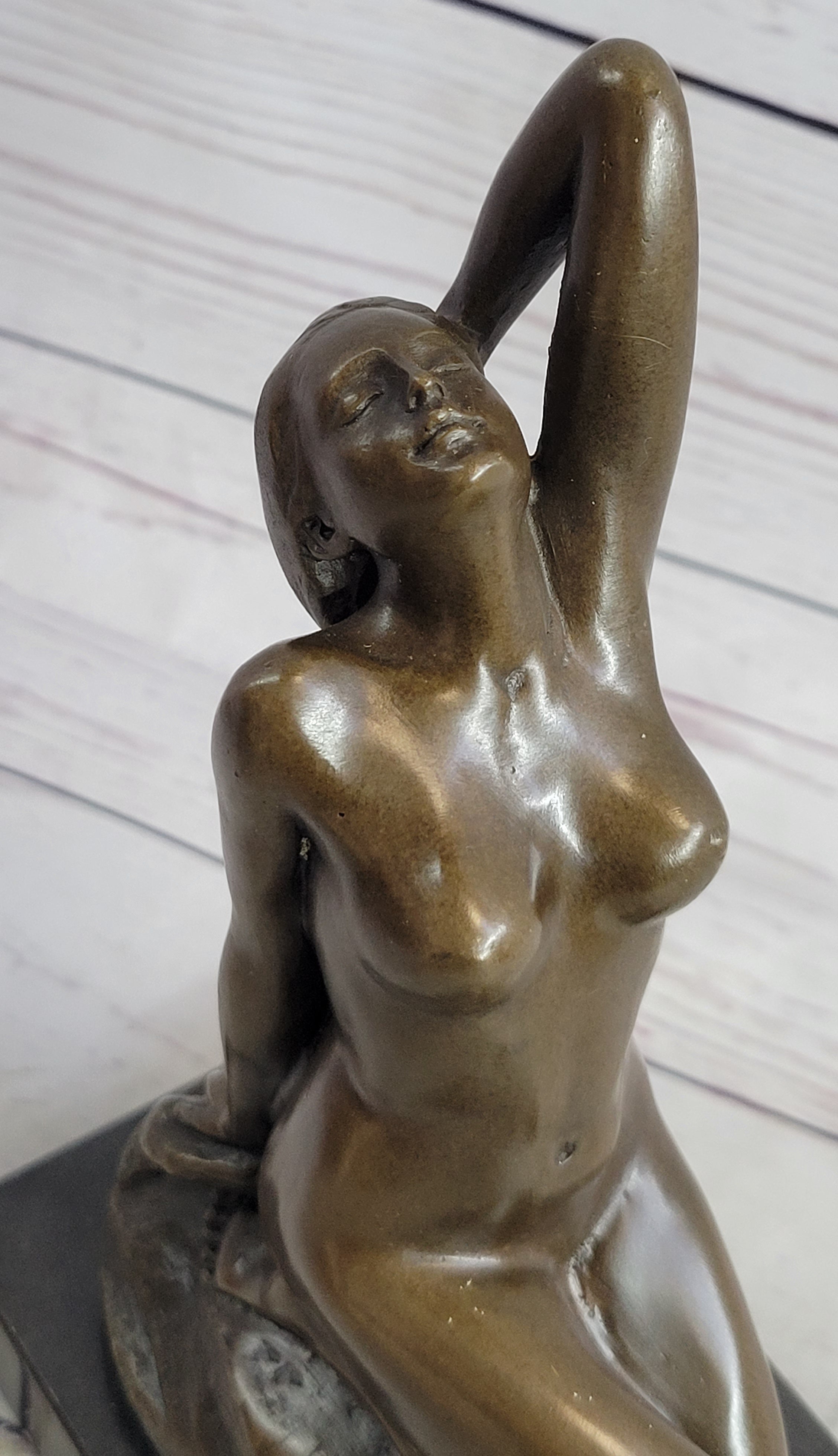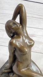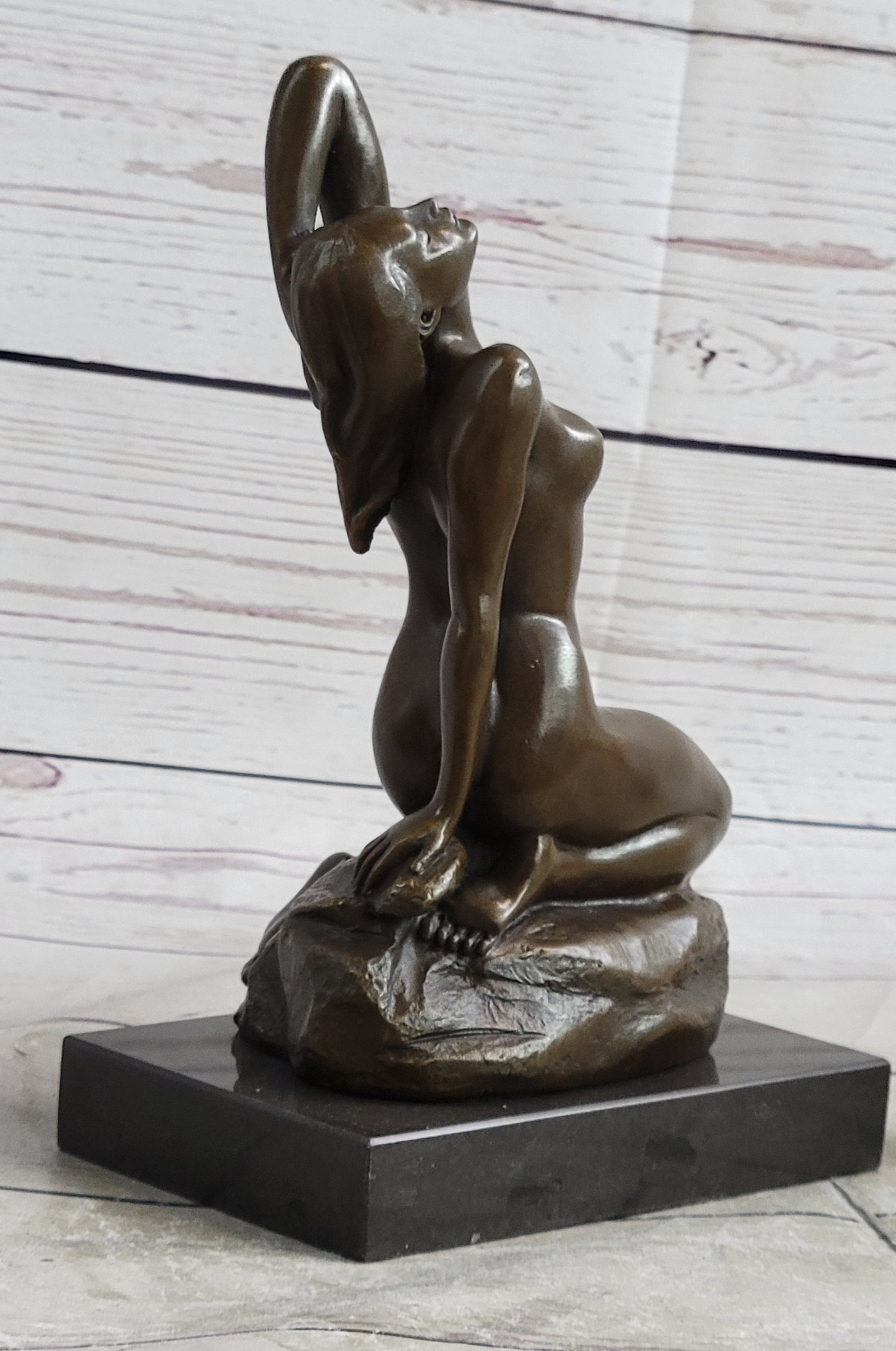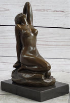 Sexy Nude Woman Female Figure Posing Modeling Bronze Sculpture Statue on Marble Base
