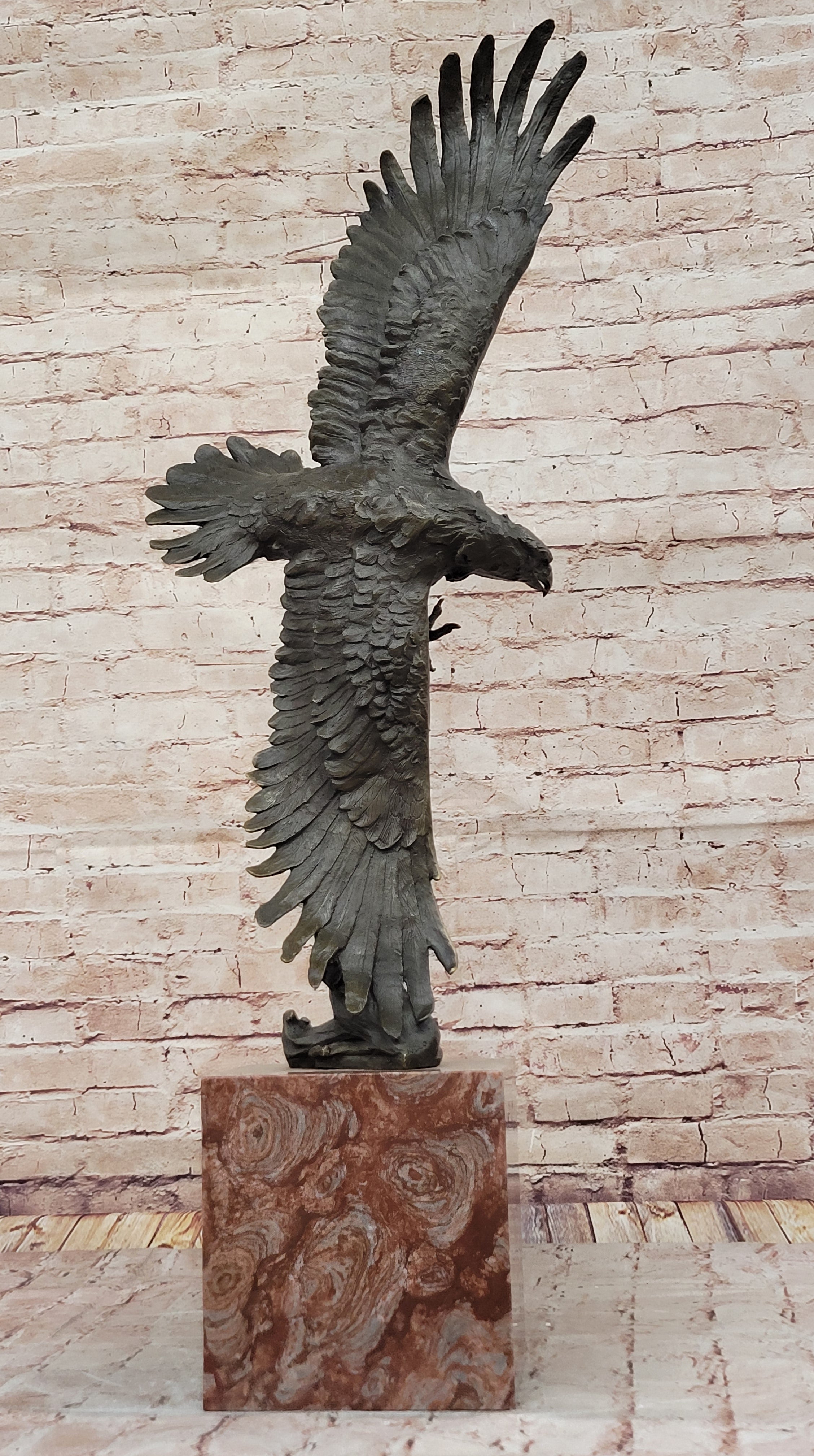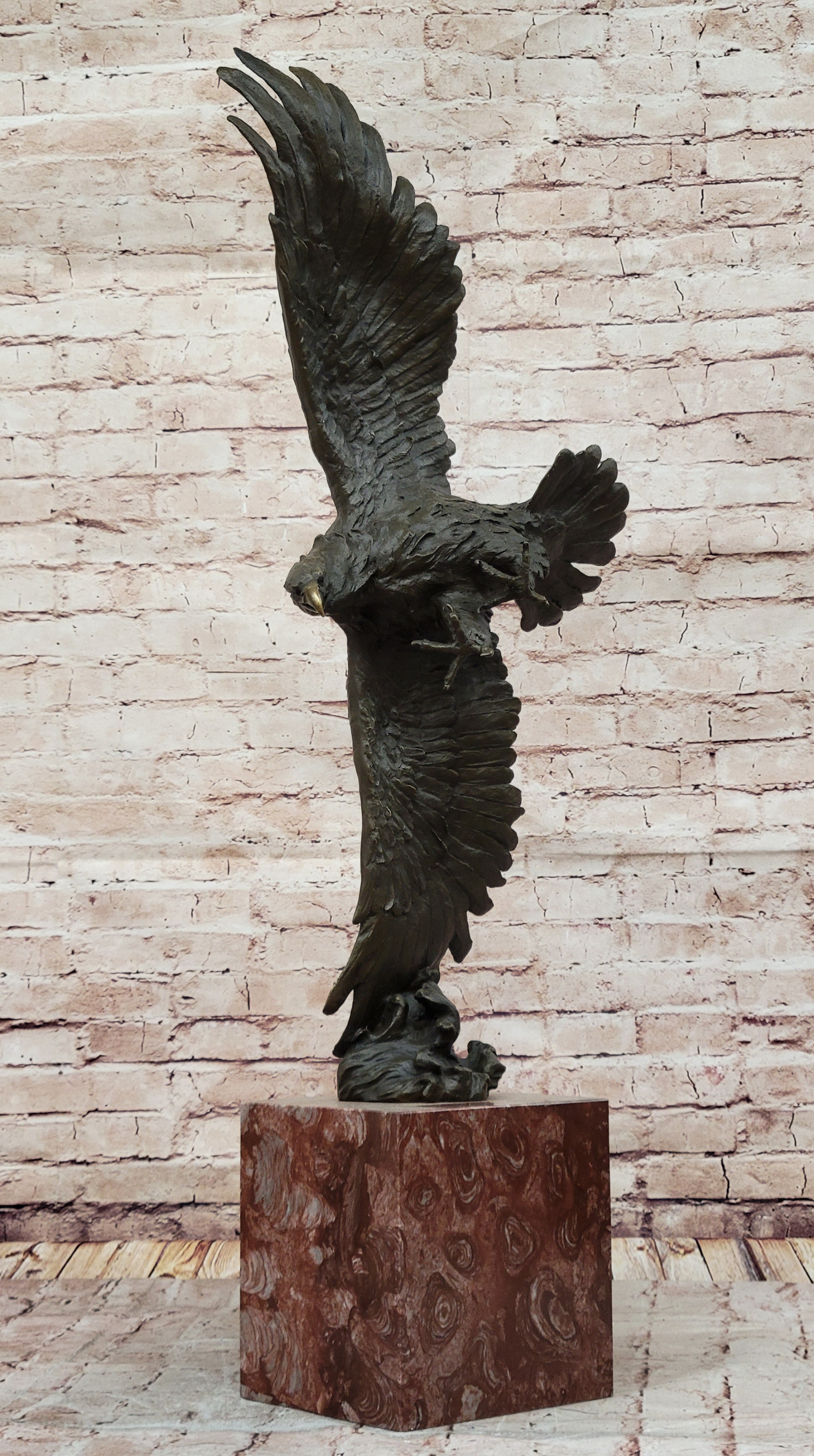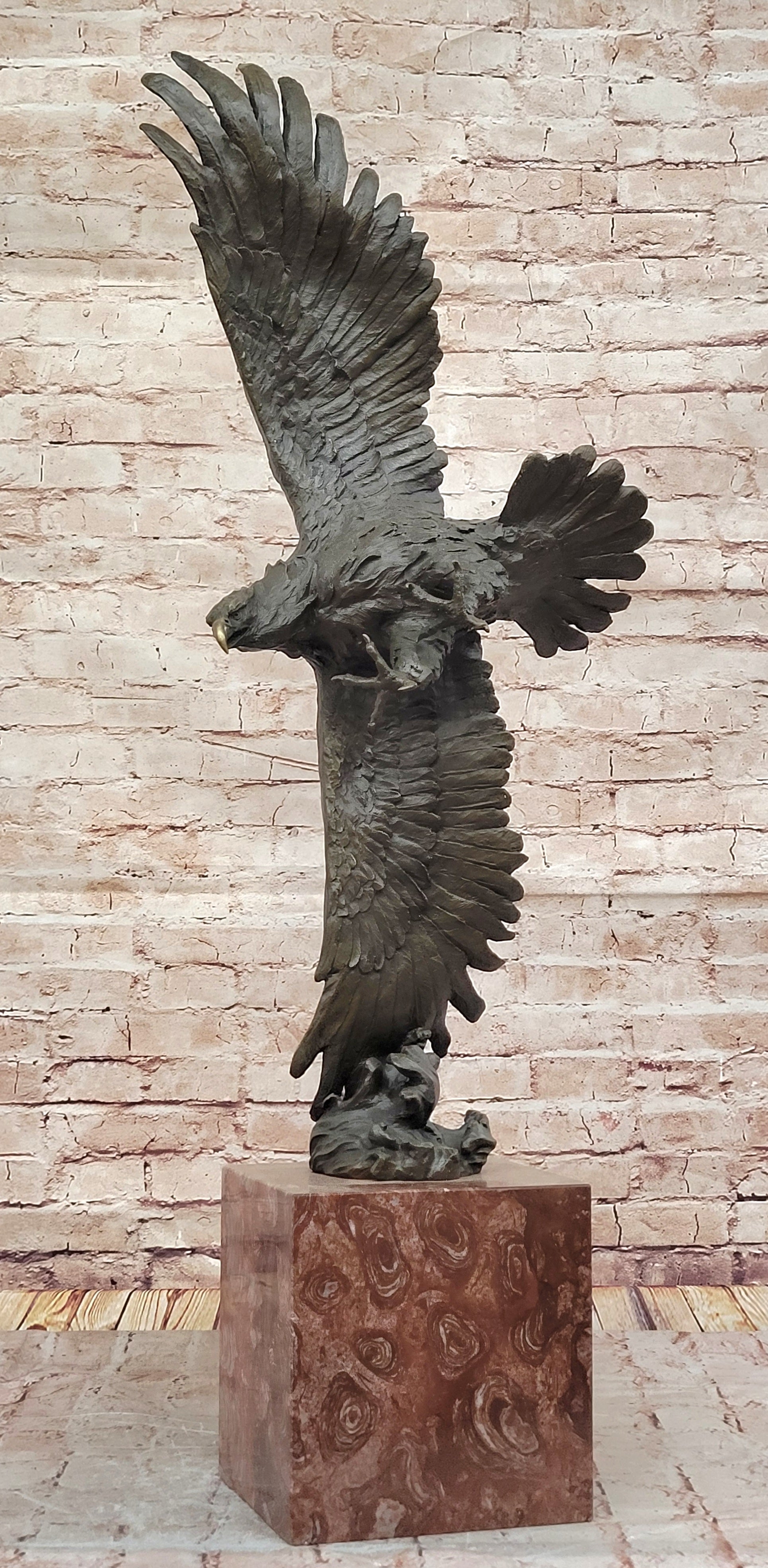 A thoughtful design element features the eagle’s right wingtip brushing against waves of water, symbolizing its connection to nature and dominance over land and sea. Resting upon a sturdy rose marble base, this sculpture radiates grandeur and sophistication. Cast using the ancient "Lost Wax Method," every intricate detail is faithfully preserved, ensuring an heirloom-quality masterpiece.