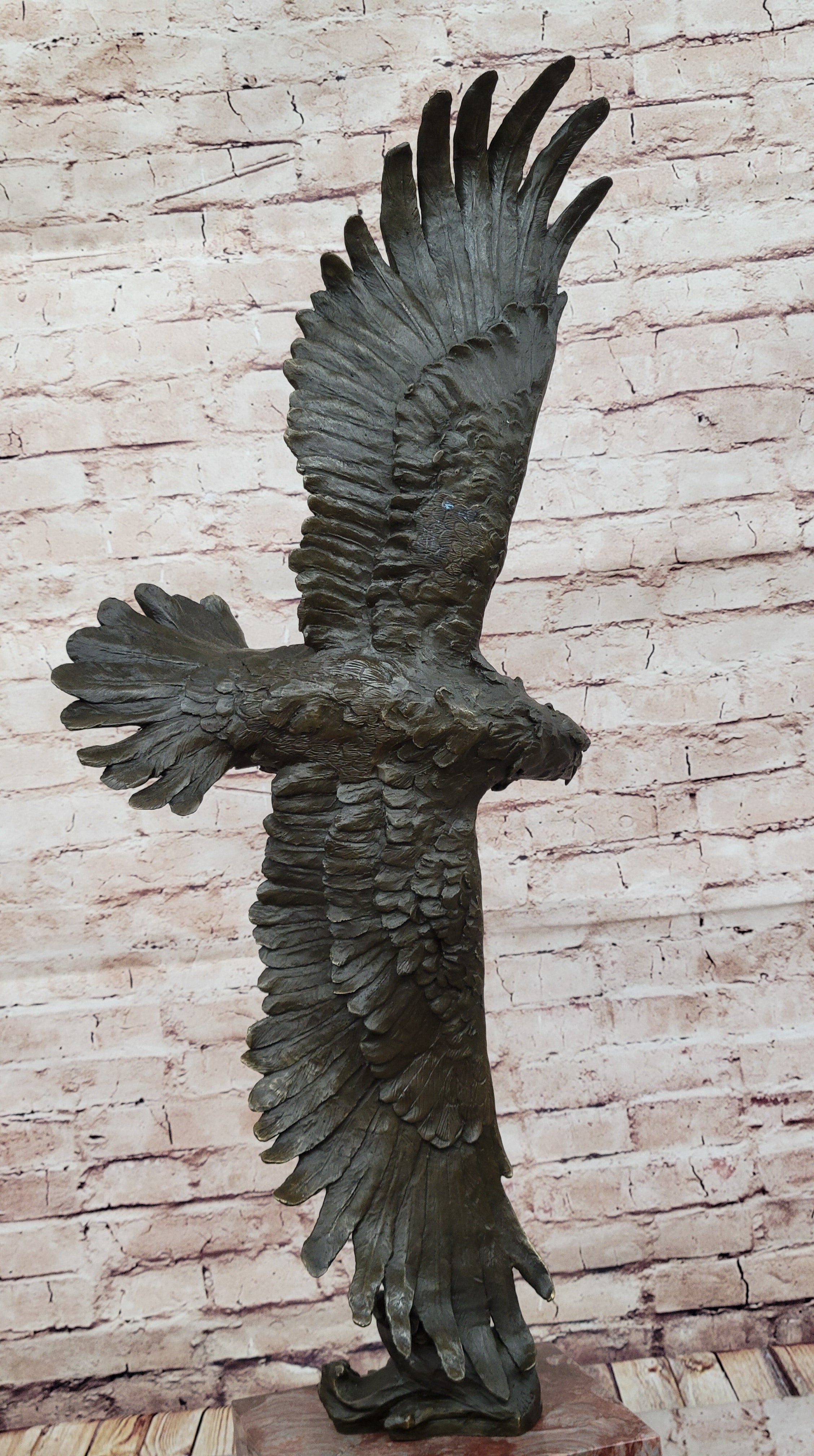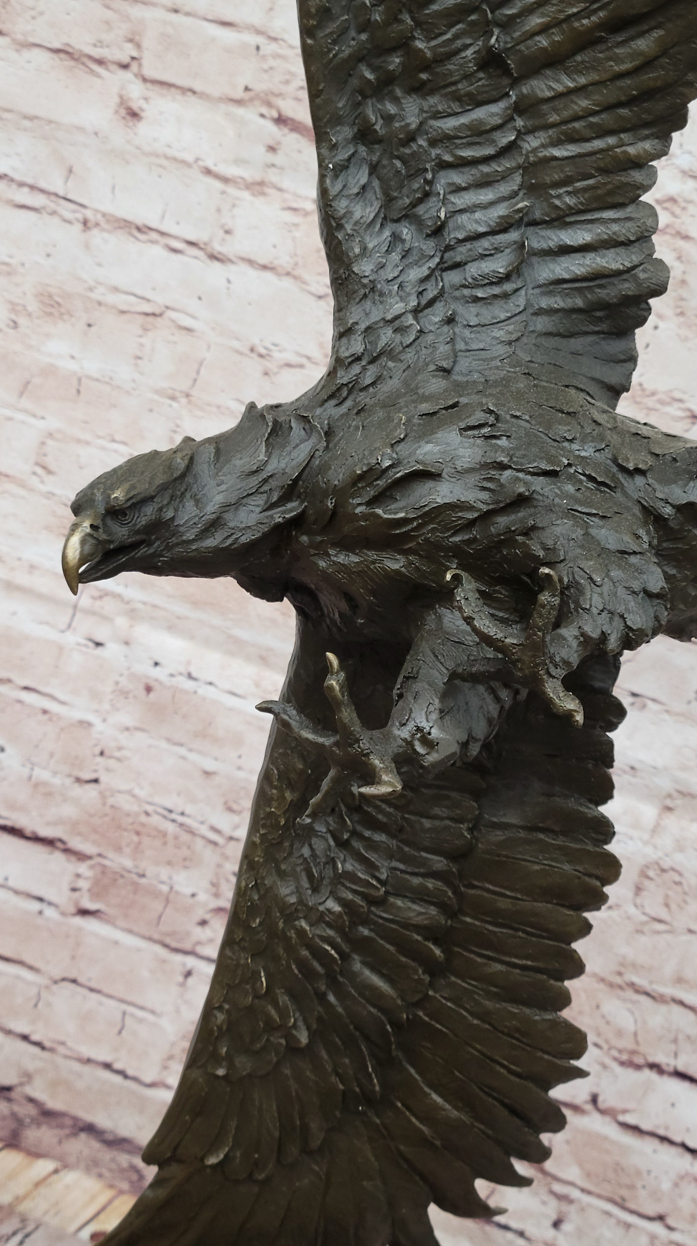 Sideways Flying Eagle Hawk Bird Bronze Sculpture Statue Figure on Marble Base