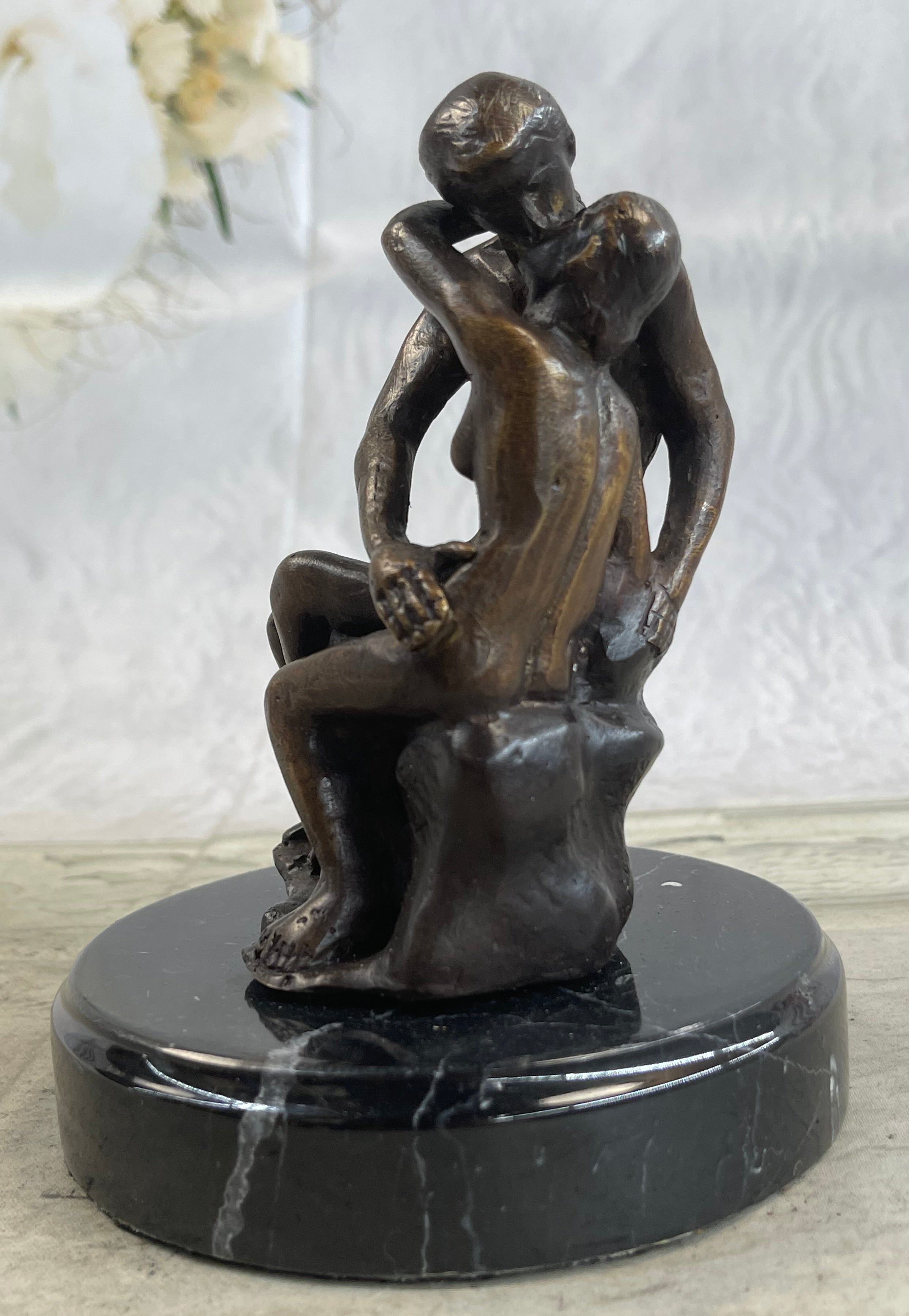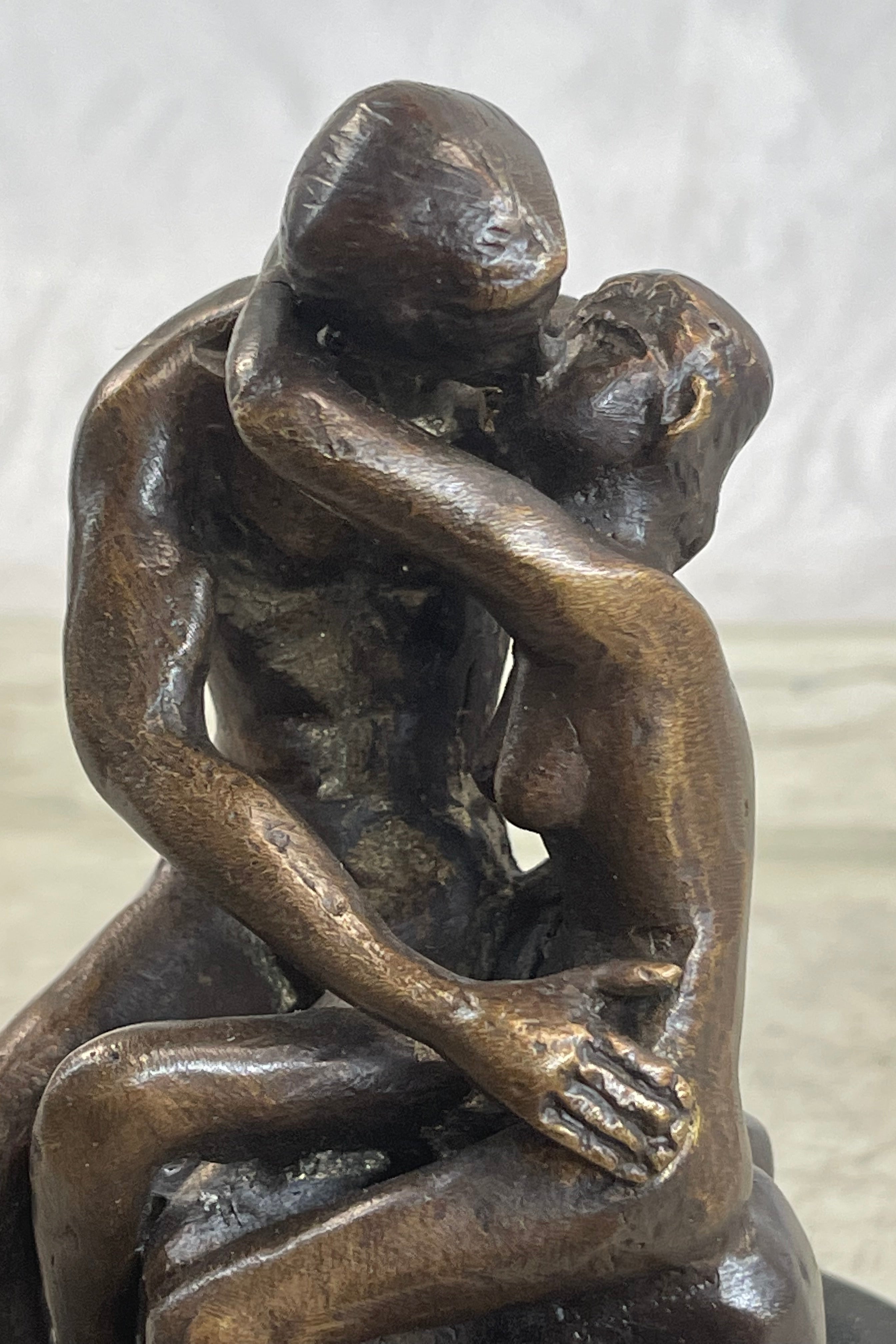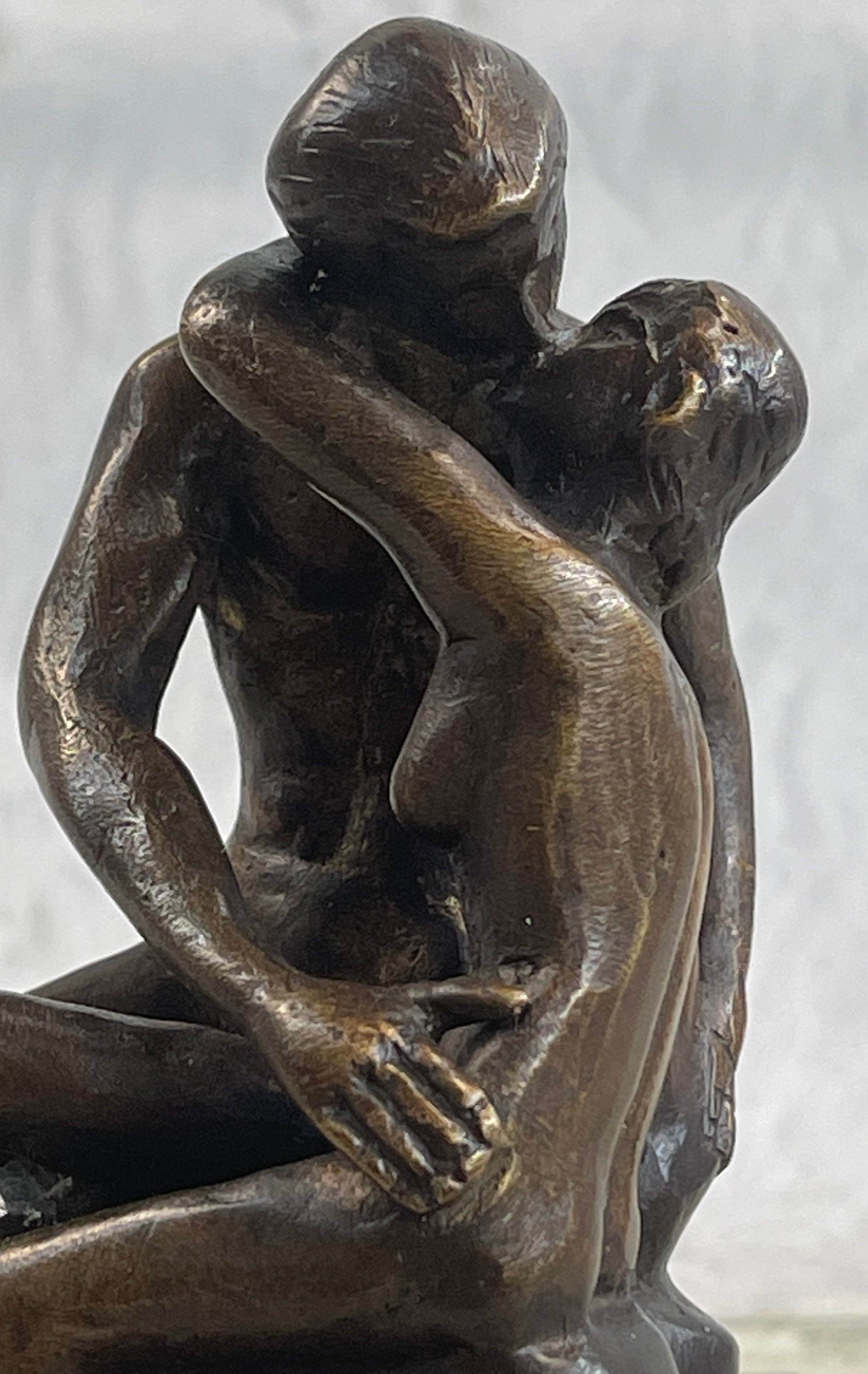 THE KISS by Auguste Rodin Bronze Metal Desktop Sculpture Statue Romantic Art 7" x 4"