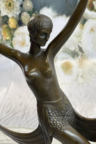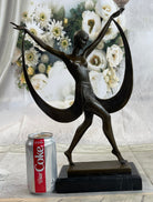 SIGNED ART DECO NUDE GIRL DANCER FAYRAL BRONZE STATUE MARBLE BASE FIGURINE LARGE