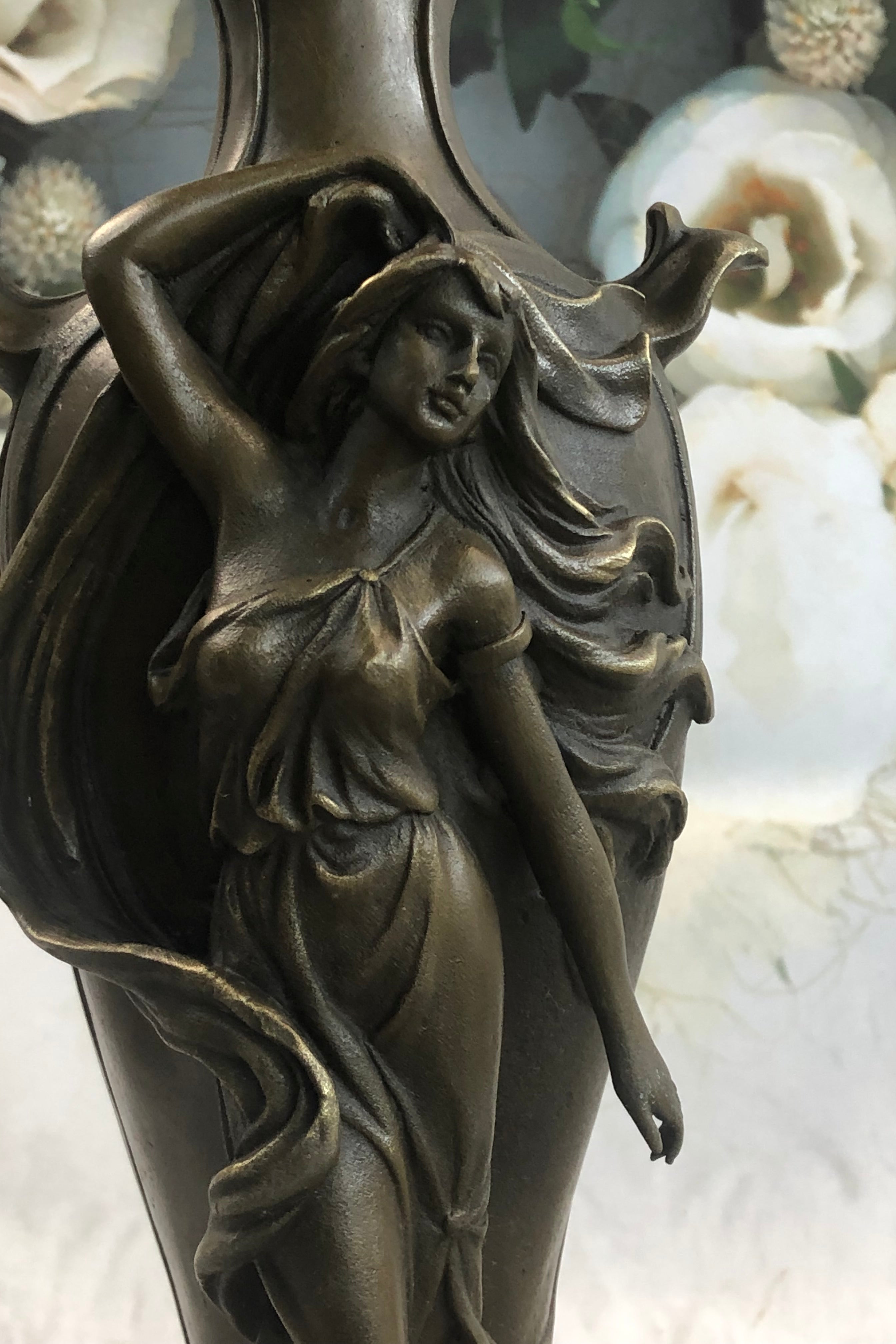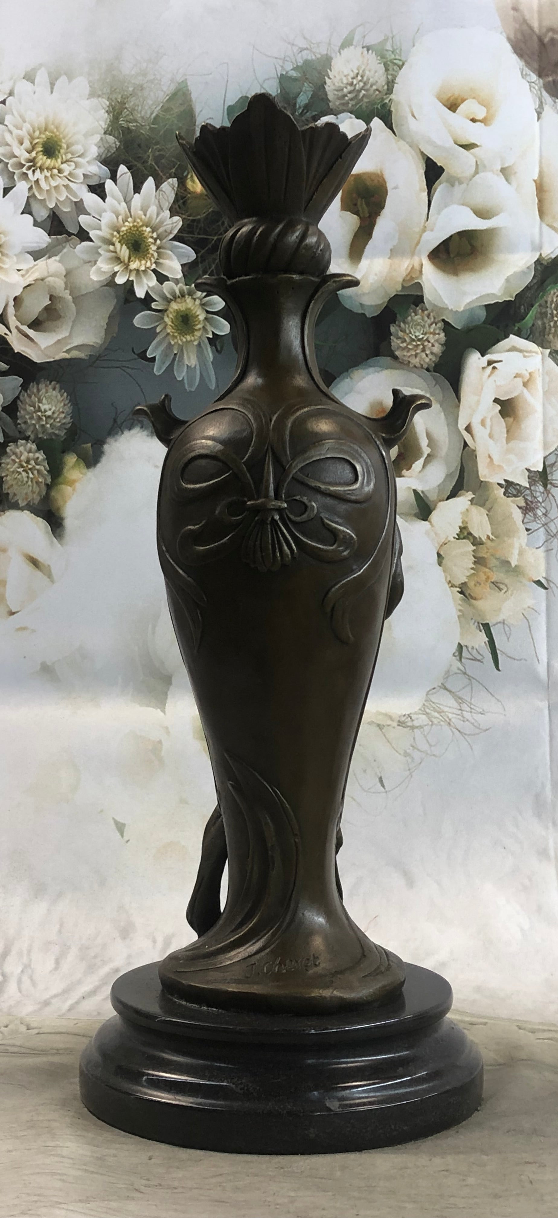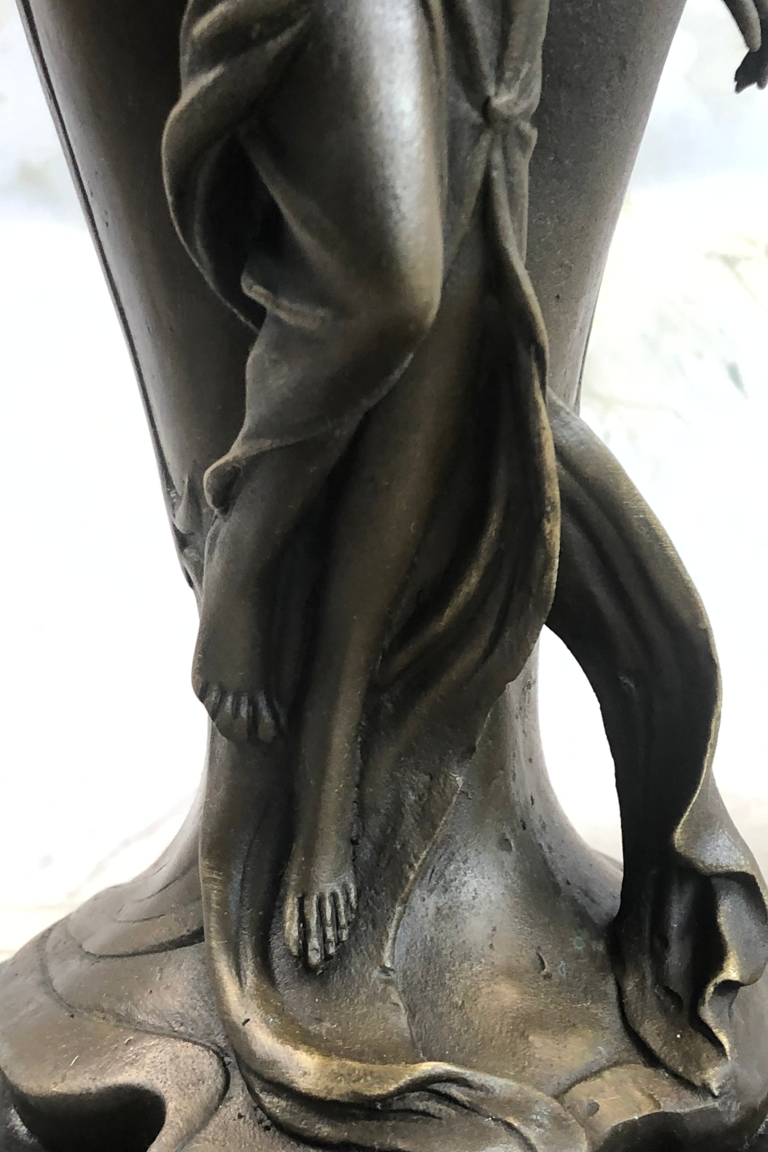 Signed Art Deco Sexy Woman by Cheret Bronze Sculpture Marble Base Figurine DEAL