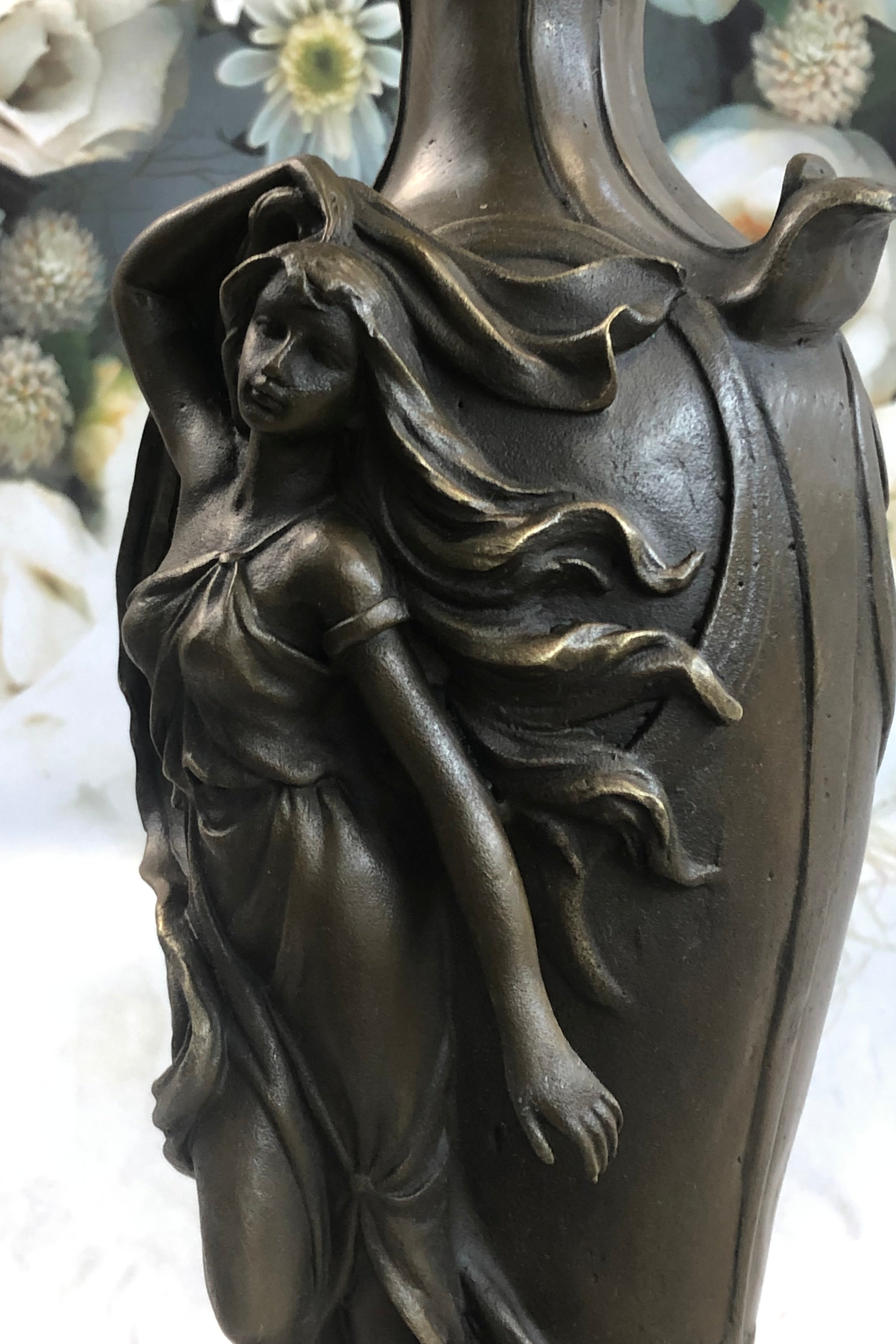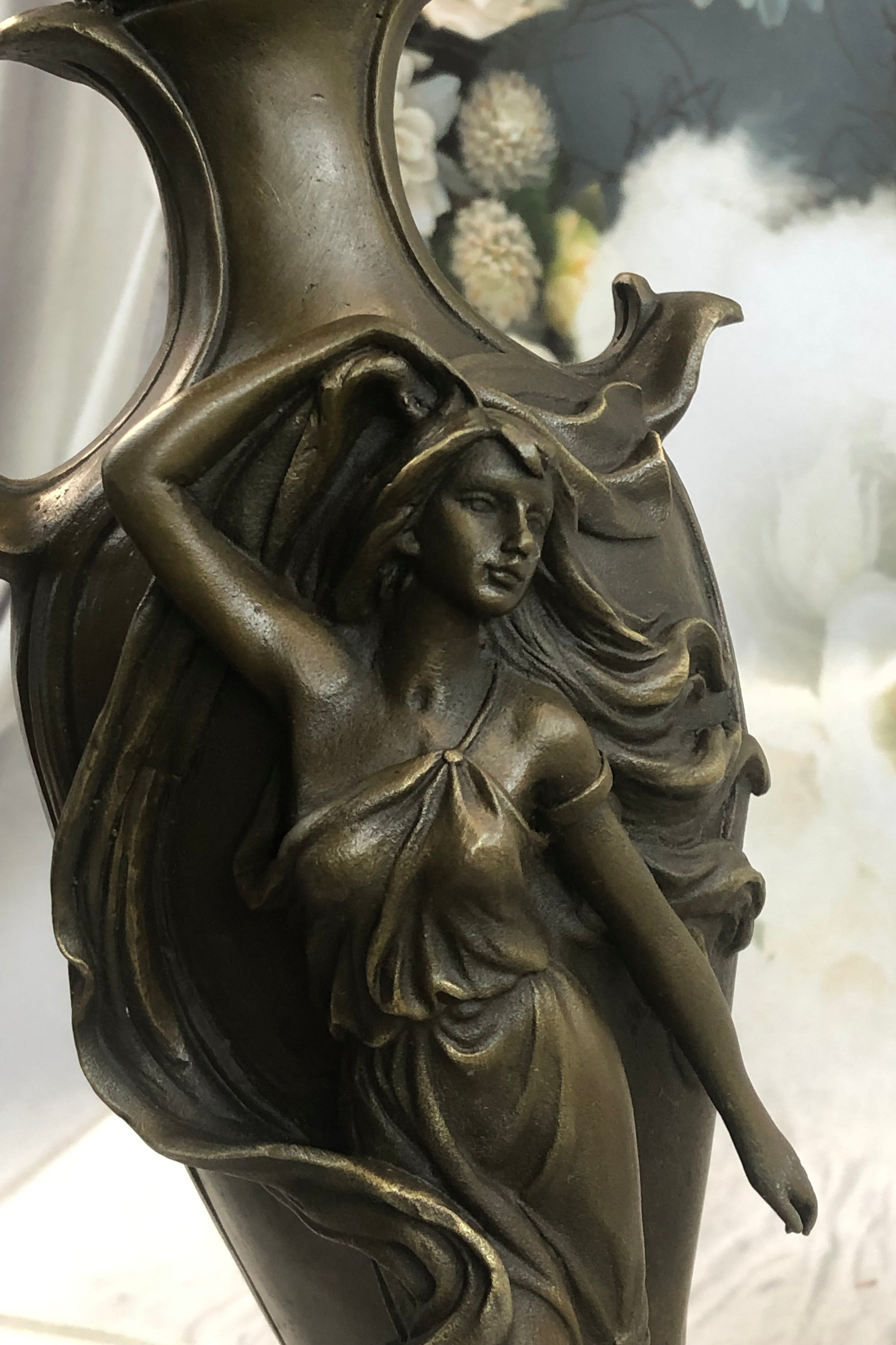 The sculpture invites viewers to immerse themselves in its exquisite details, from the intricacies of the woman's form to the fine craftsmanship evident in every aspect. Mounted on a sleek marble base, the artwork not only captures the essence of sensuality but also radiates an air of sophistication and refinement. This piece is more than a mere statue; it's a statement of artistry and a celebration of the female form, making it a standout addition to any art collection or space.