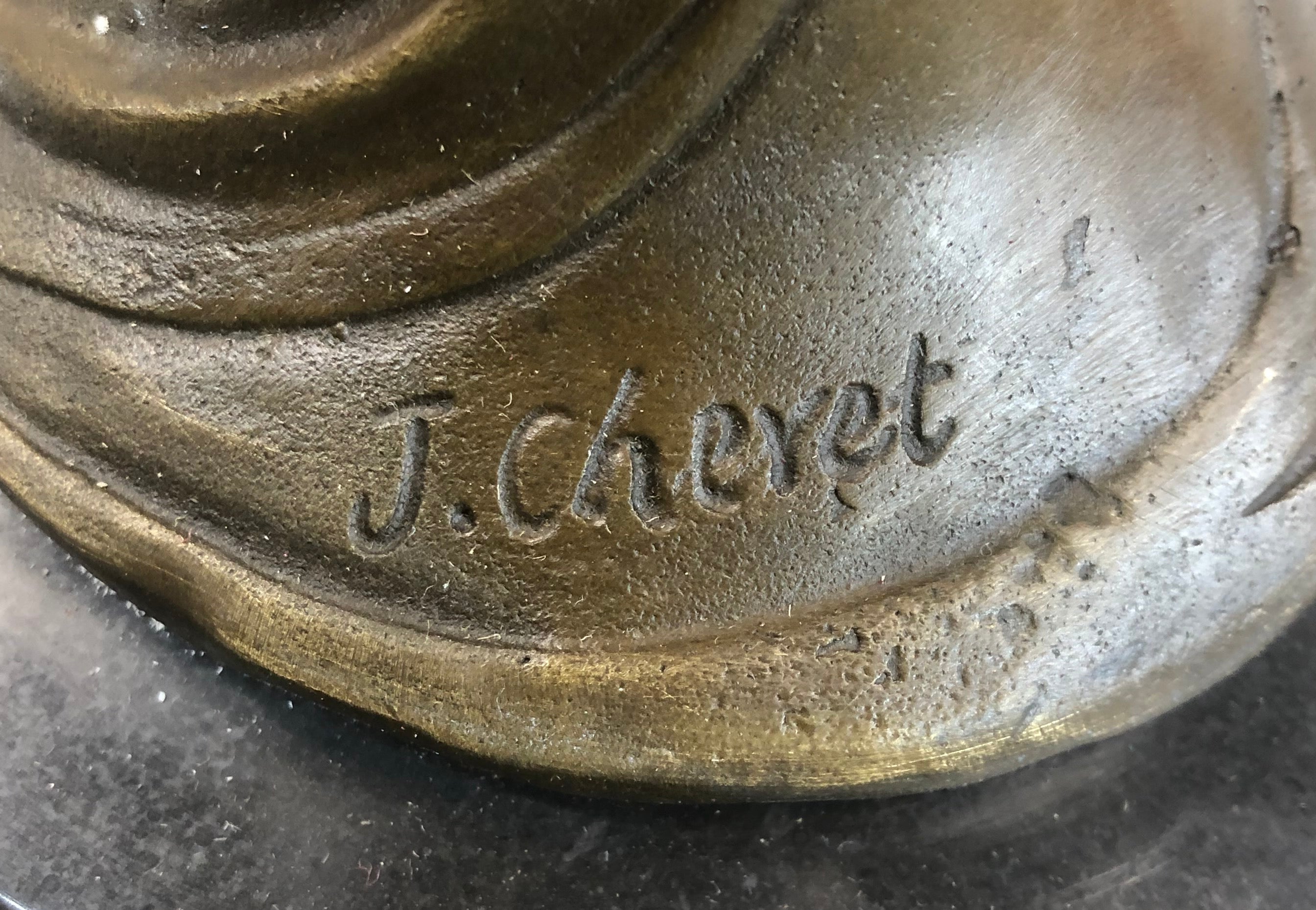 Adding a touch of quality to this exceptional piece, the sculpture is signed by the skilled artist J. Cheret. This signature serves as both a mark of quality and a testament to the artist's contribution to the world of art. Whether displayed in a private collection or showcased in a prominent space, this bronze statue invites admiration and appreciation for its aesthetic allure and masterful craftsmanship.Bronze Dimensions with Marble Base: Height 15" x Width 6"