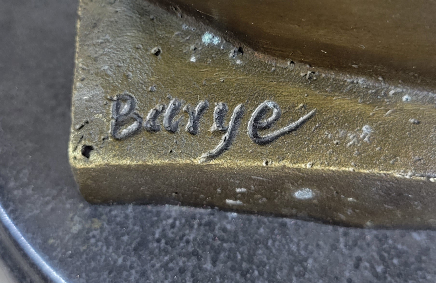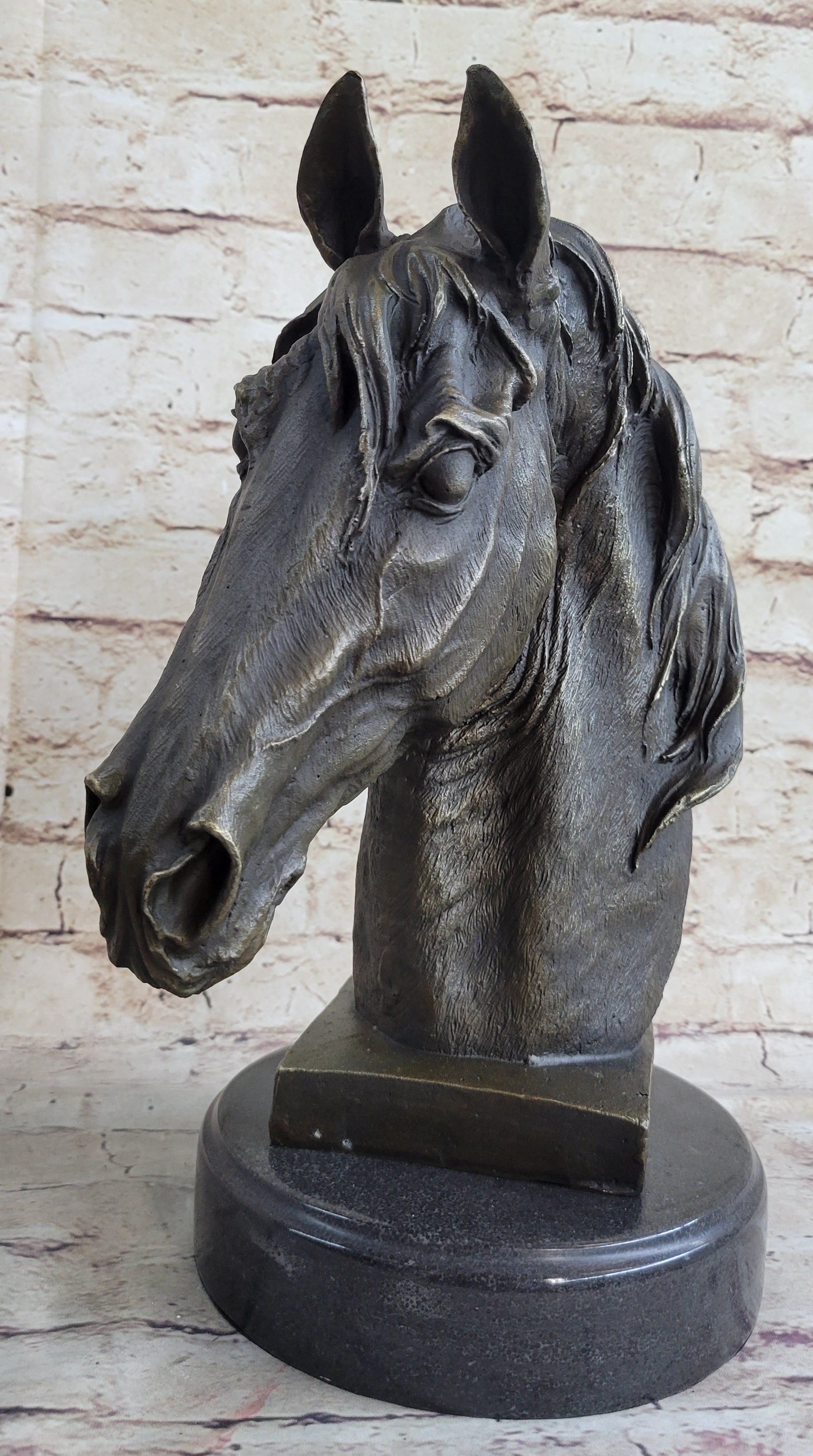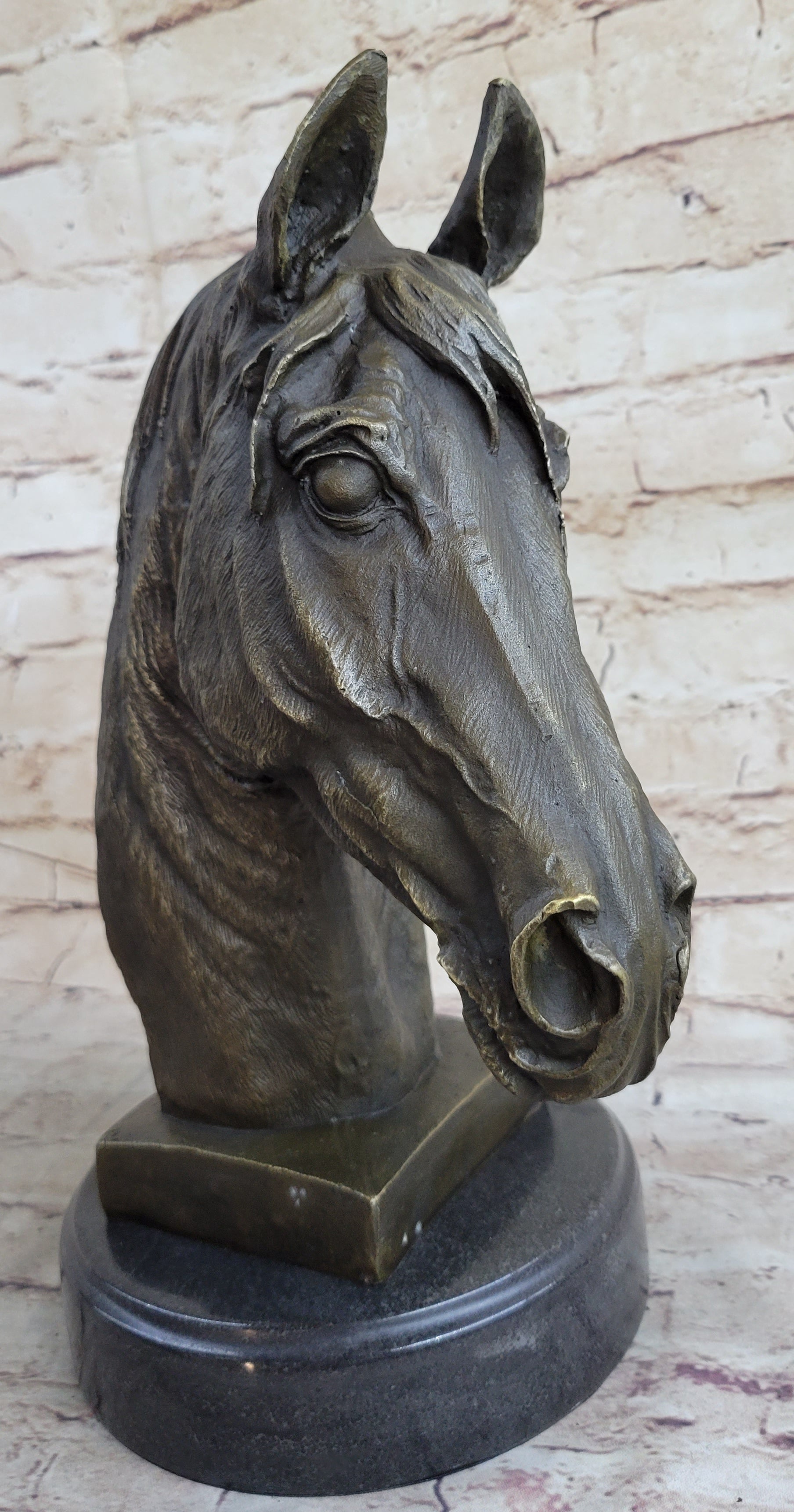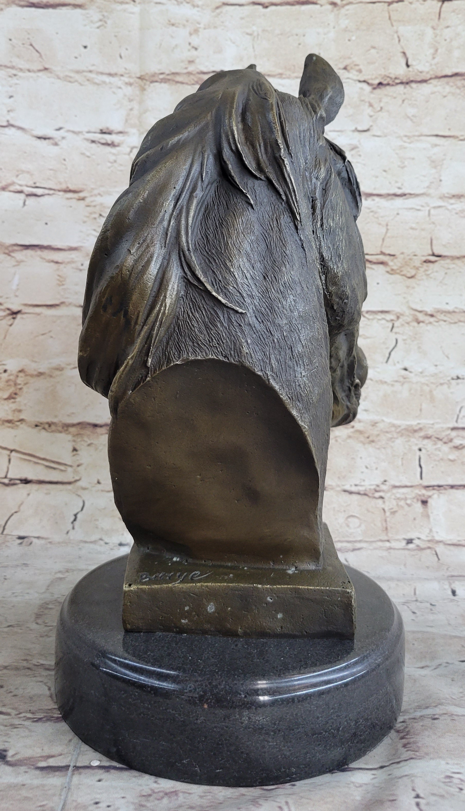 Signed Barye Unique Bronze Bust Horse Head Sculpture Marble Base Statue Figure