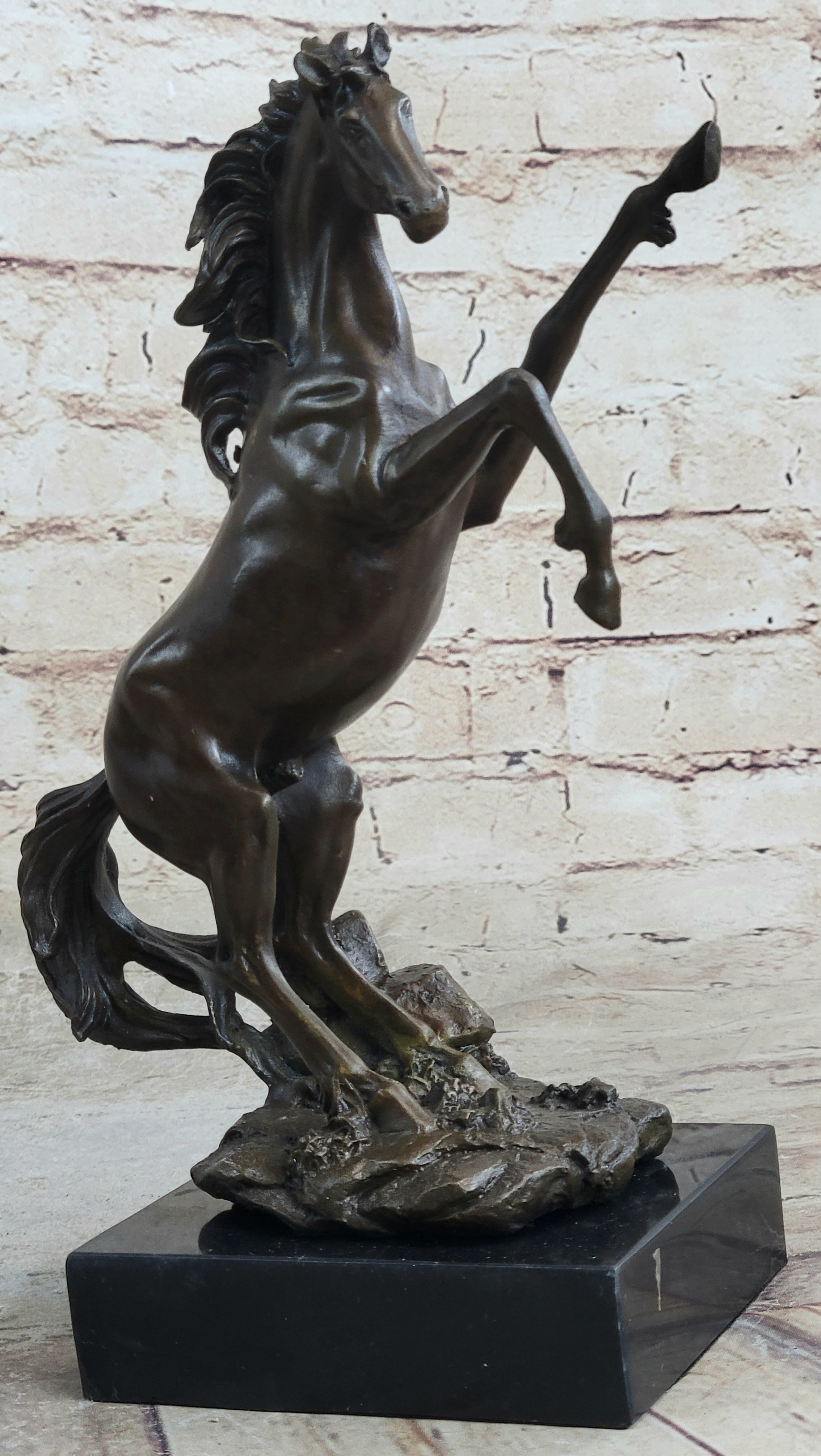 Signed Barye Wild Stallion Horse Bronze Marble Base Figurine Home Decor Art Deco