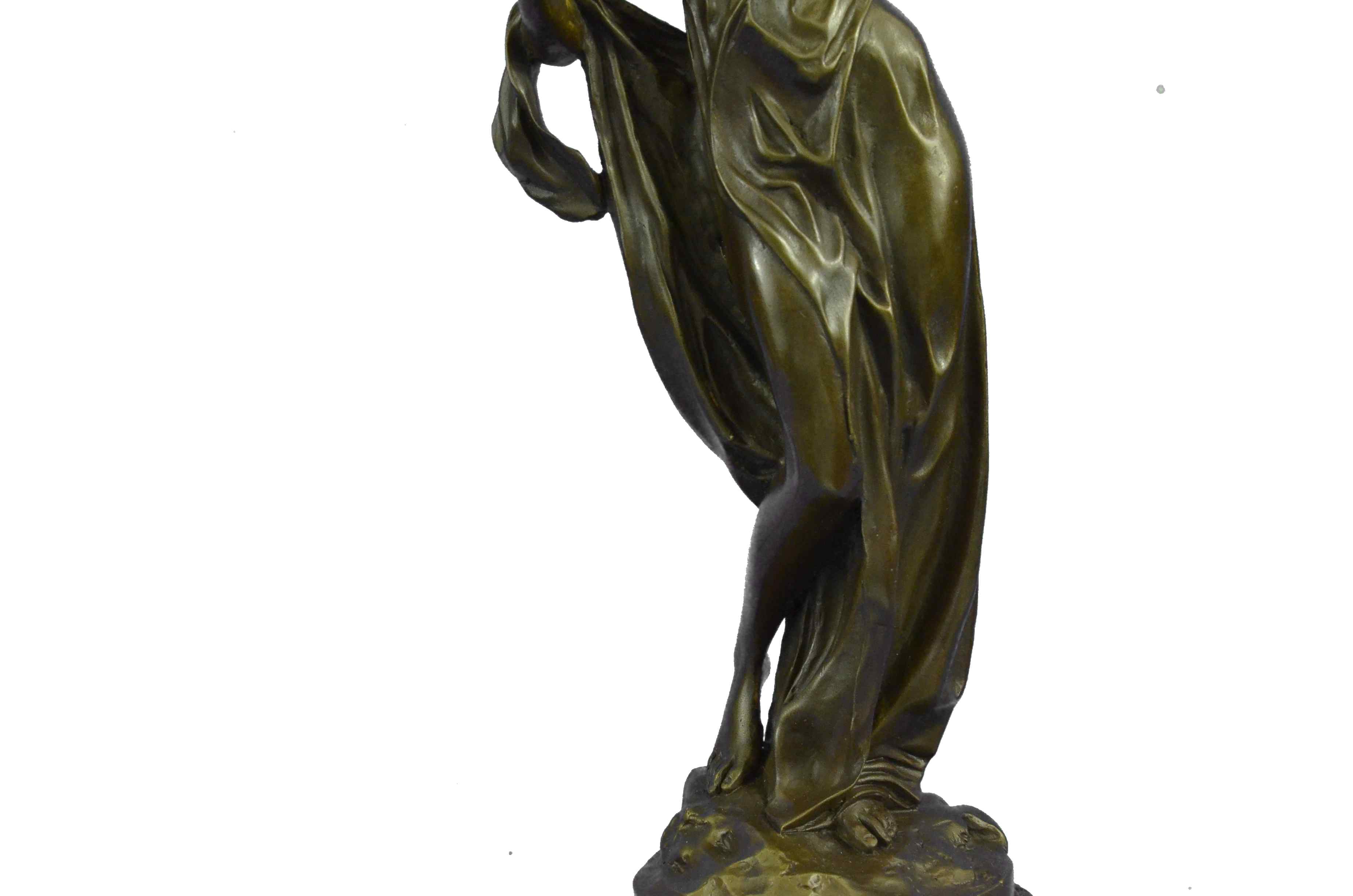 Condition: This sculpture is in perfect condition. Bronze Dimensions with Marble Base:Height 23" x Width 10" Marble Dimensions: 6" X 6 1/2". Height without base: 22" Weight : 15 LBS Inventory 97-X2246B7479