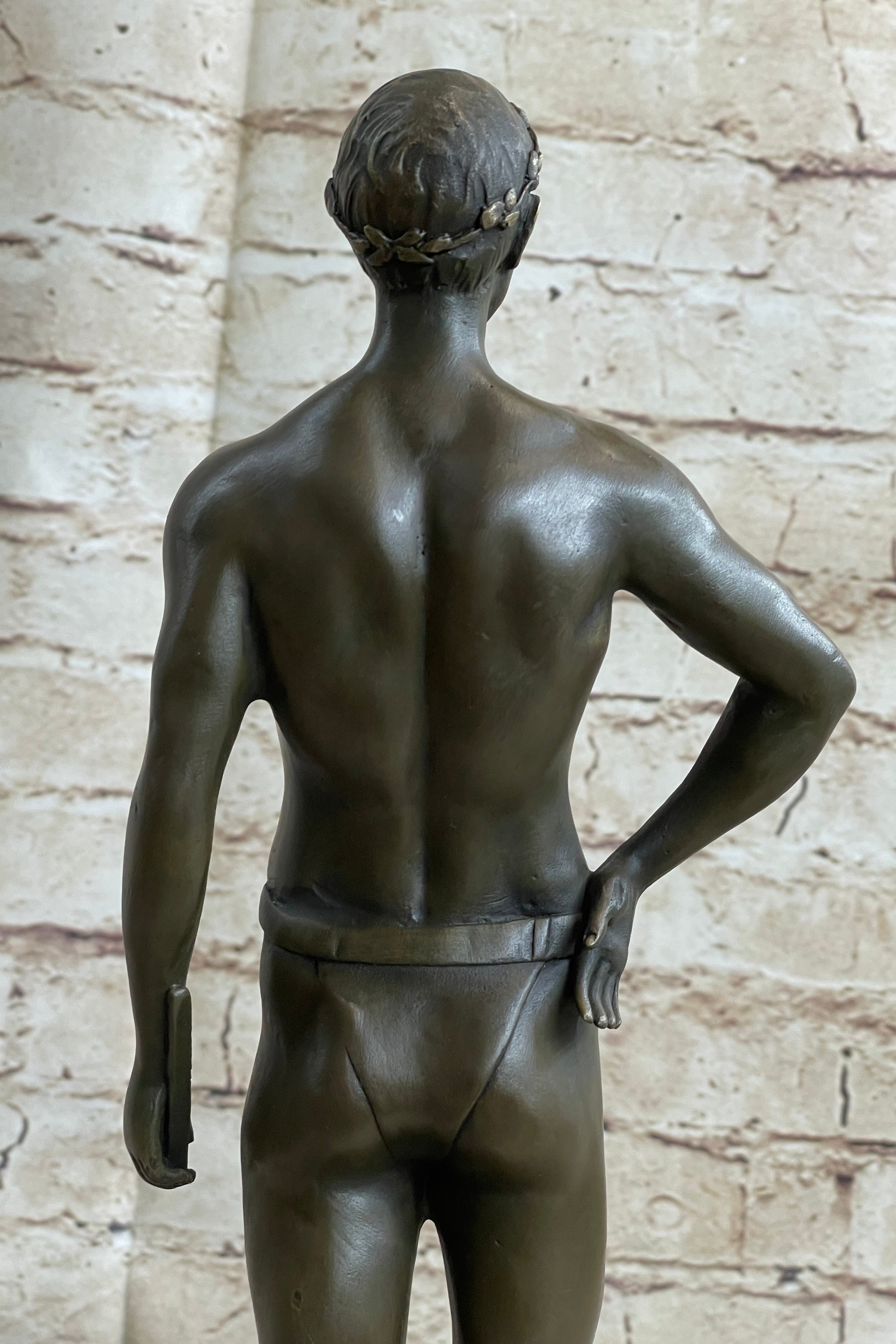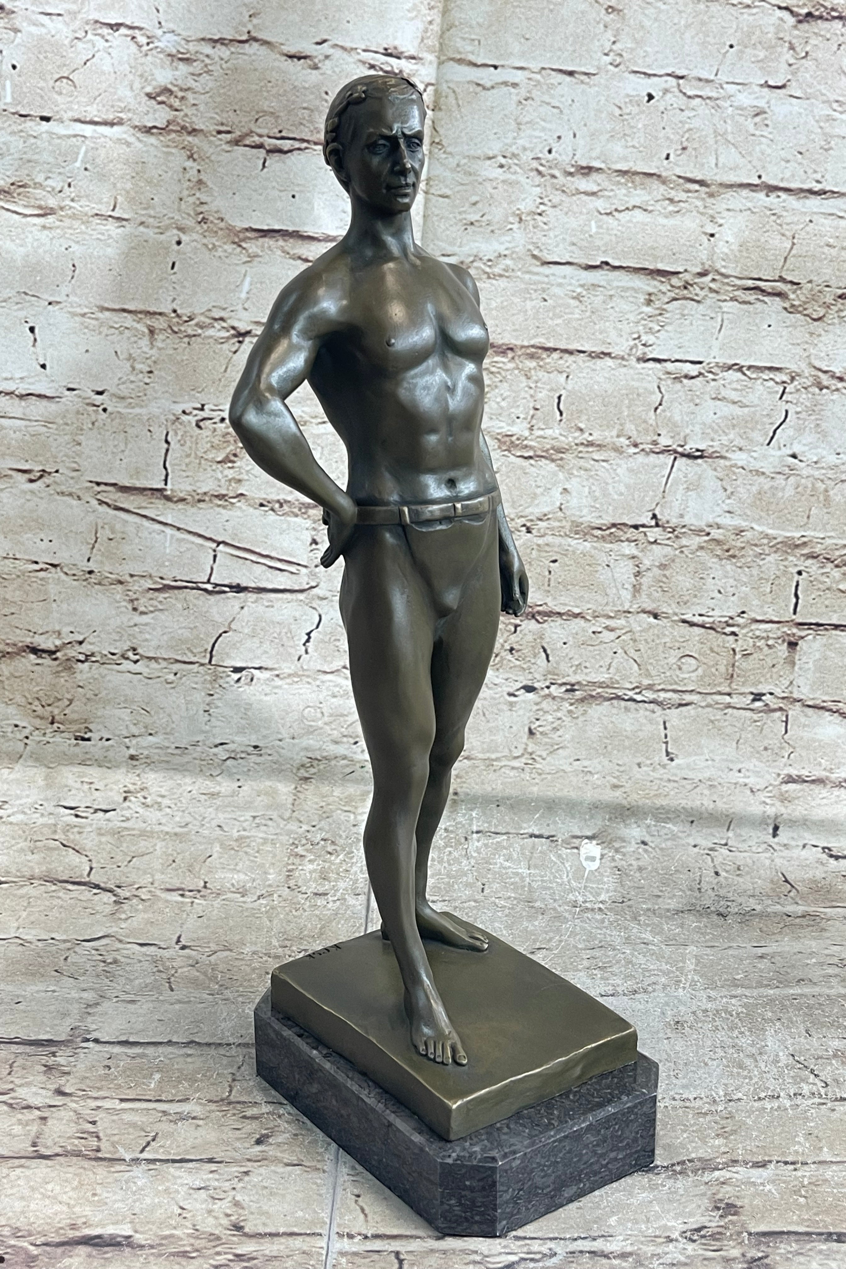 Muscular Male Figure in Loin Cloth Bronze Statue Sculpture Decor on Marble Base