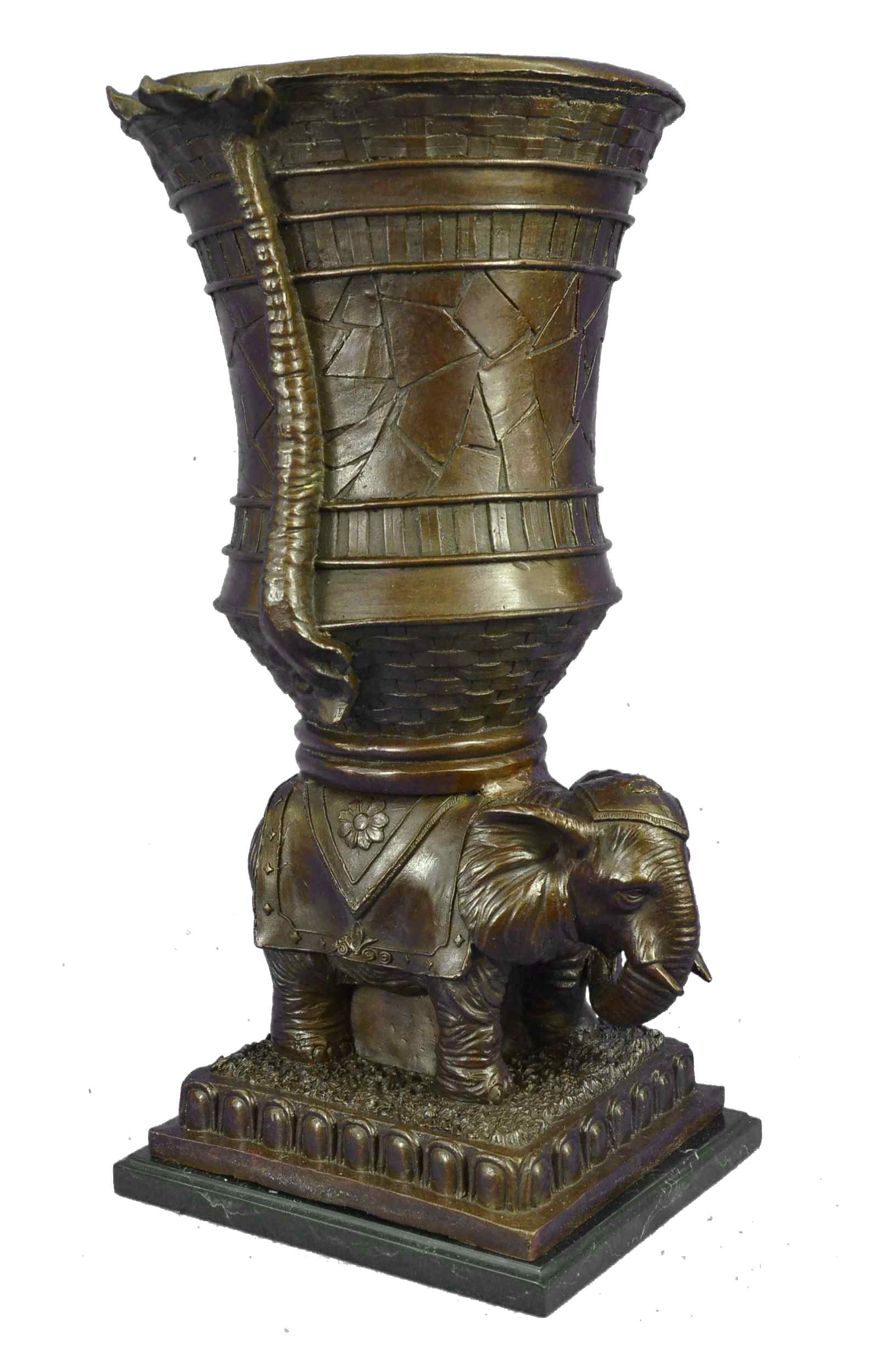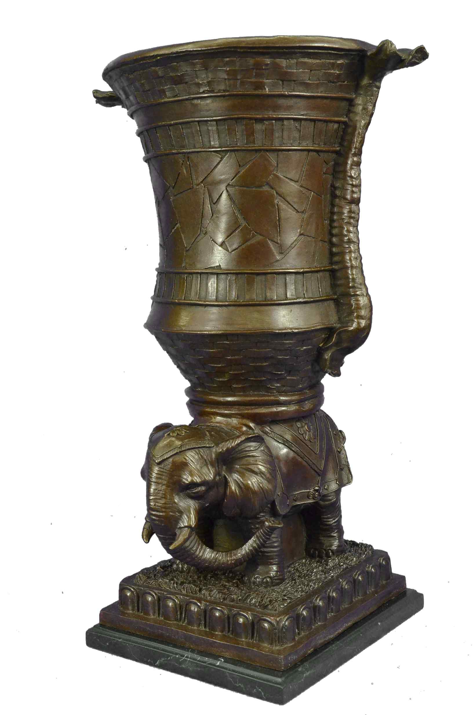 Signed Carl Kauba Elephant Urn Vase Planter Bronze Sculpture Marble Statue Decor