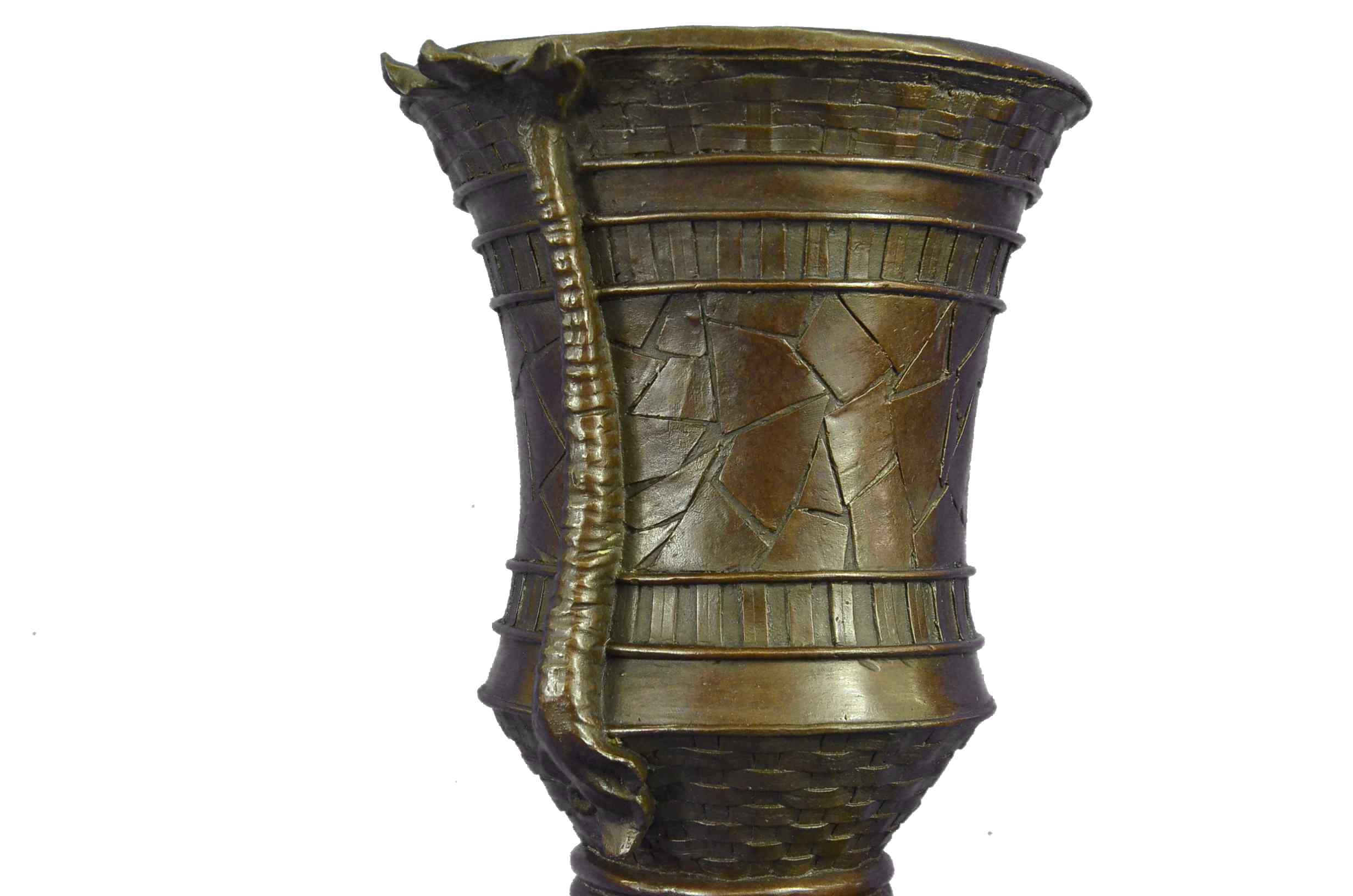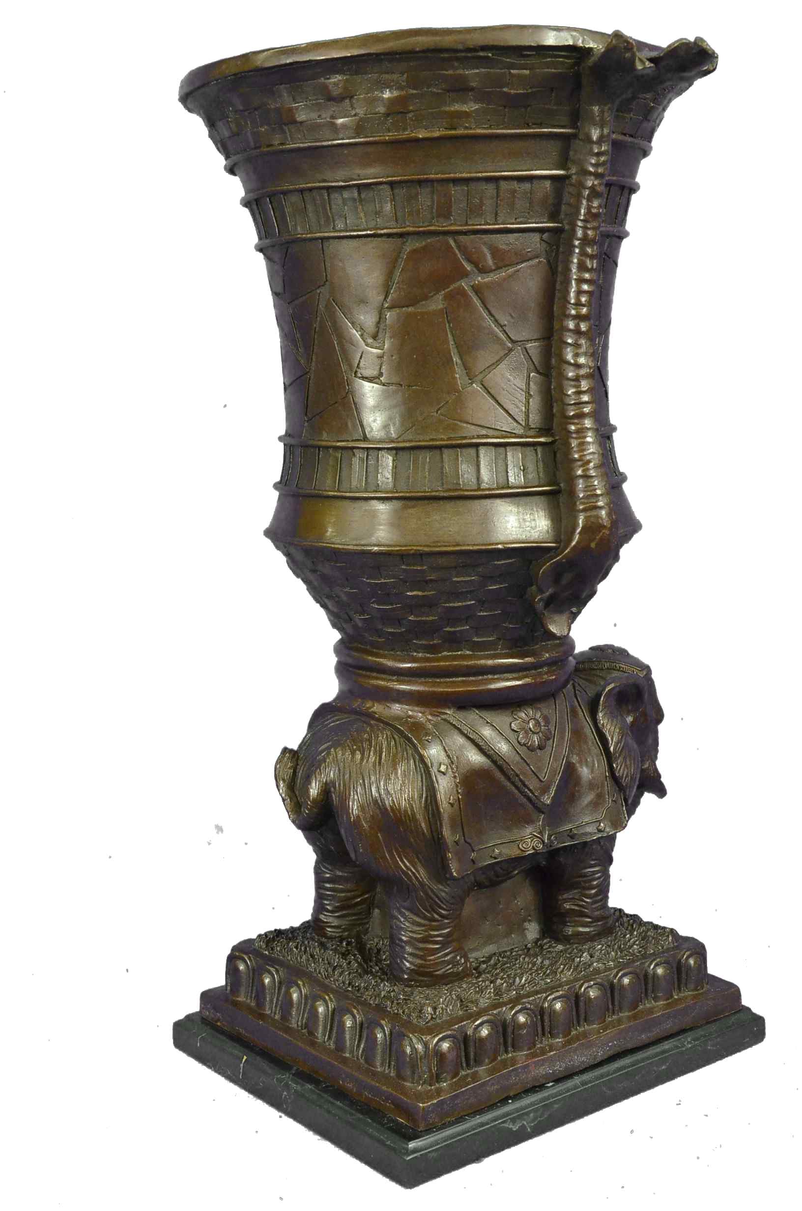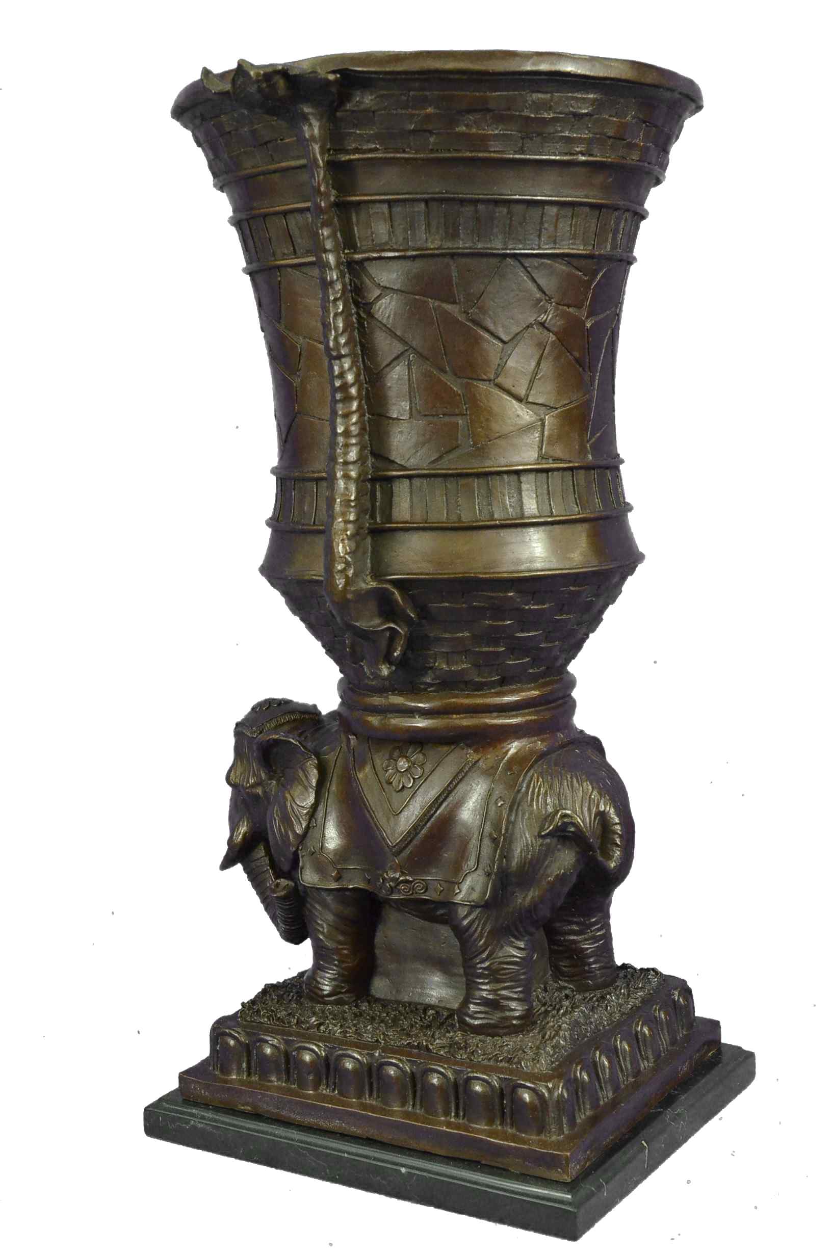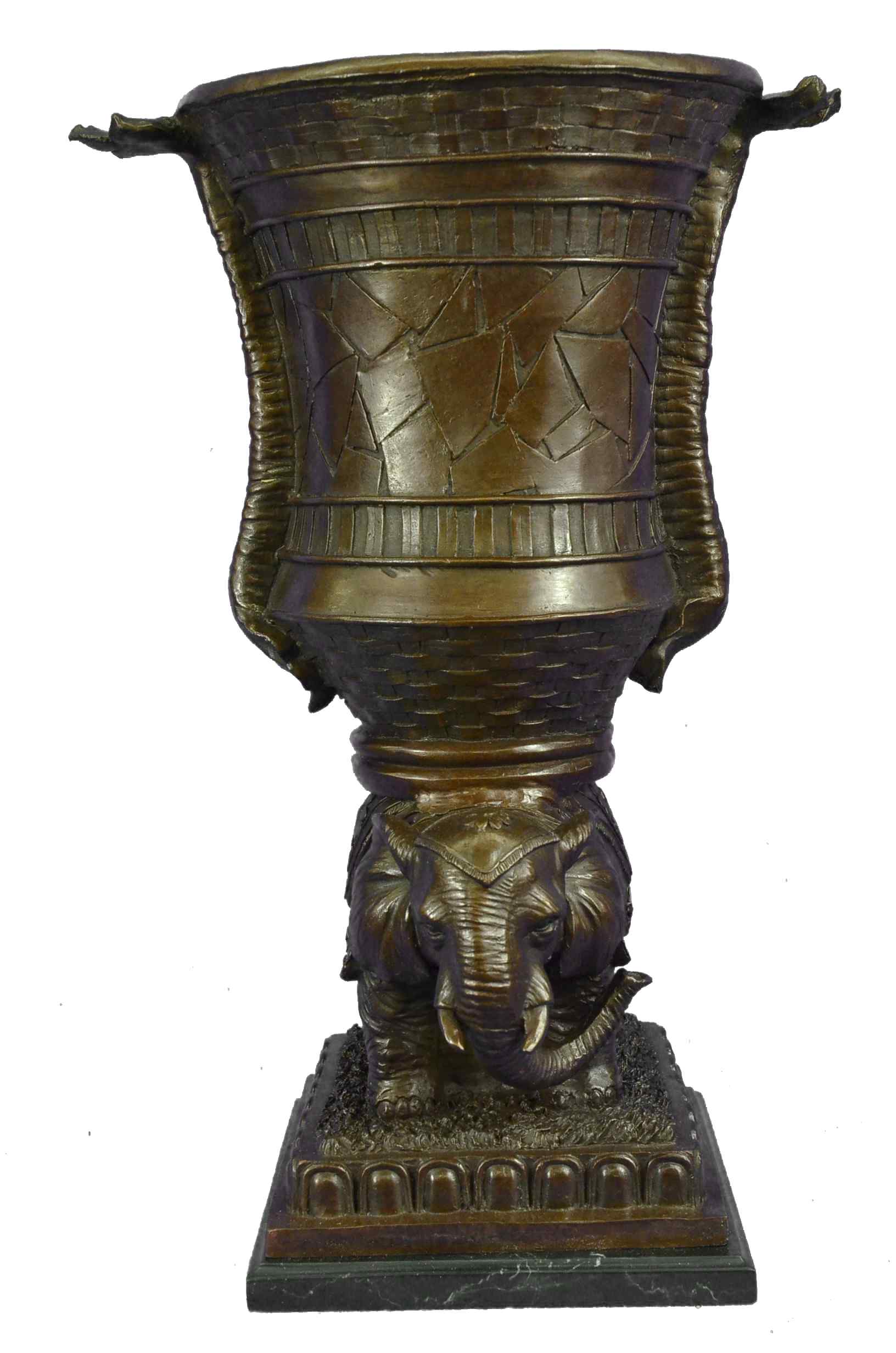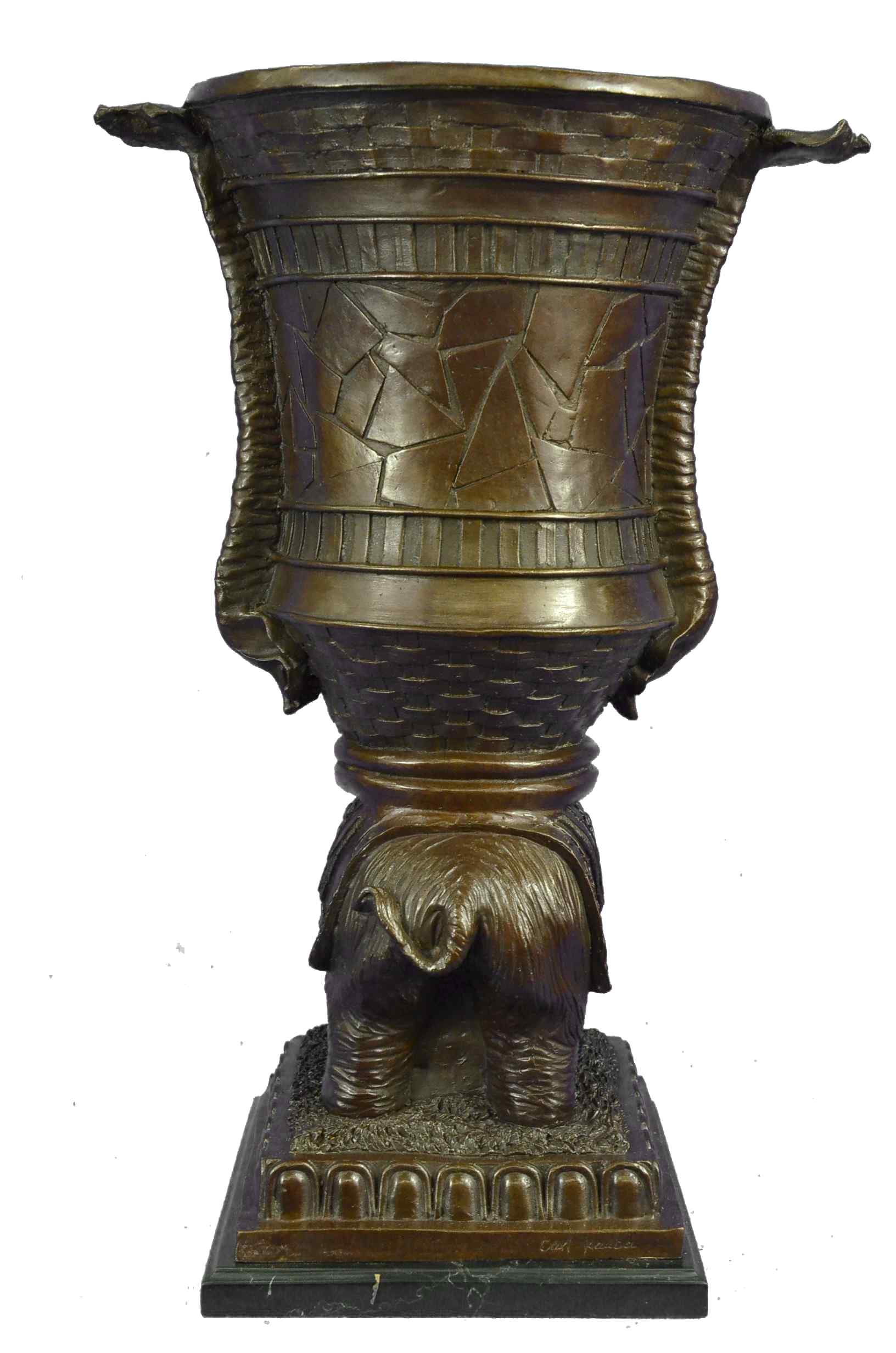 The Bronze Elephant Urn / Bronze planter is made of bronze by the lost wax casting process, an ancient and most desirable way to cast any precious metal. It may be used as a planter or accent piece. The urn will be cherished and passed down for generations to come, it sits on a black marble base and is signed Carl Kauba.Original or Reproduction: Reproduction
