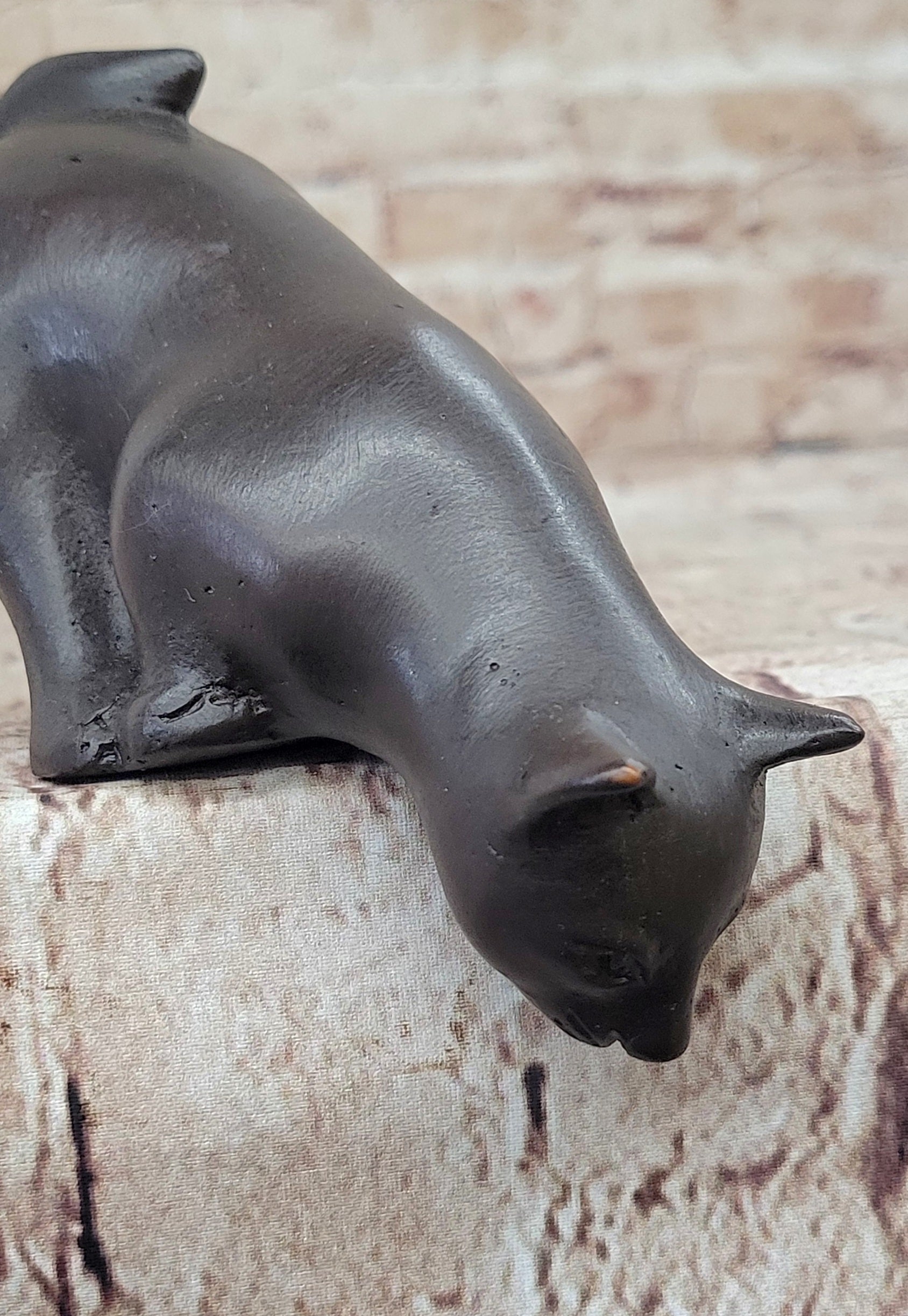 Signed Desk Top Adorable Cat Bronze Sculpture Real Hot Cast Figurine Lost Wax