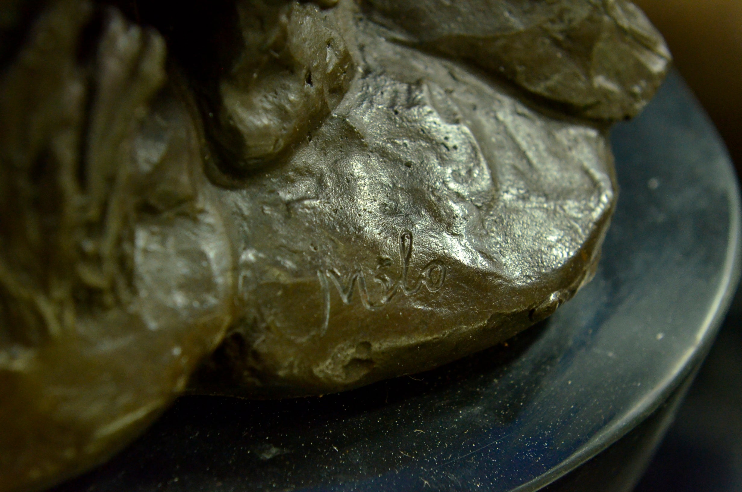 Condition: This sculpture is in perfect condition. Bronze Dimensions with Marble Base:Height 17.5" x Width 15" Marble Dimensions: Diameter 8". Height without base: 16.5" Weight : 21 LBS Inventory:17-XN089712671