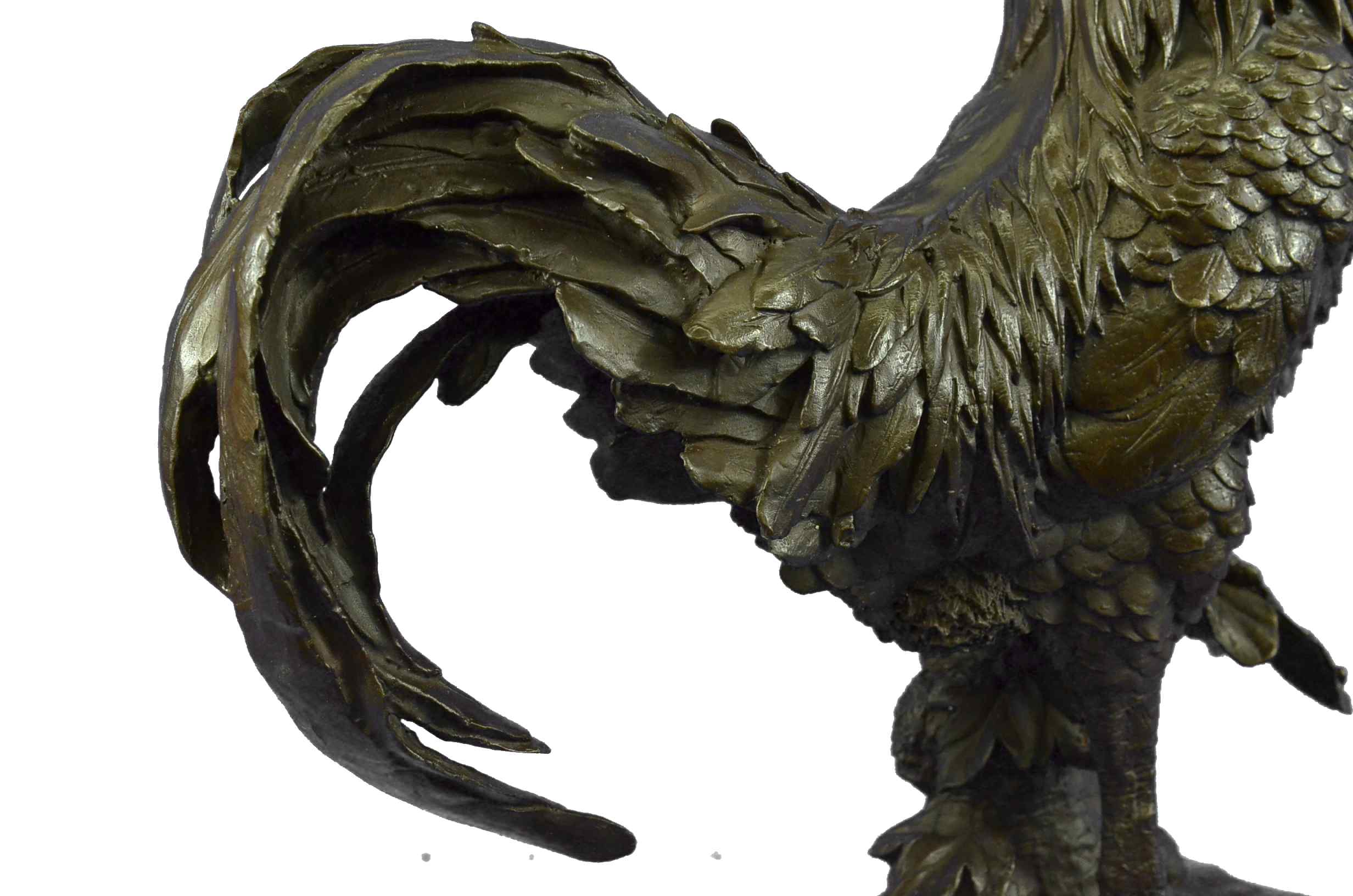 Signed Exquisite Rooster Farm Marble Bronze Statue Sculpture Figurine Figure Art