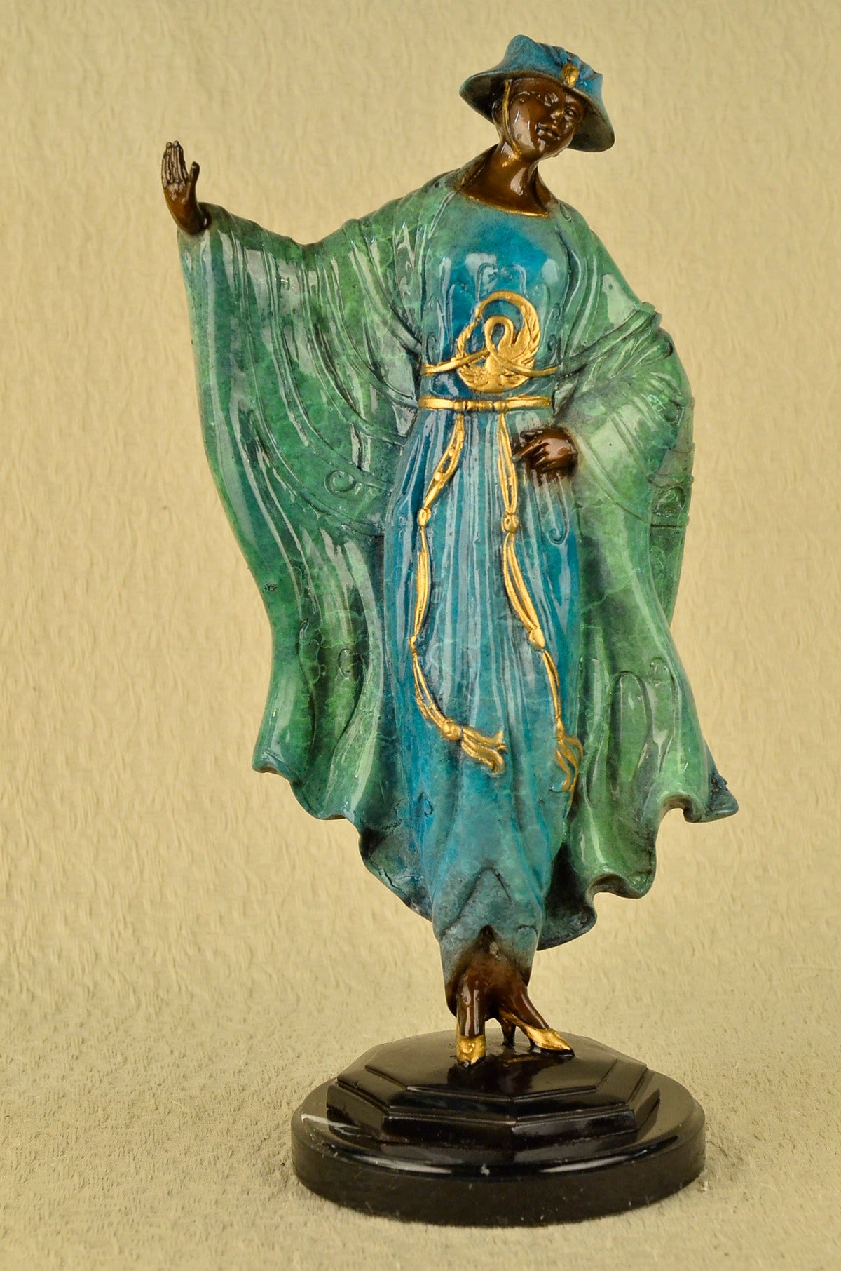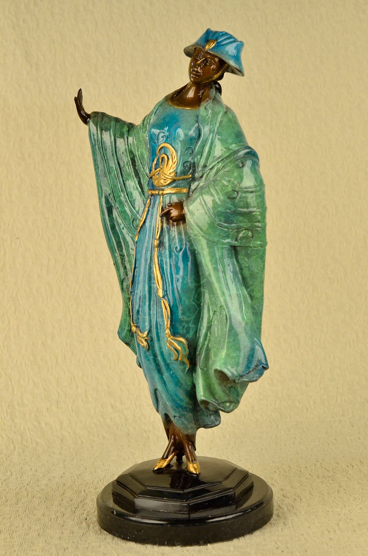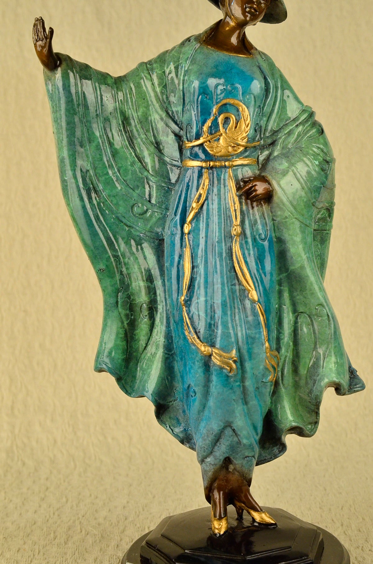 Signed Icart Multi Color Patina Art Nouveau French Model Actress Bronze Figure