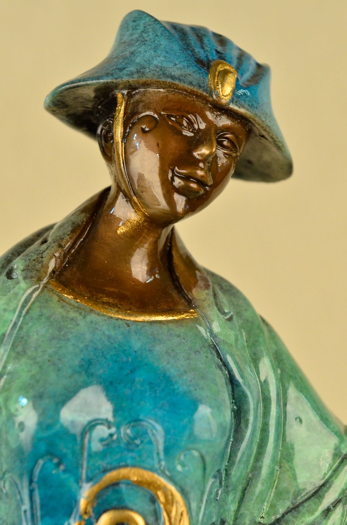 Condition: This sculpture is in perfect  condition. Bronze Dimensions with Marble Base:Height 19" x Width 10" Marble Dimensions: Diameter 7". Height without base: 18" Weight : 14 LBS