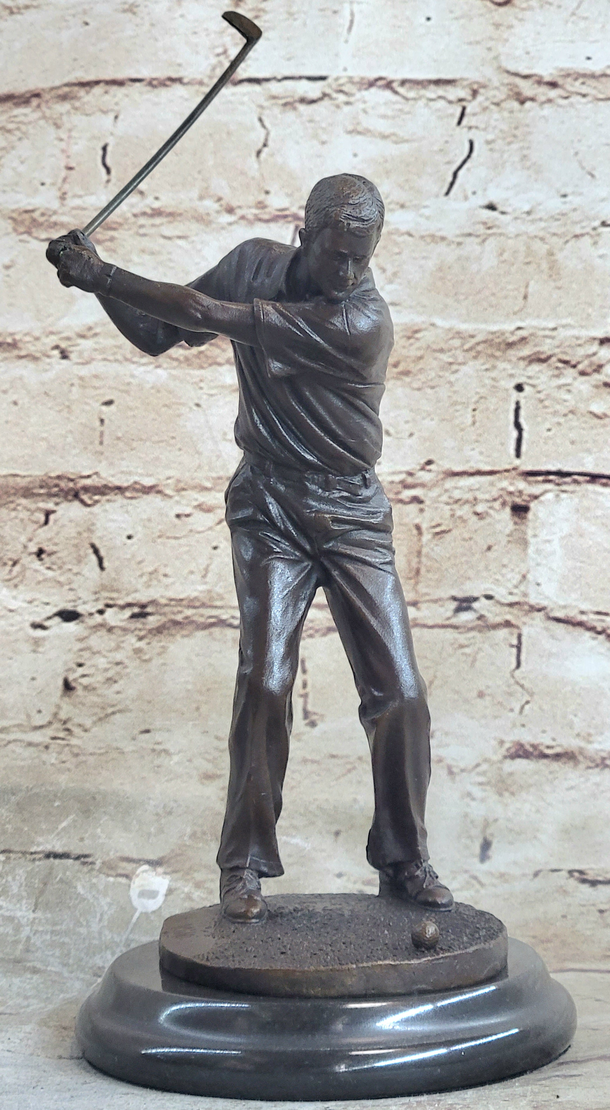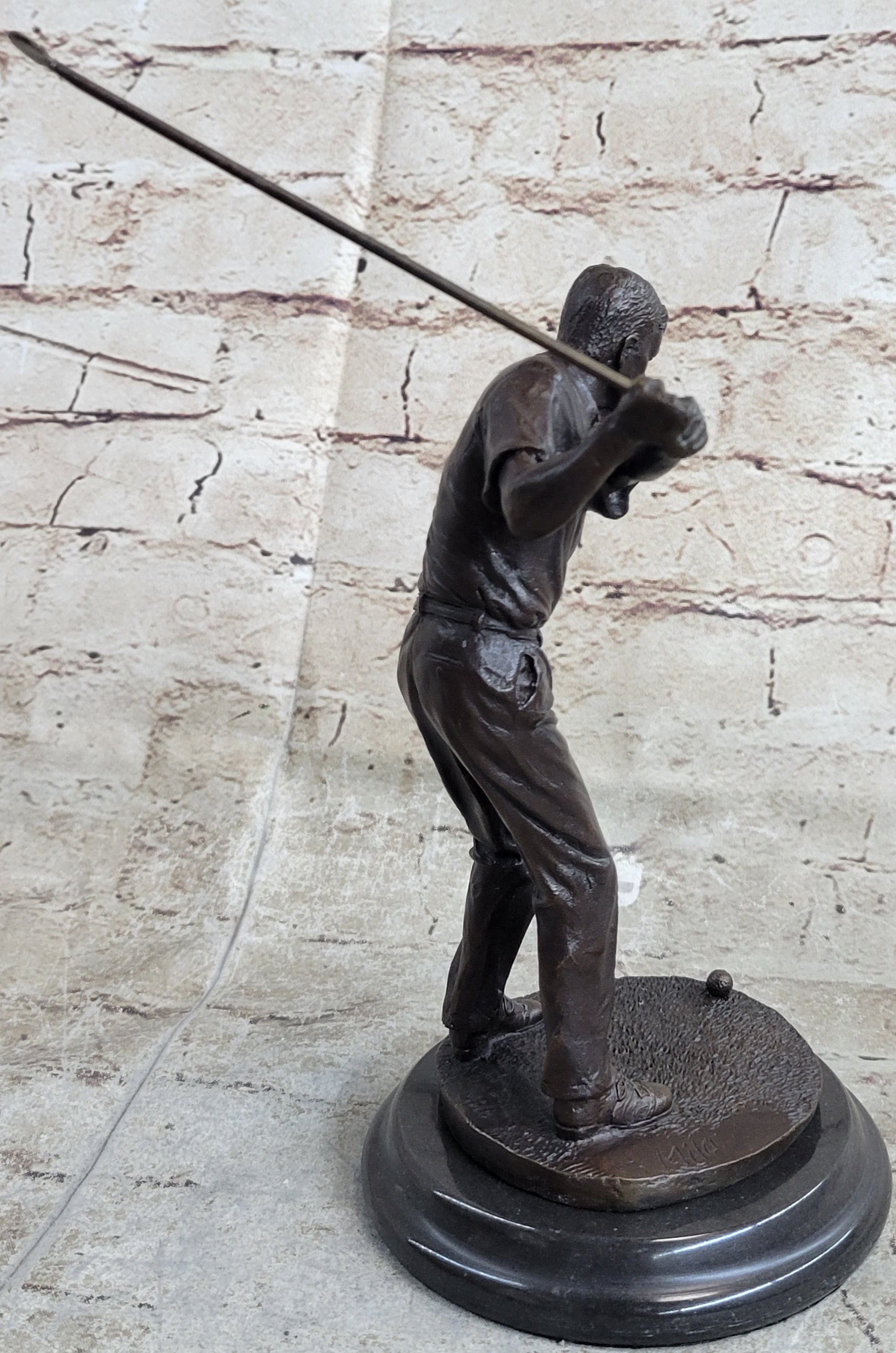Signed Milo Golfer Golf Game Trophy Bronze Marble Base Figurine Figure Home Deco