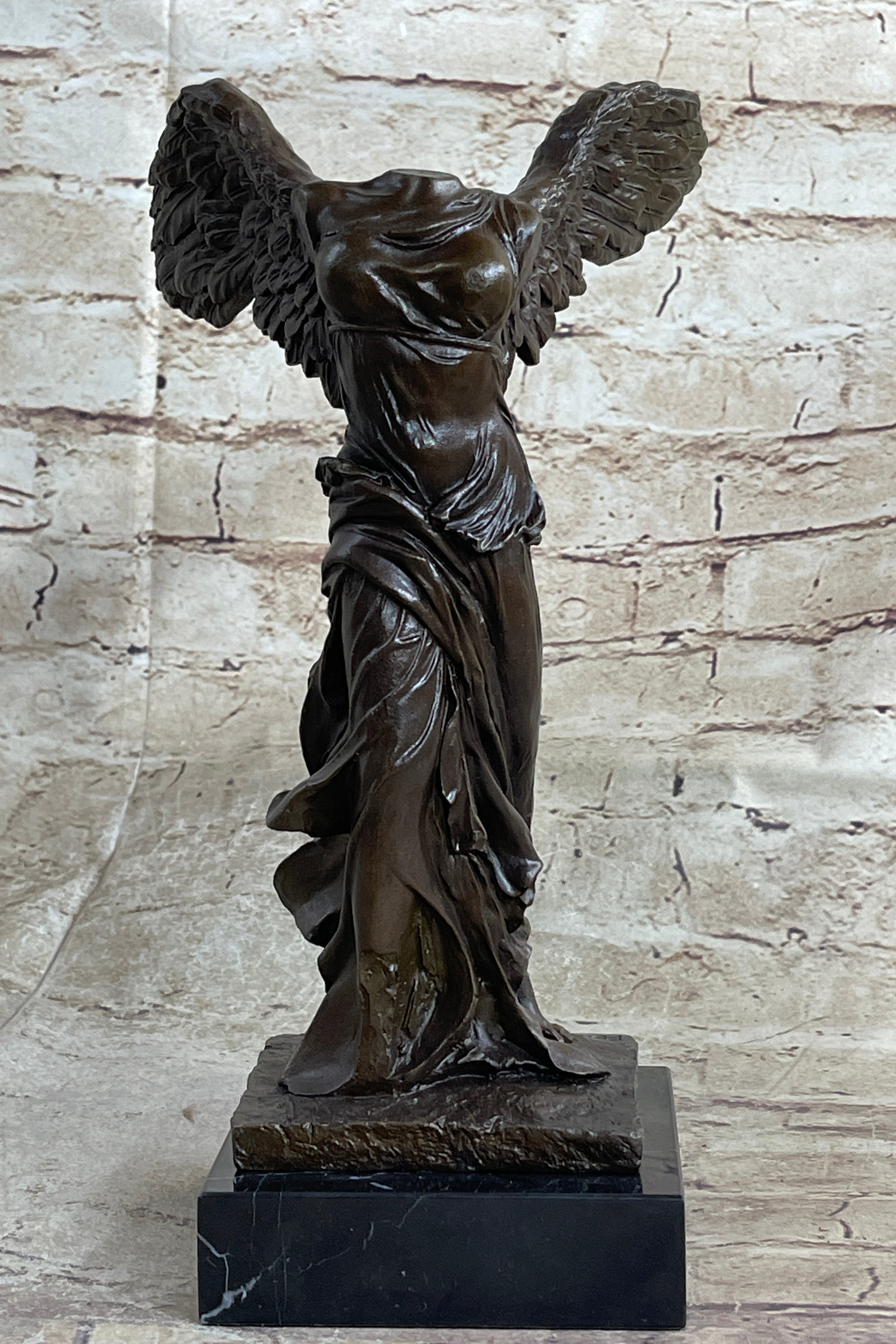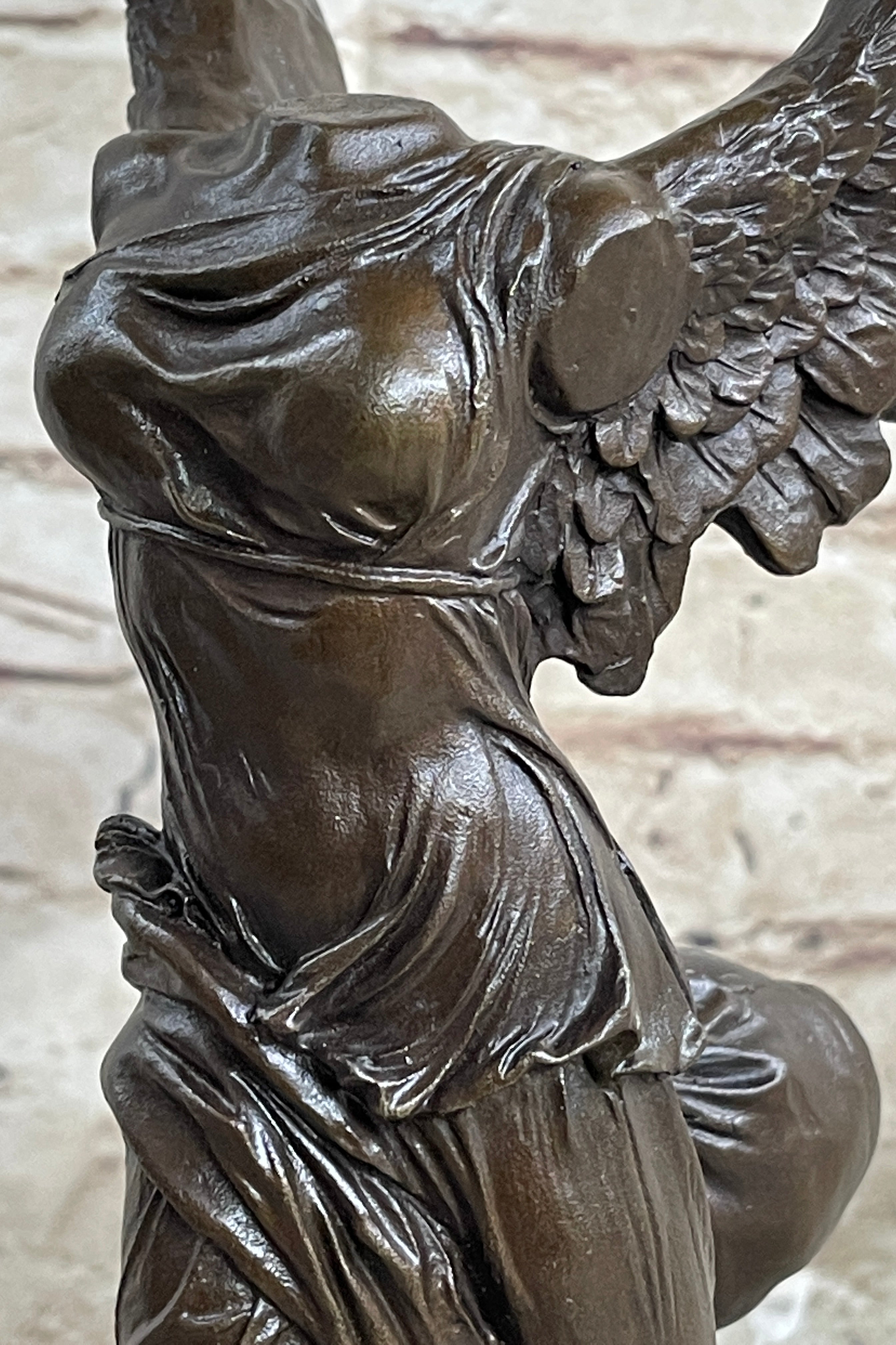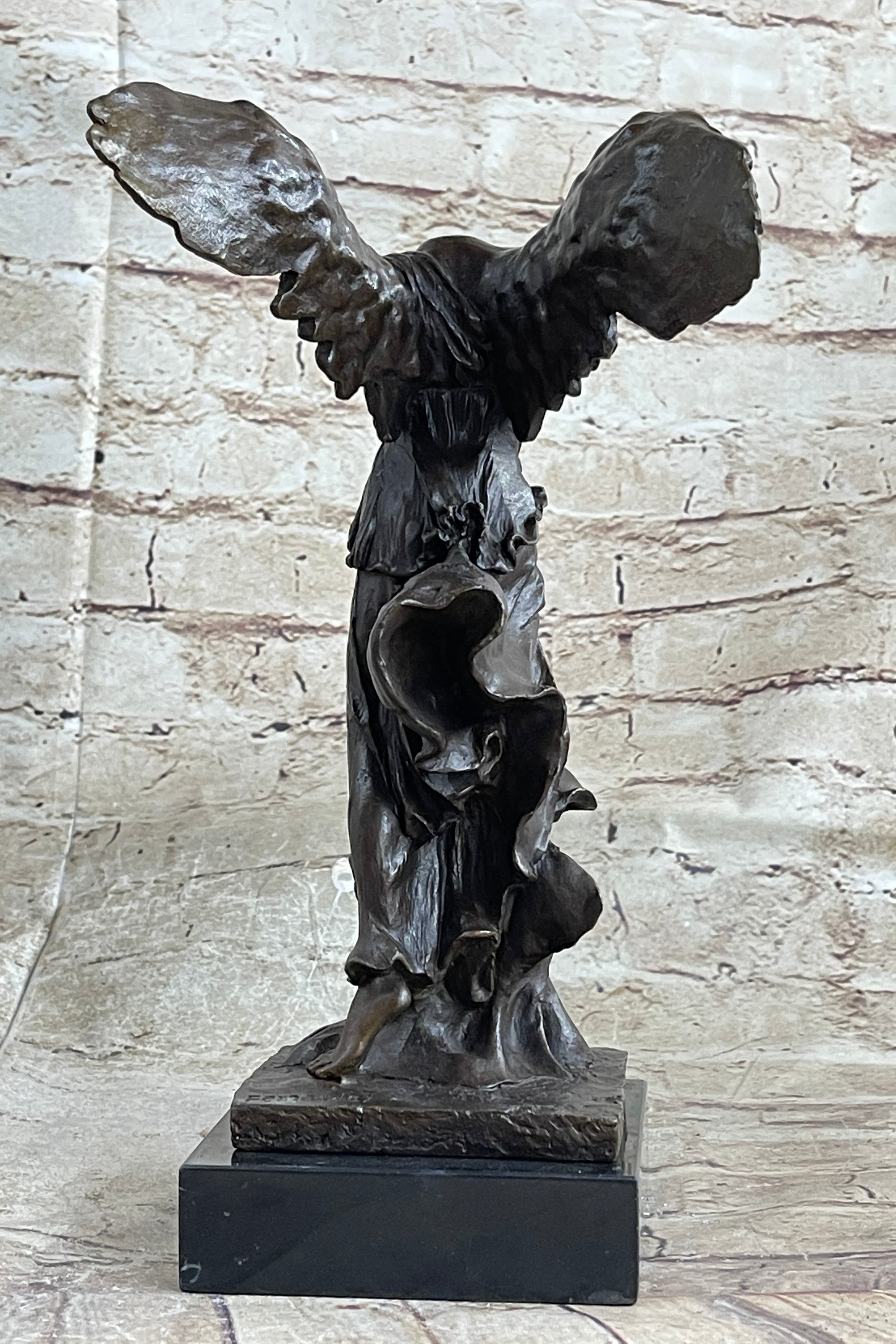 Signed Milo Winged Nike Samothrace Victory Goddess Bronze Sculpture Figurine Art