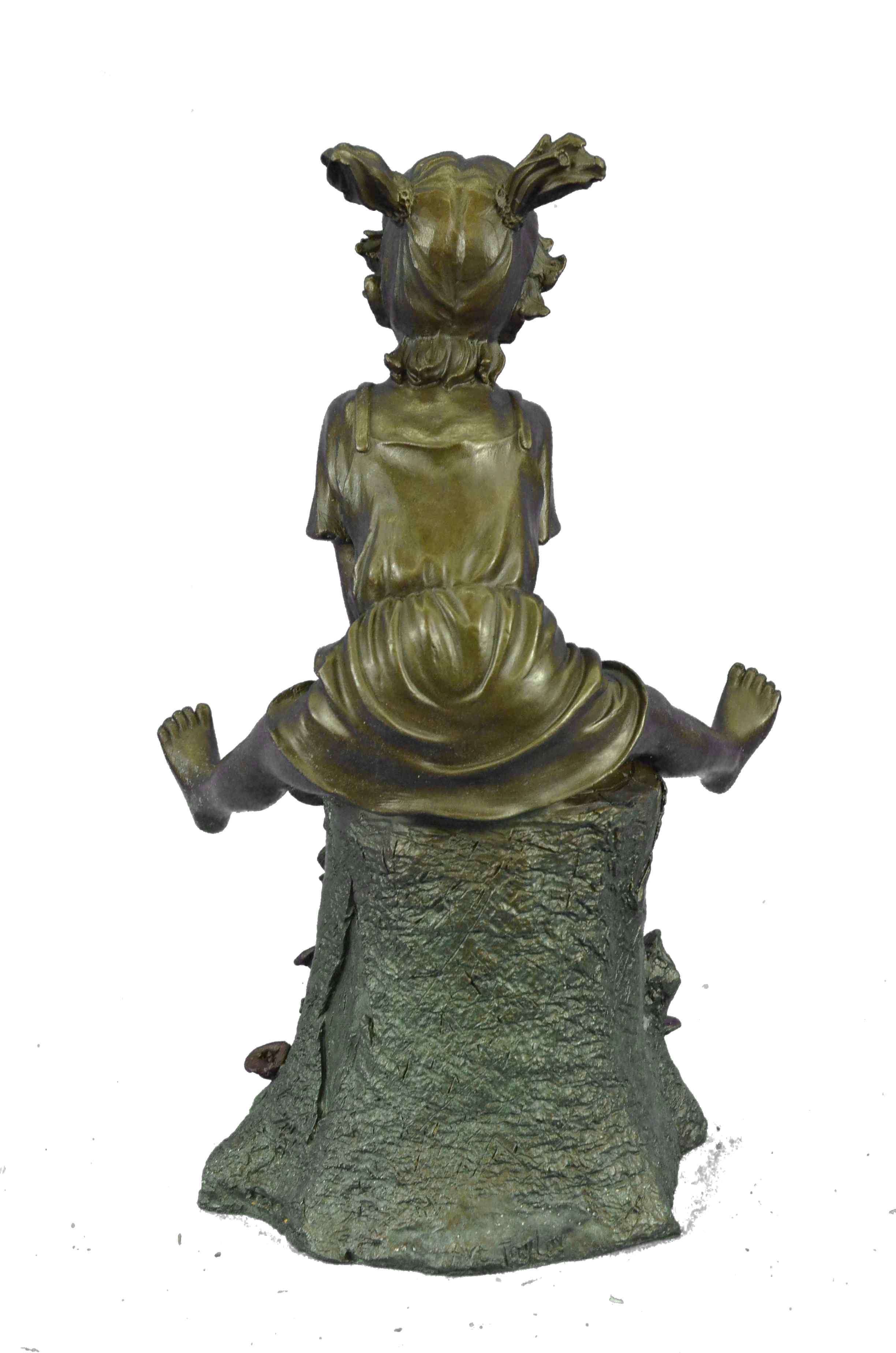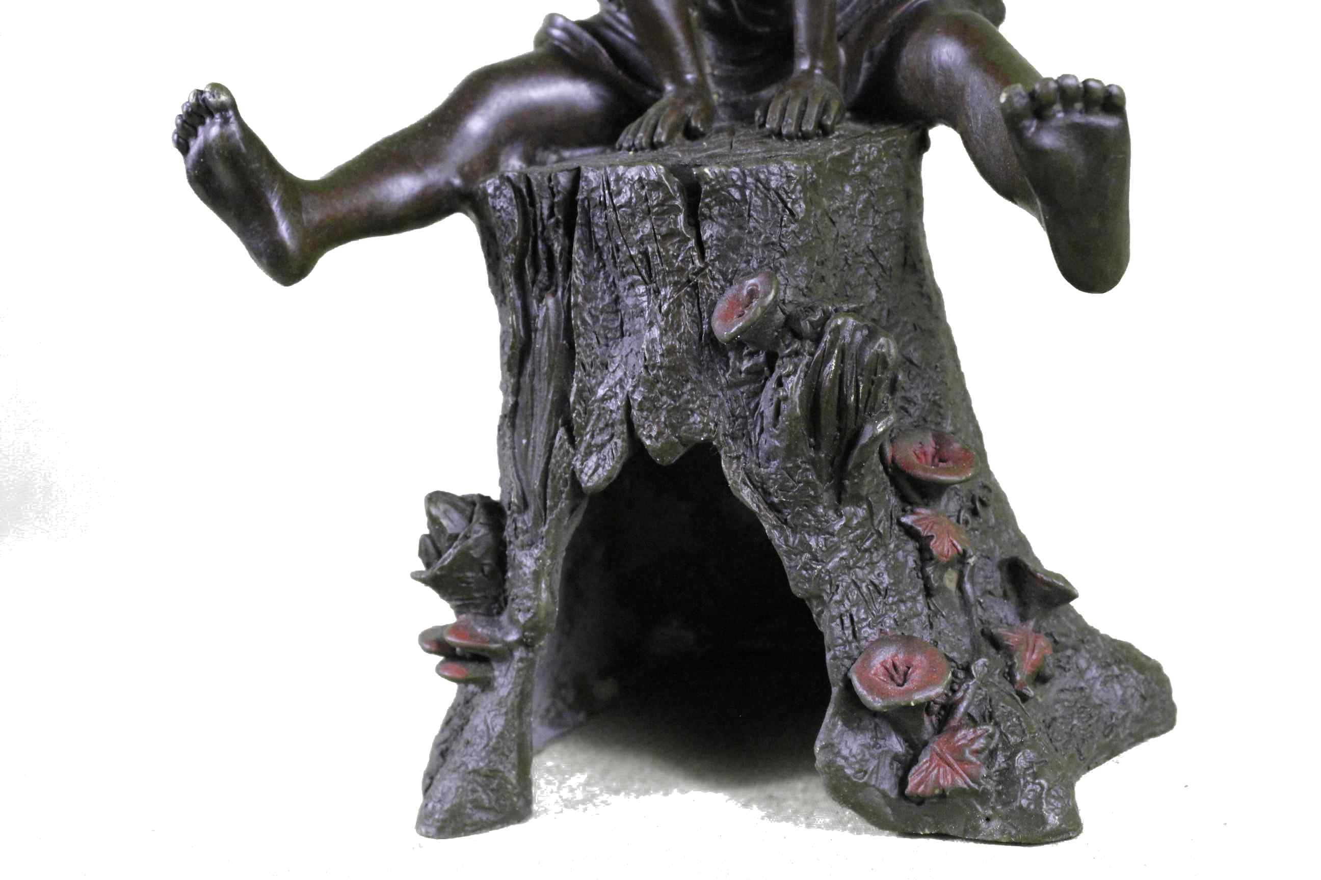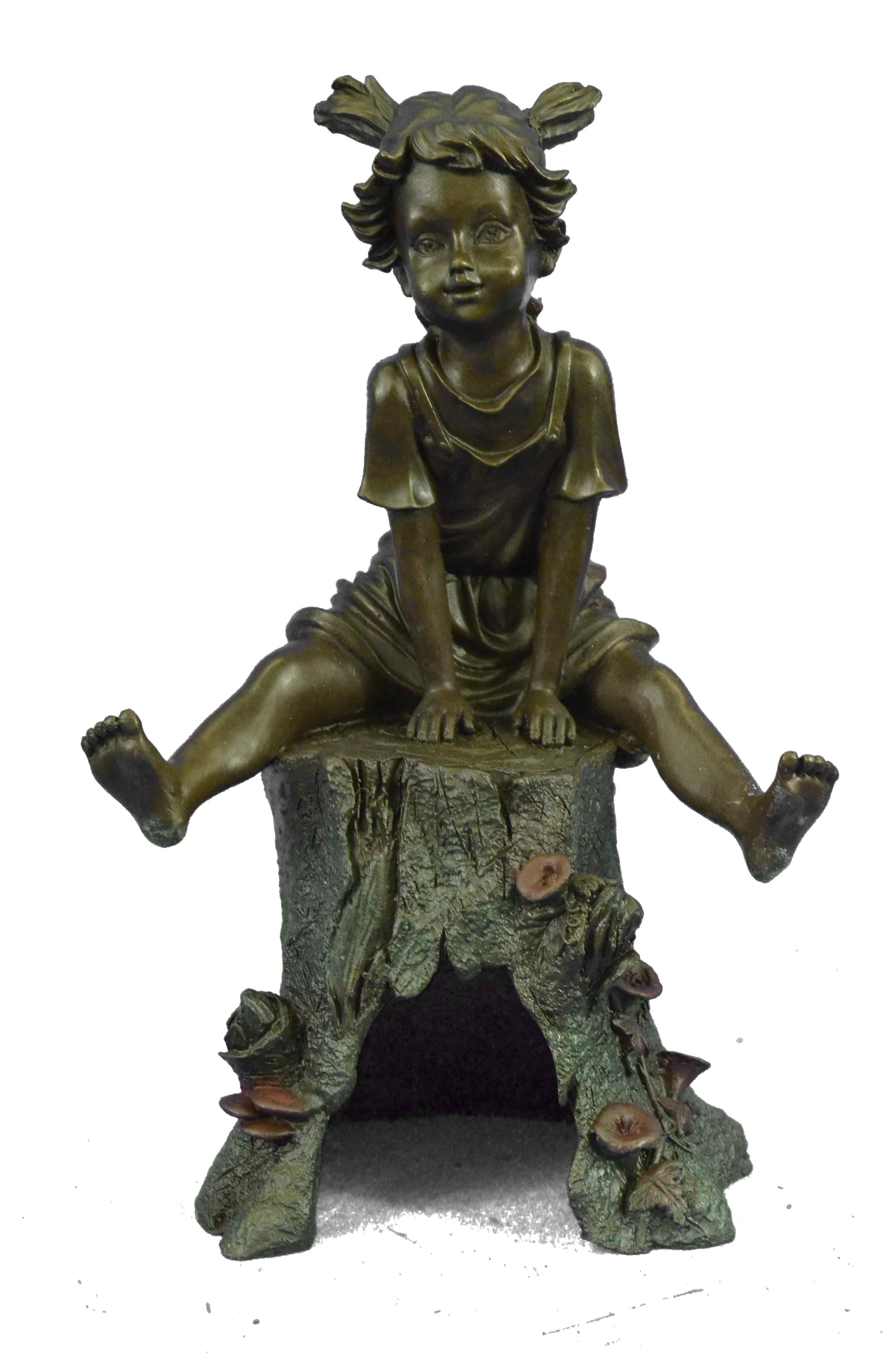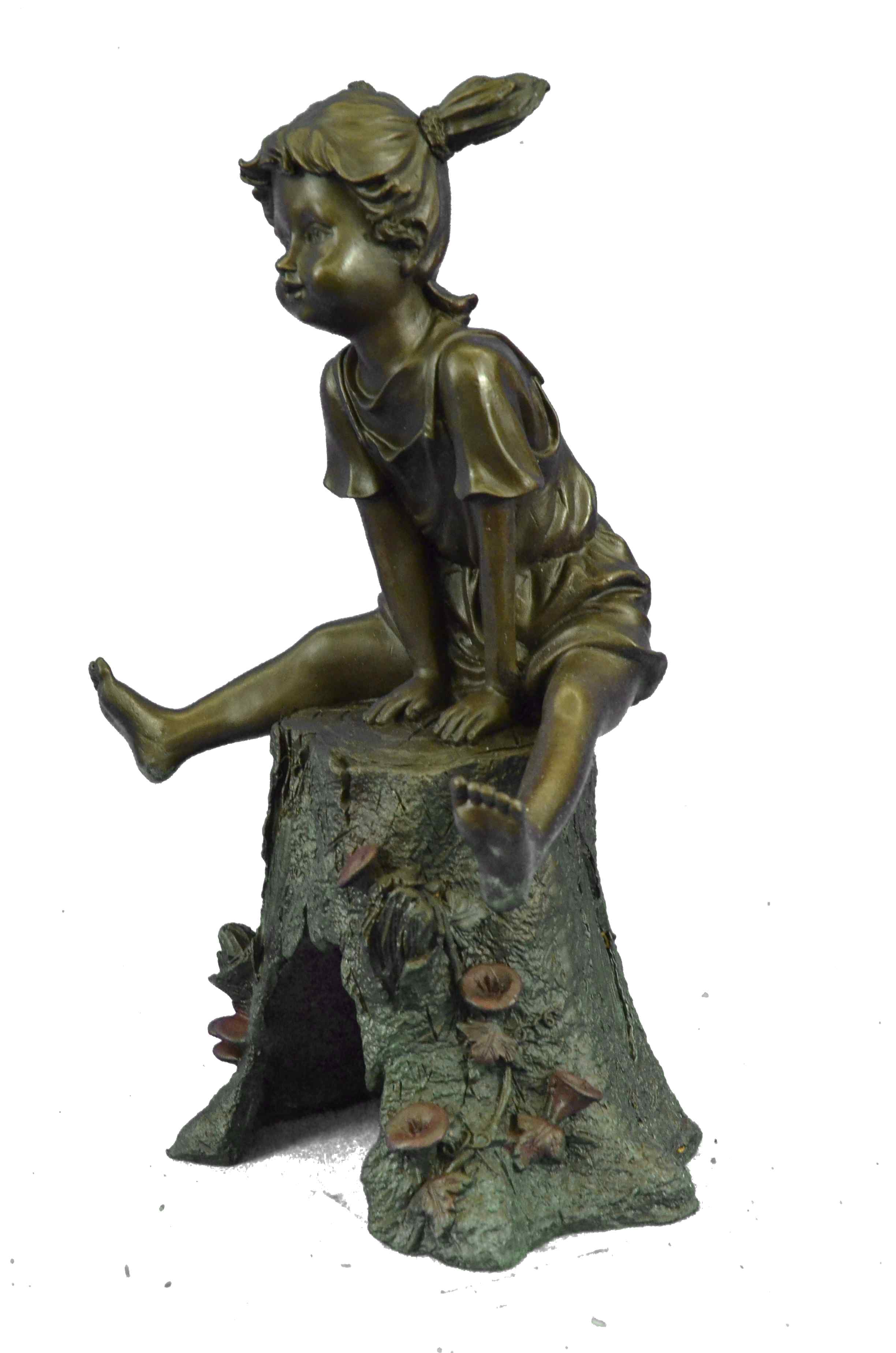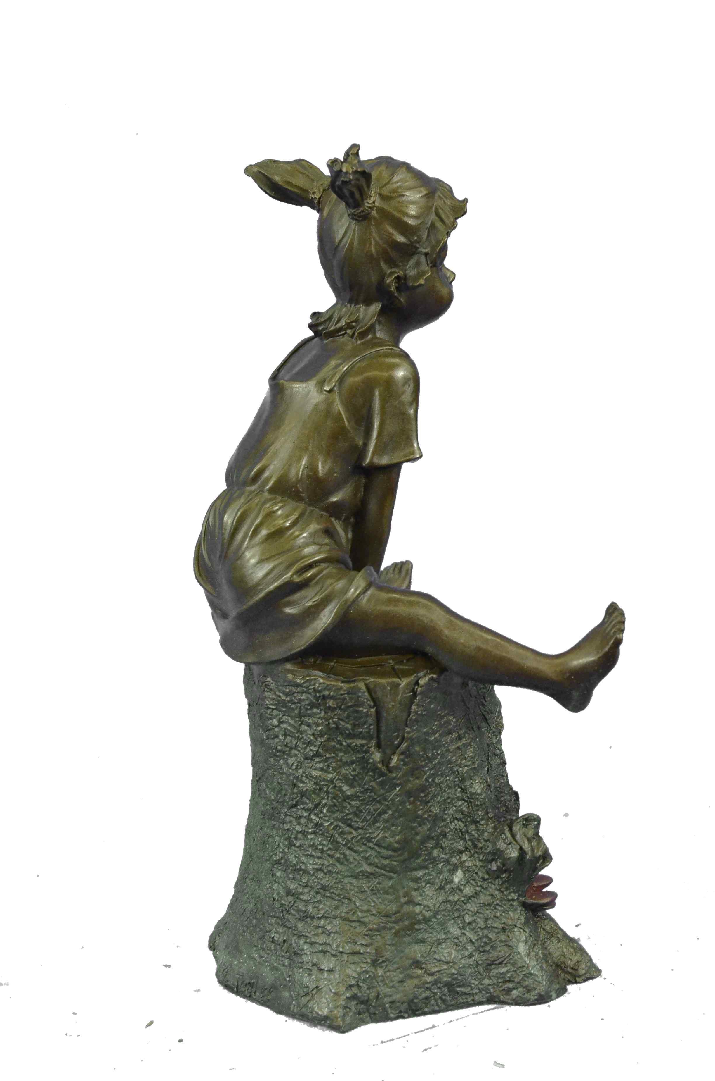 Signed Original Art Taylor ''Girl on A Tree Stump'' Bronze Sculpture Figurine SALE