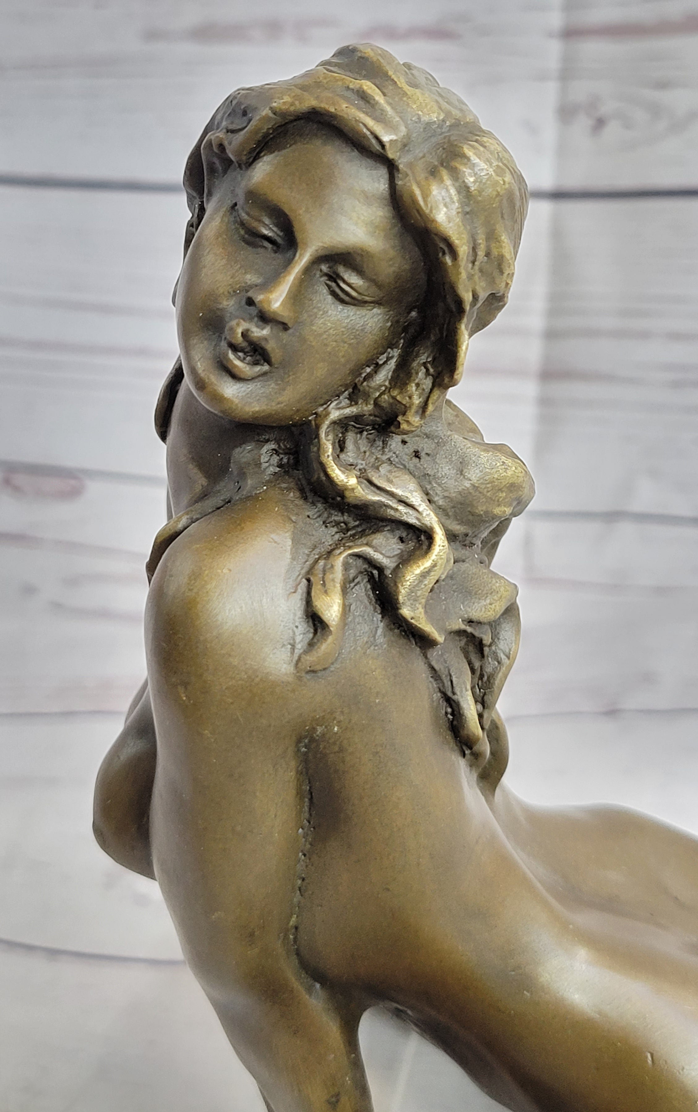 This bronze sculpture transcends mere aesthetics; it serves as a poignant representation of feminine grace and the enduring allure of the human form. Whether displayed in a private art collection or as a centerpiece in a public setting, it invites viewers to contemplate the profound beauty and serenity it embodies. It is a piece that resonates with those who appreciate the timeless elegance of classical artistry.Bronze Dimensions: Height 8" X Width 6"