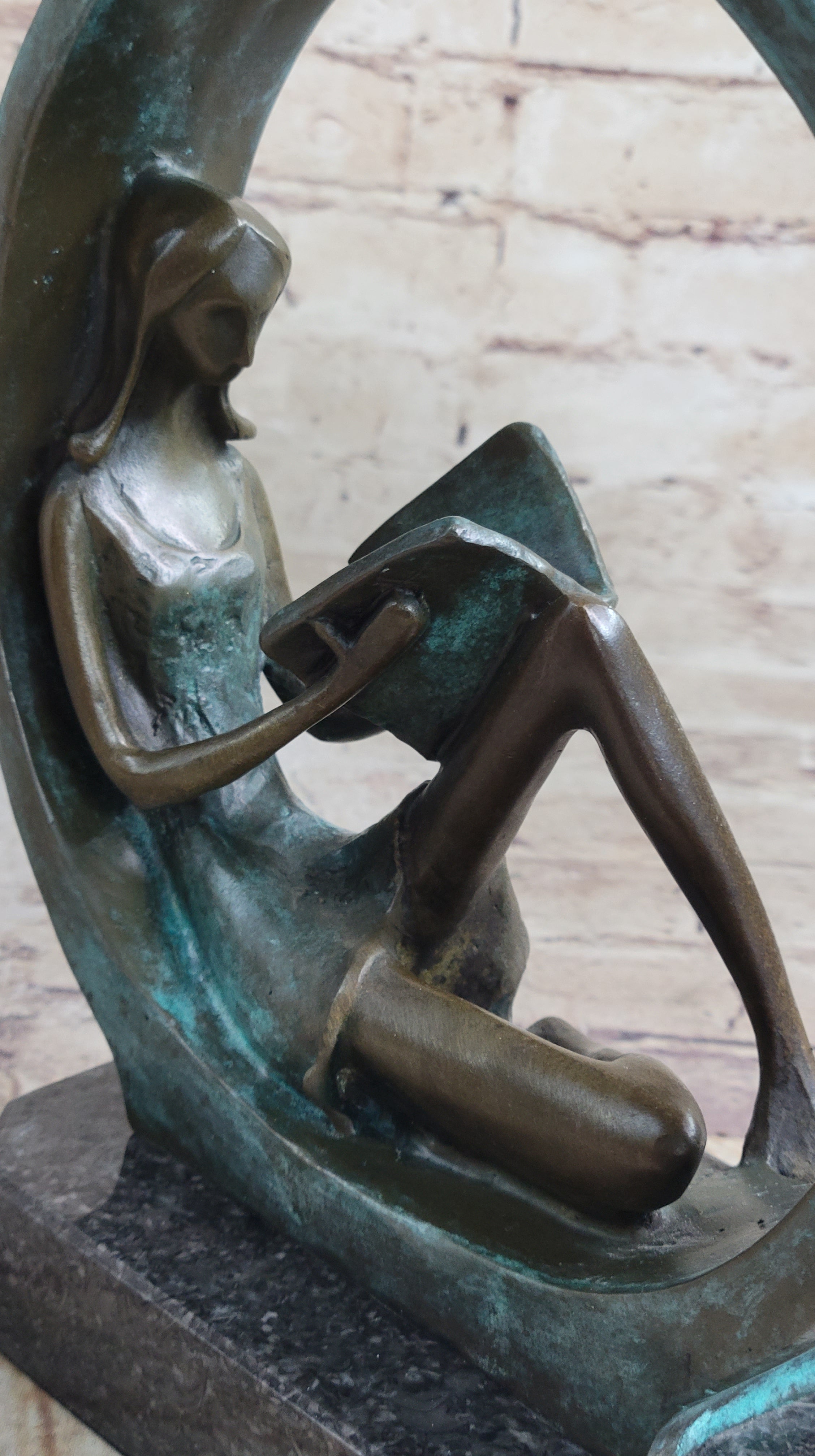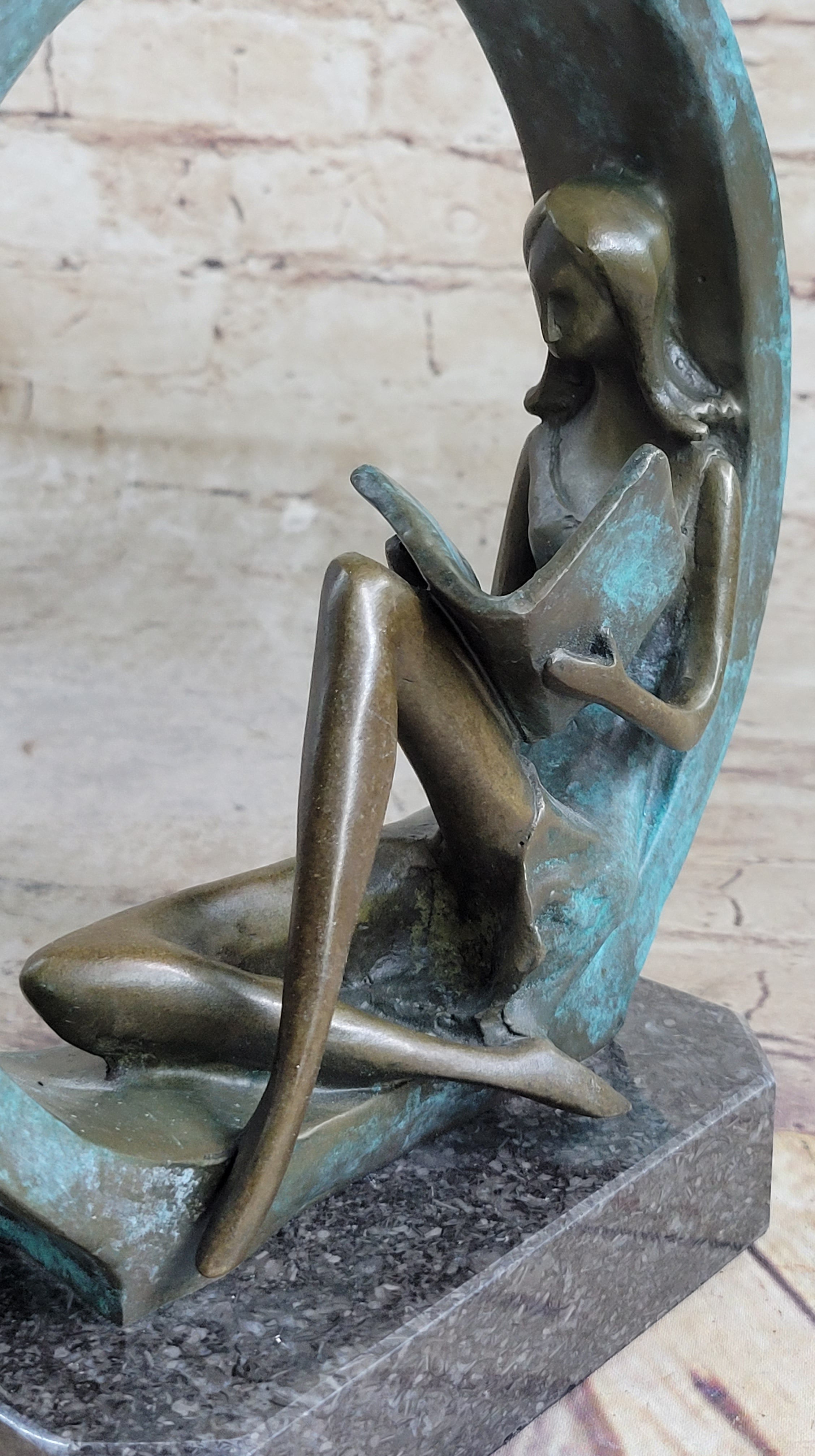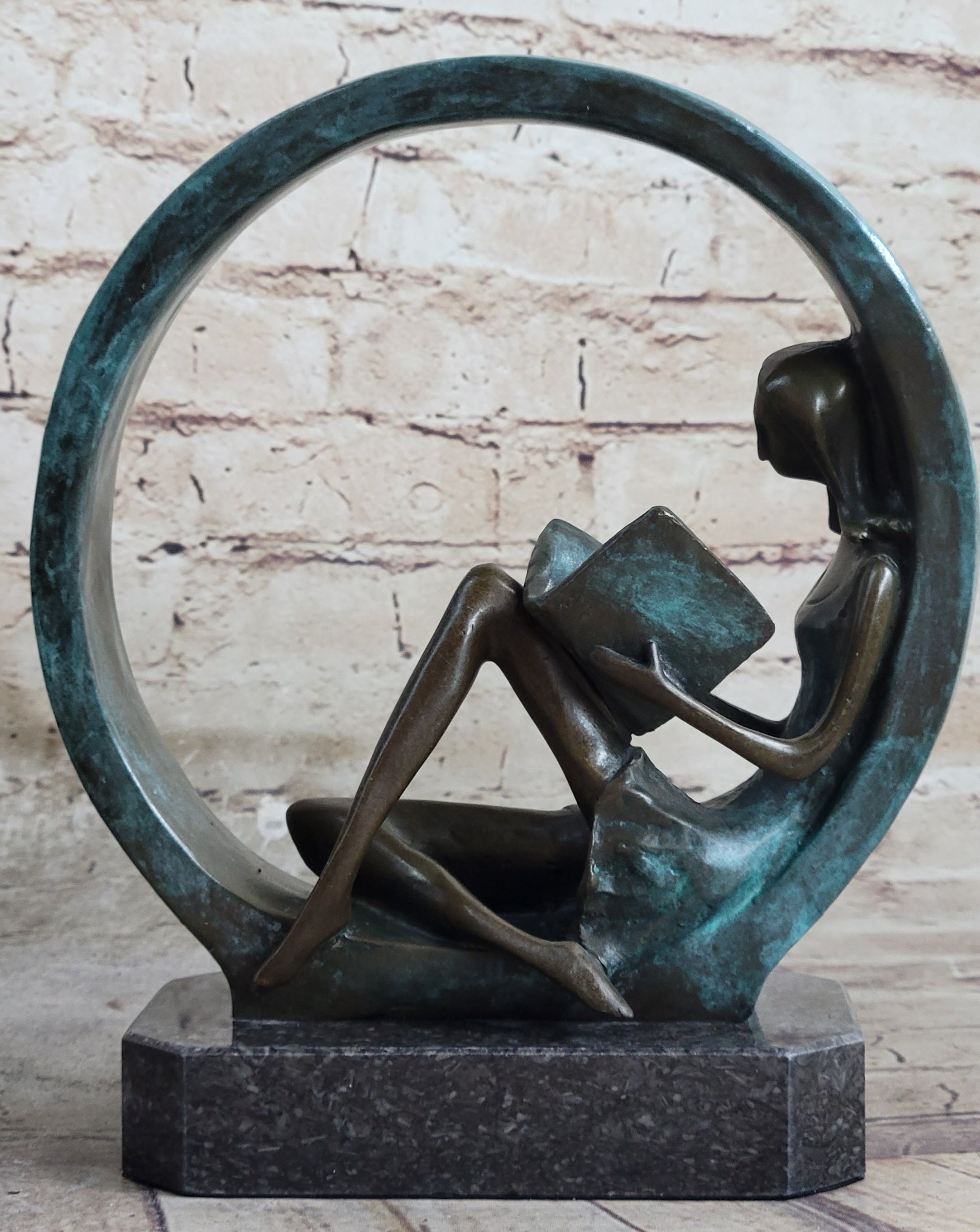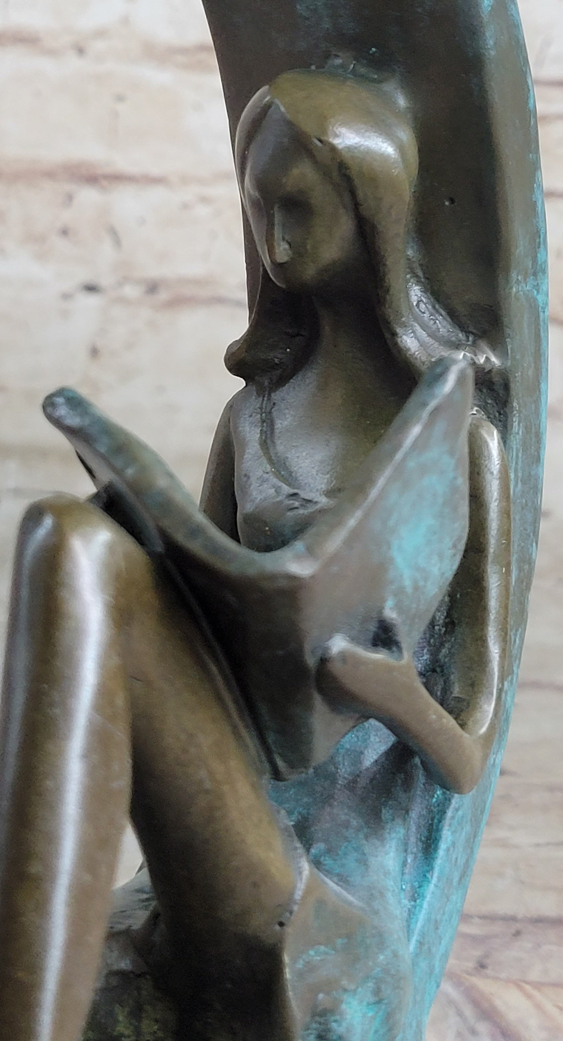 Signed Original Artwork by Collet Girl Reading A Book Bronze Sculpture Figurine