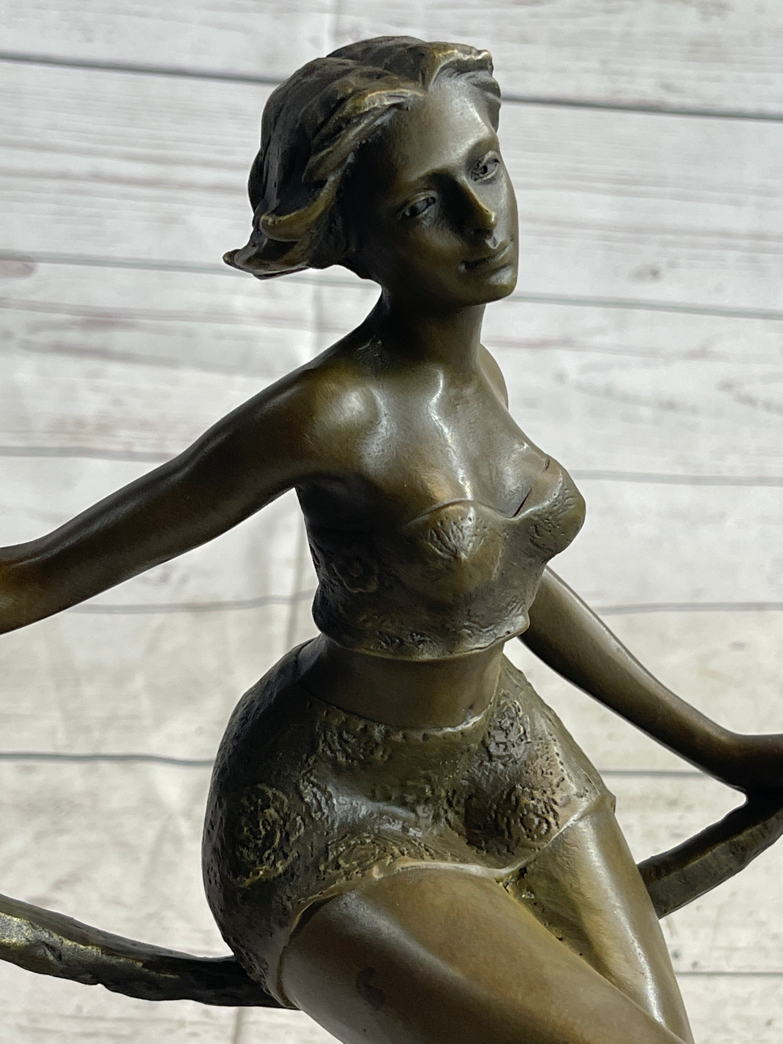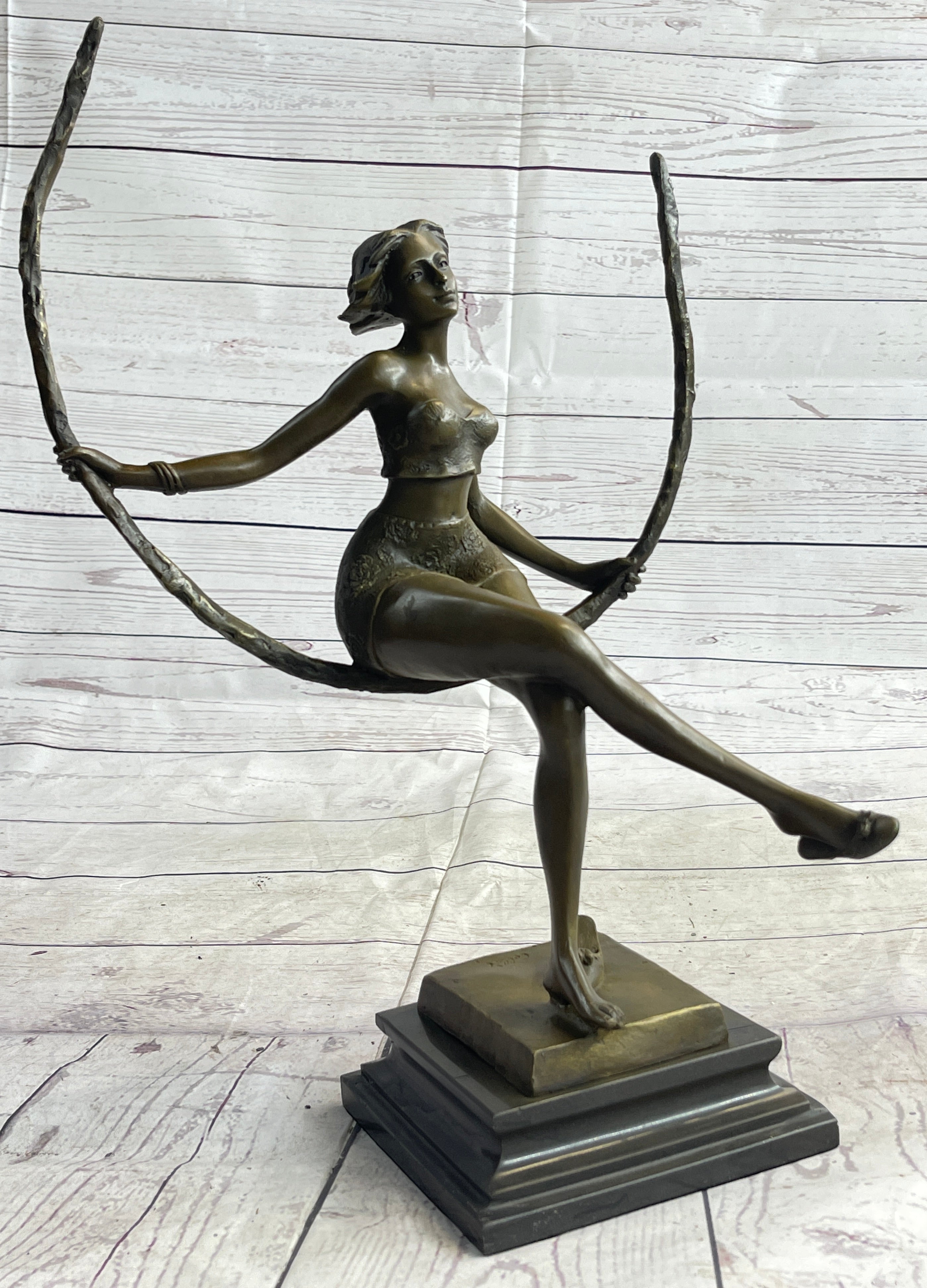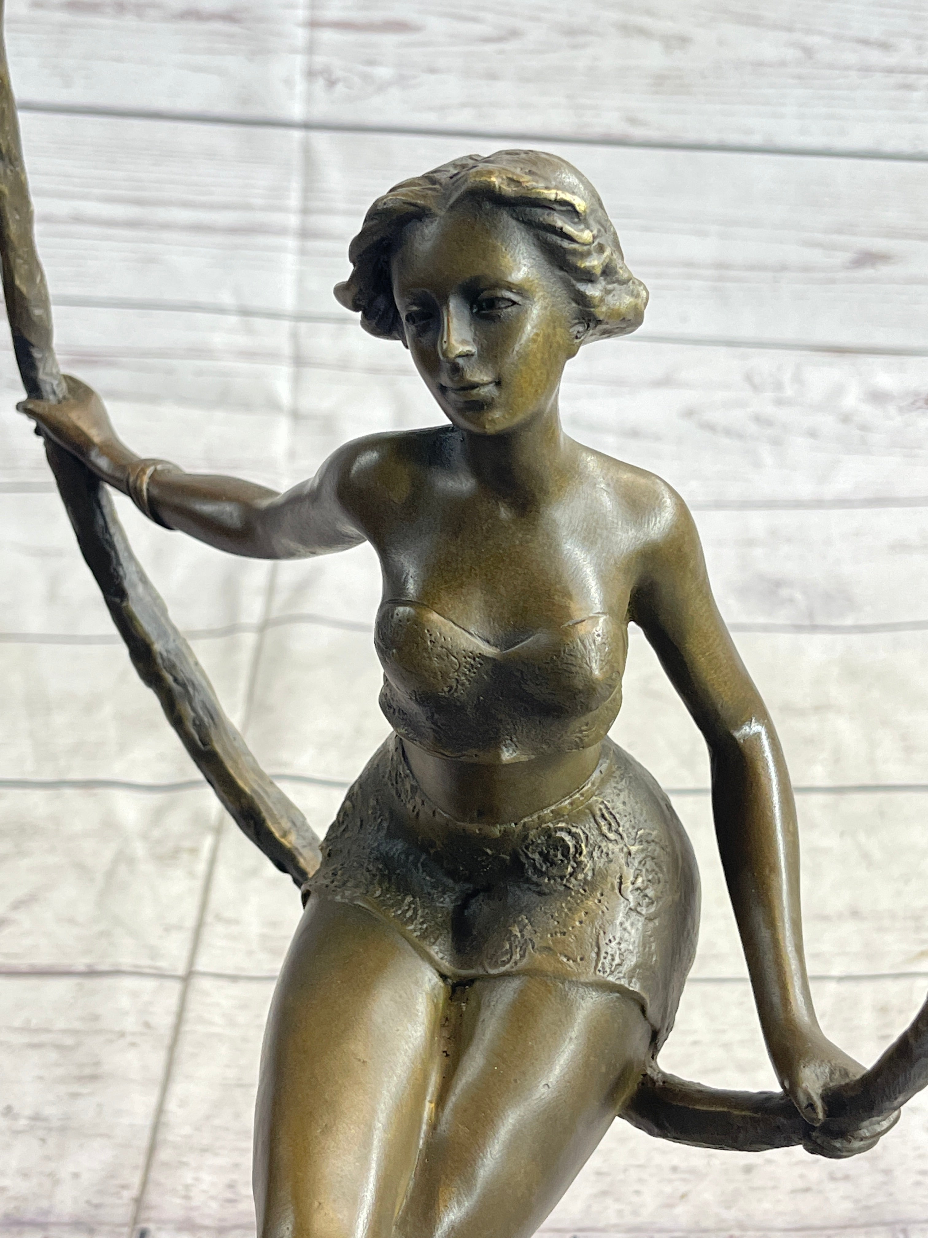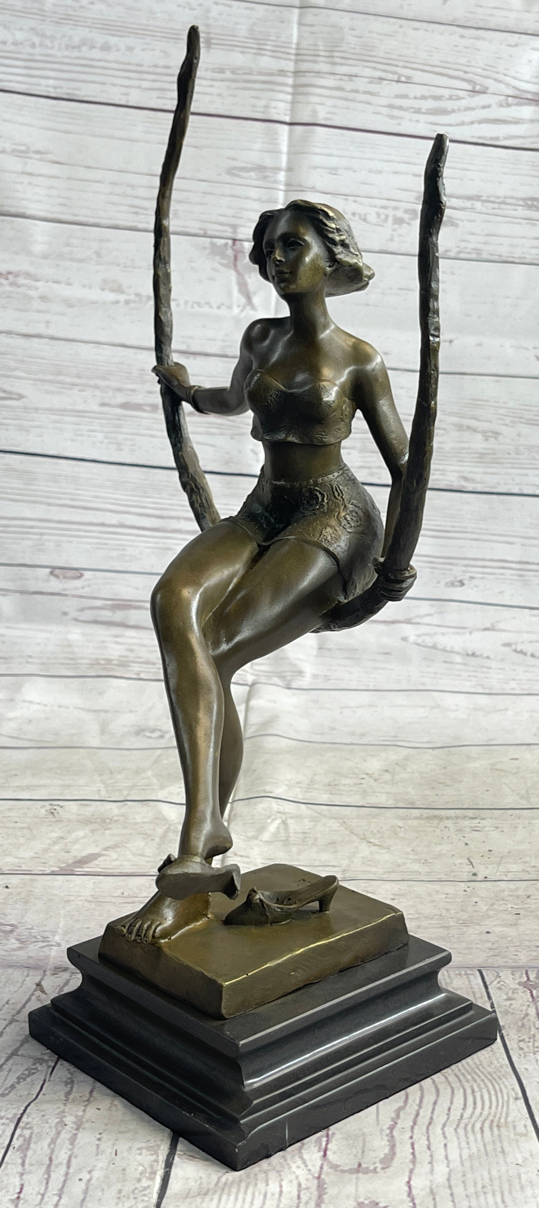 Signed Original Artwork by Collet Sexy Woman on Swing Bronze Sculpture Statue