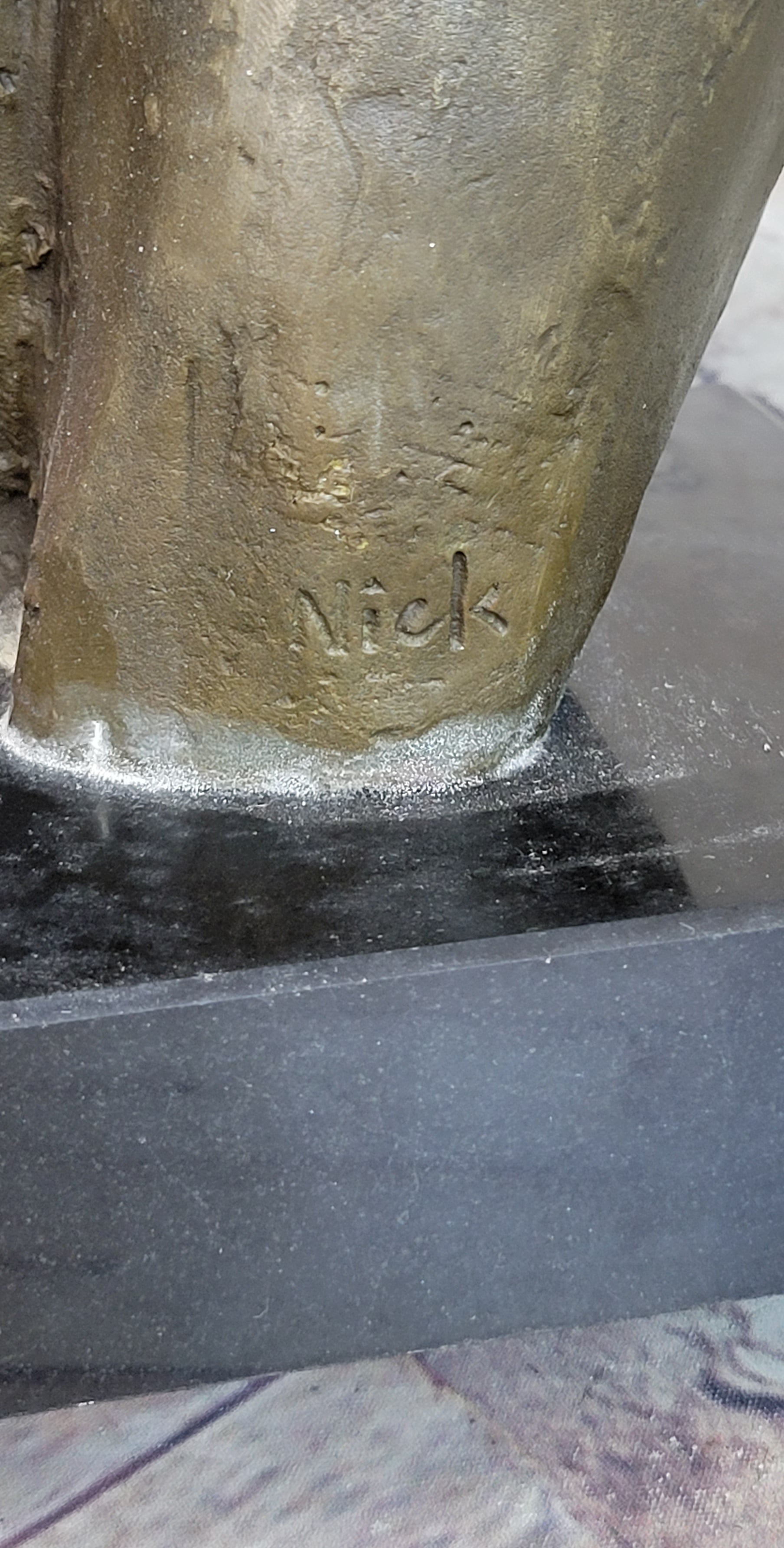 This exquisite collector edition bronze sculpture showcases a female nude torso, elegantly resting on a black marble base. Signed by the artist Mario Nick, this piece epitomizes the beauty of abstract art, highlighting the playful interaction of a woman with her own body. The sculpture's curvaceous lines accentuate the female form, capturing its essence in a graceful and artistic manner.