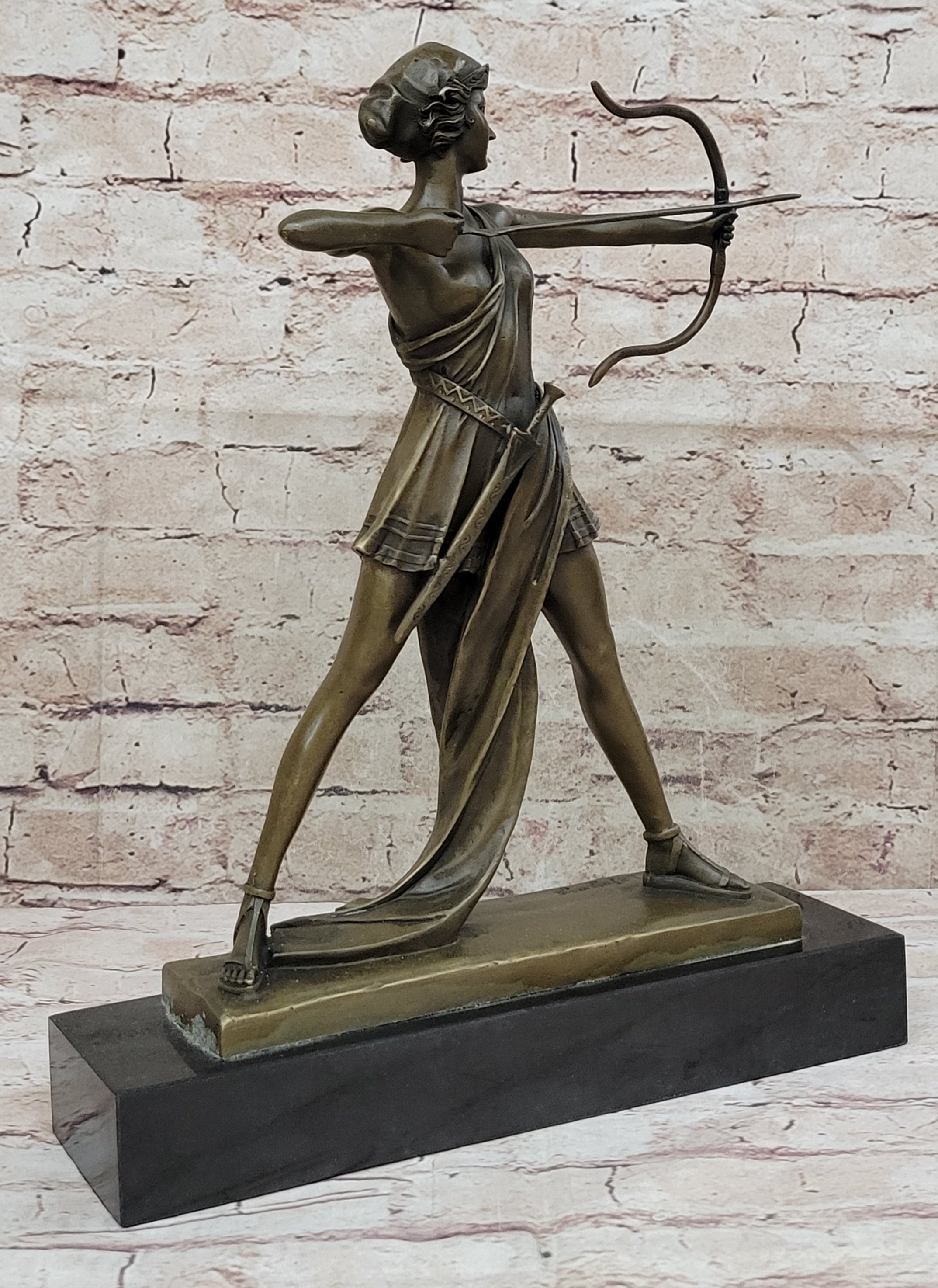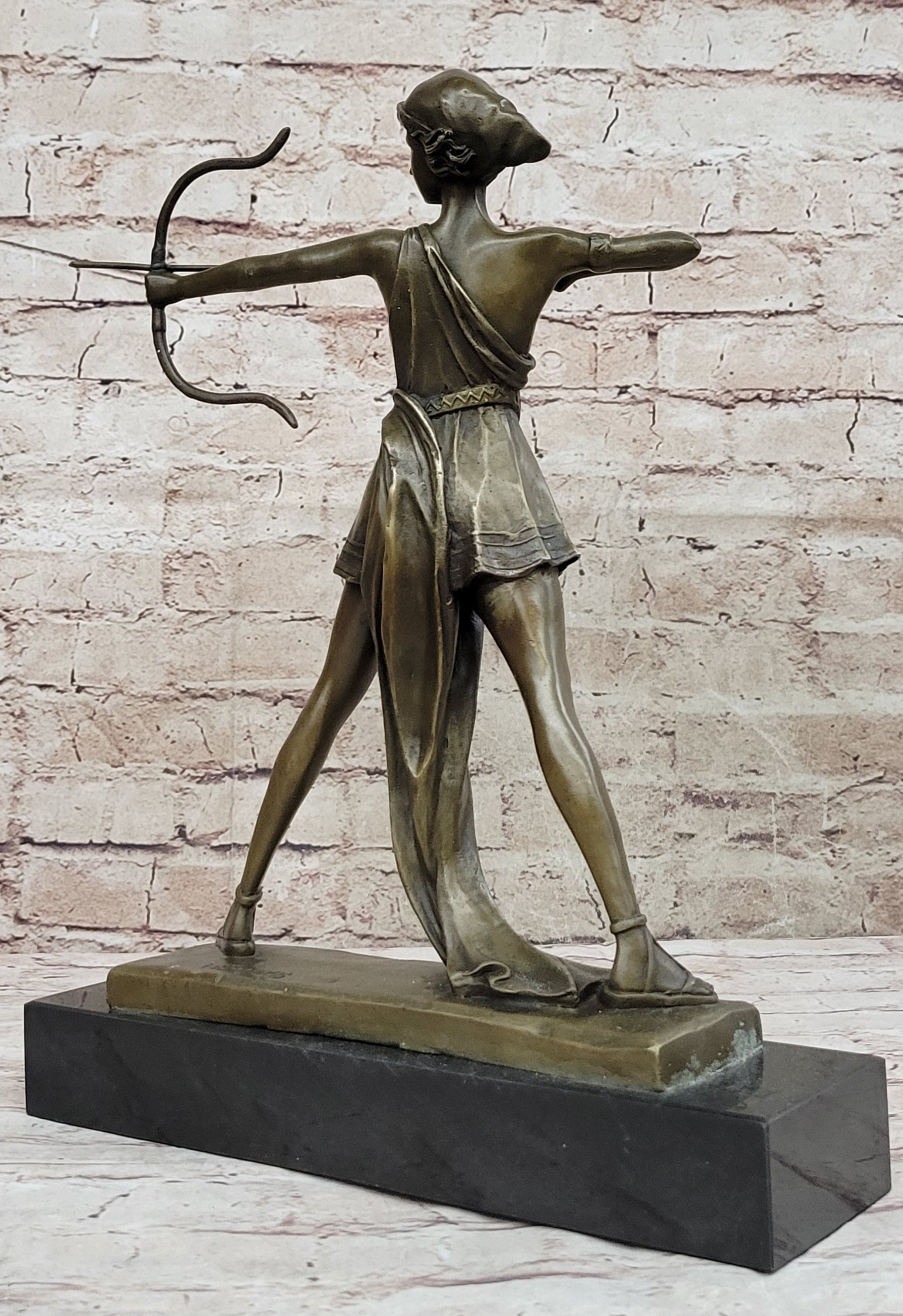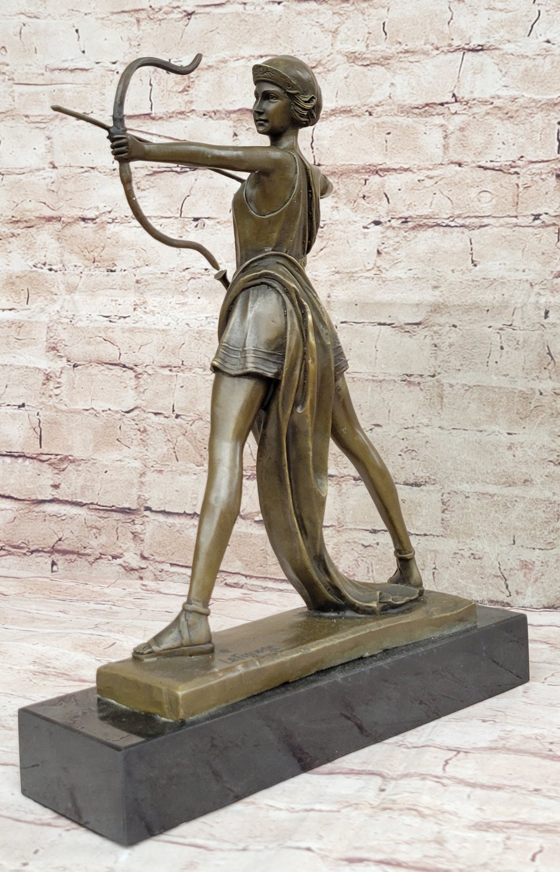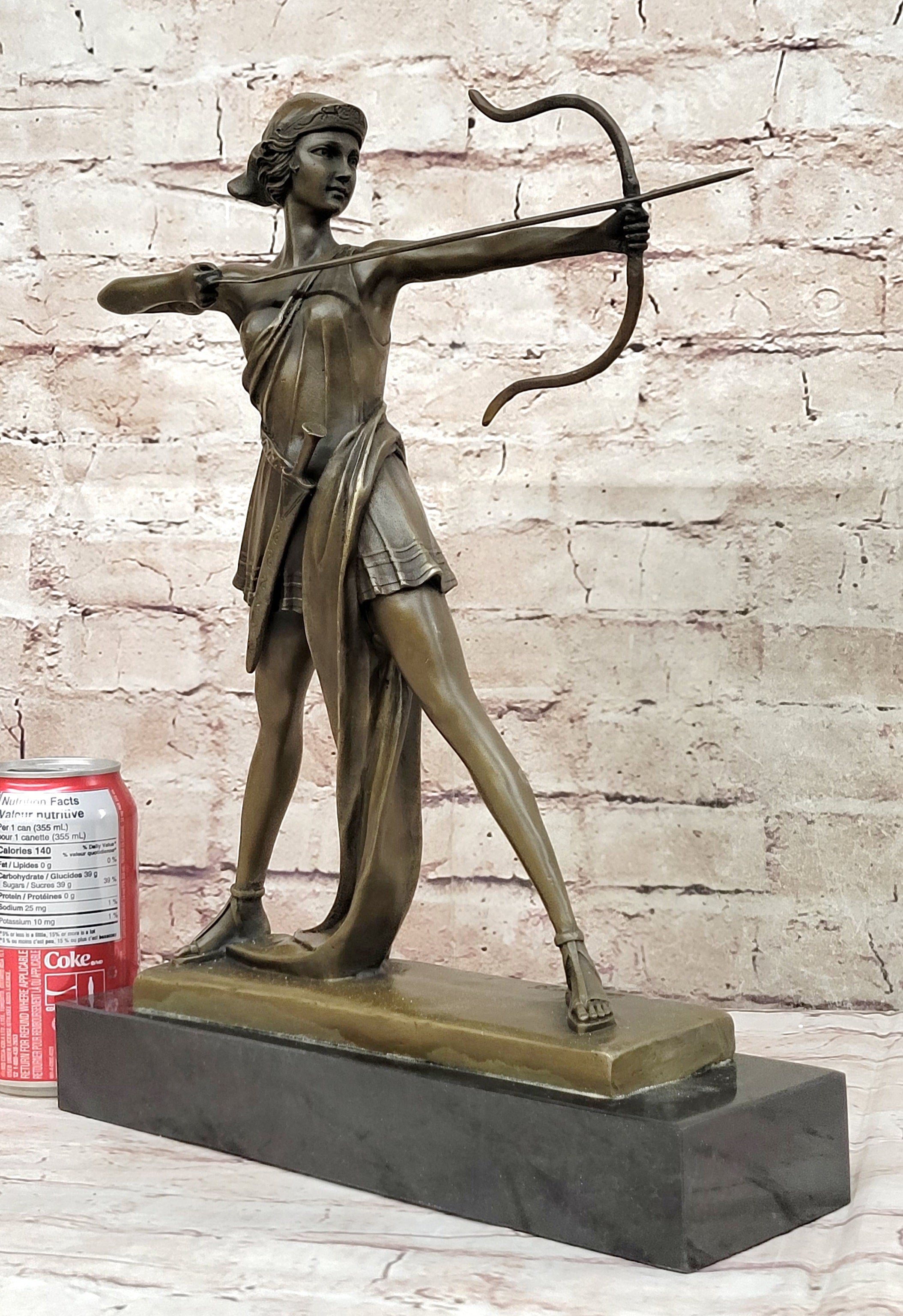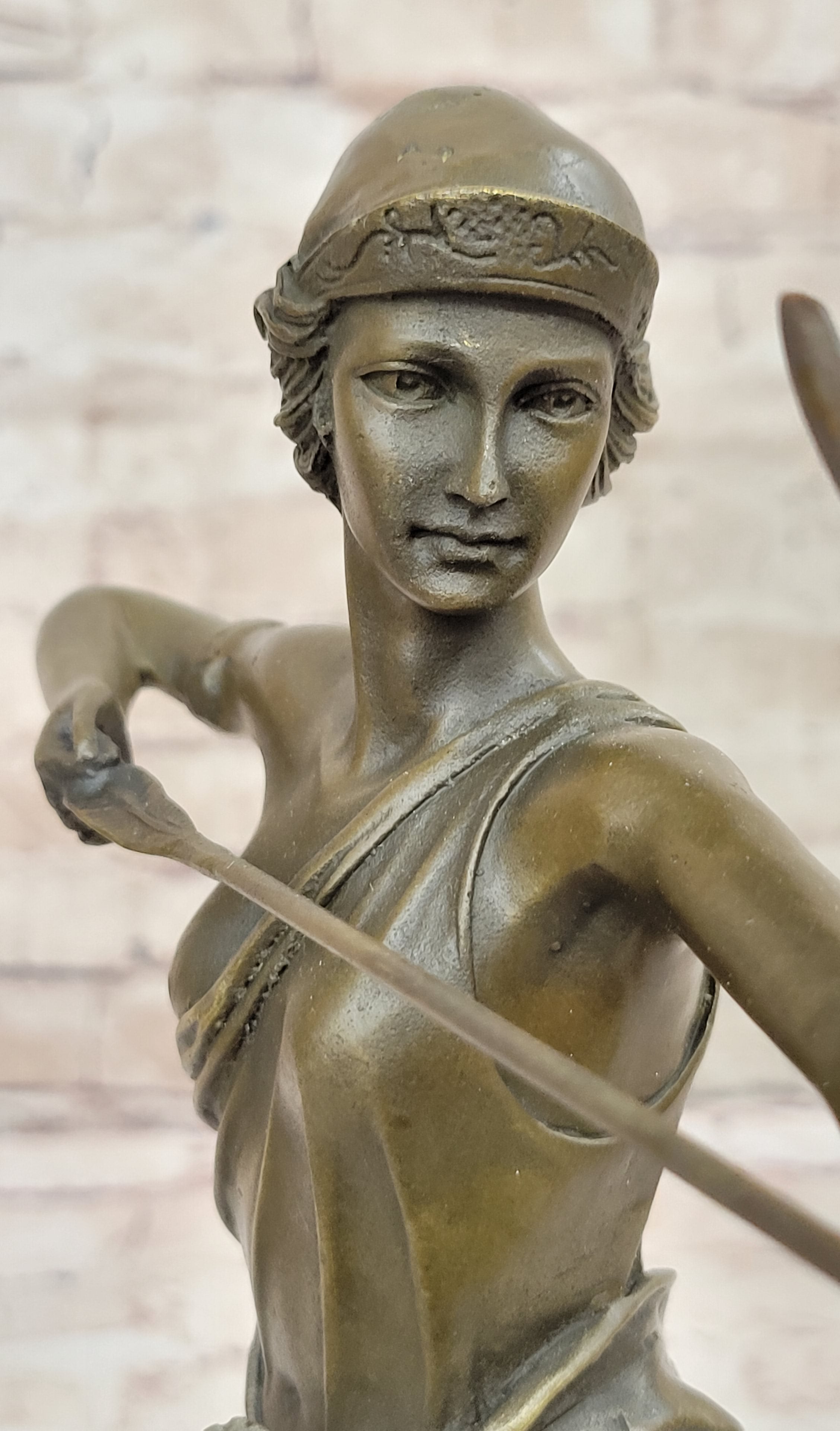 Signed Original Goddess of Hunt Diana The Huntress Bronze Sculpture Statue Art