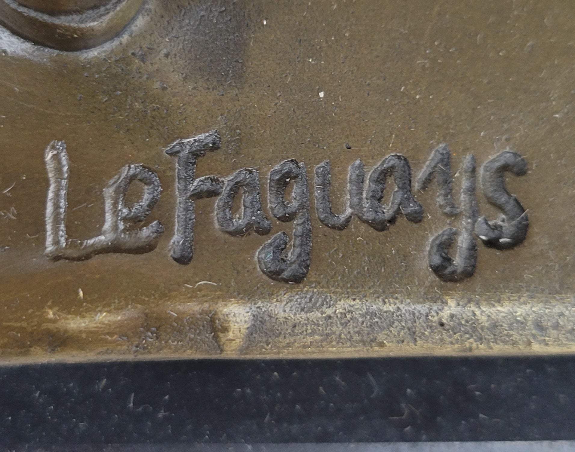 Crafted with meticulous detail, this 100% handmade bronze sculpture features a brown patina and was cast using the traditional "Lost Wax Method." The sculpture is mounted on a black marble base, enhancing its aesthetic appeal and providing stability. The artist, Le Faguays, has captured the essence of Diana's power and grace, creating a timeless piece that celebrates the goddess and her significance in mythology. This sculpture serves as a captivating representation of a revered figure, resonating with those who appreciate mythology, art, and the symbolism of strength and femininity.