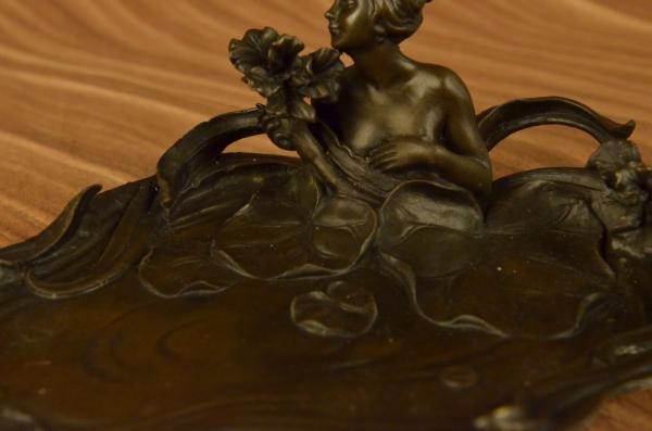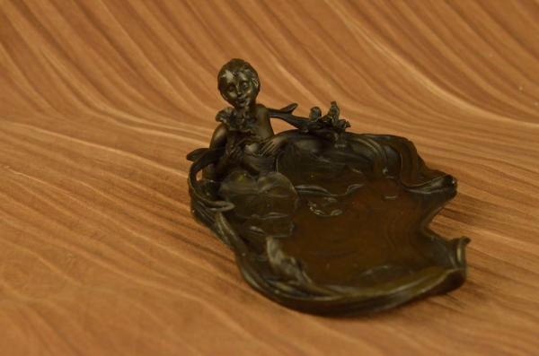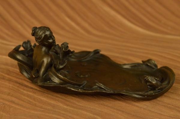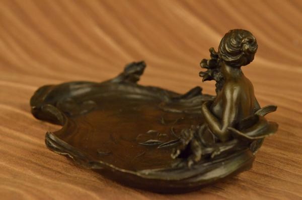 Signed Original Hand Crafted Jewelry Tray Bronze Sculpture Statue Figurine Decor