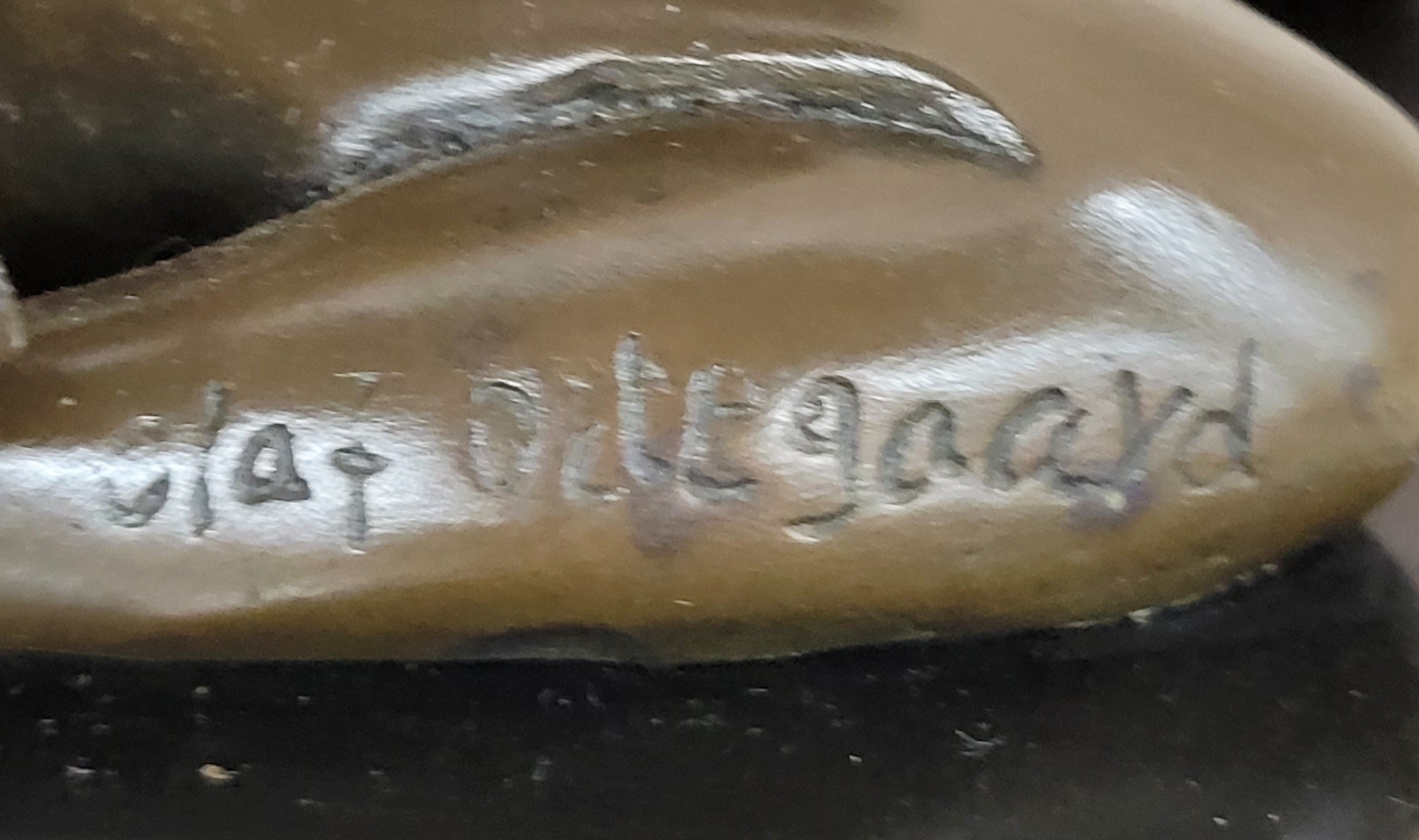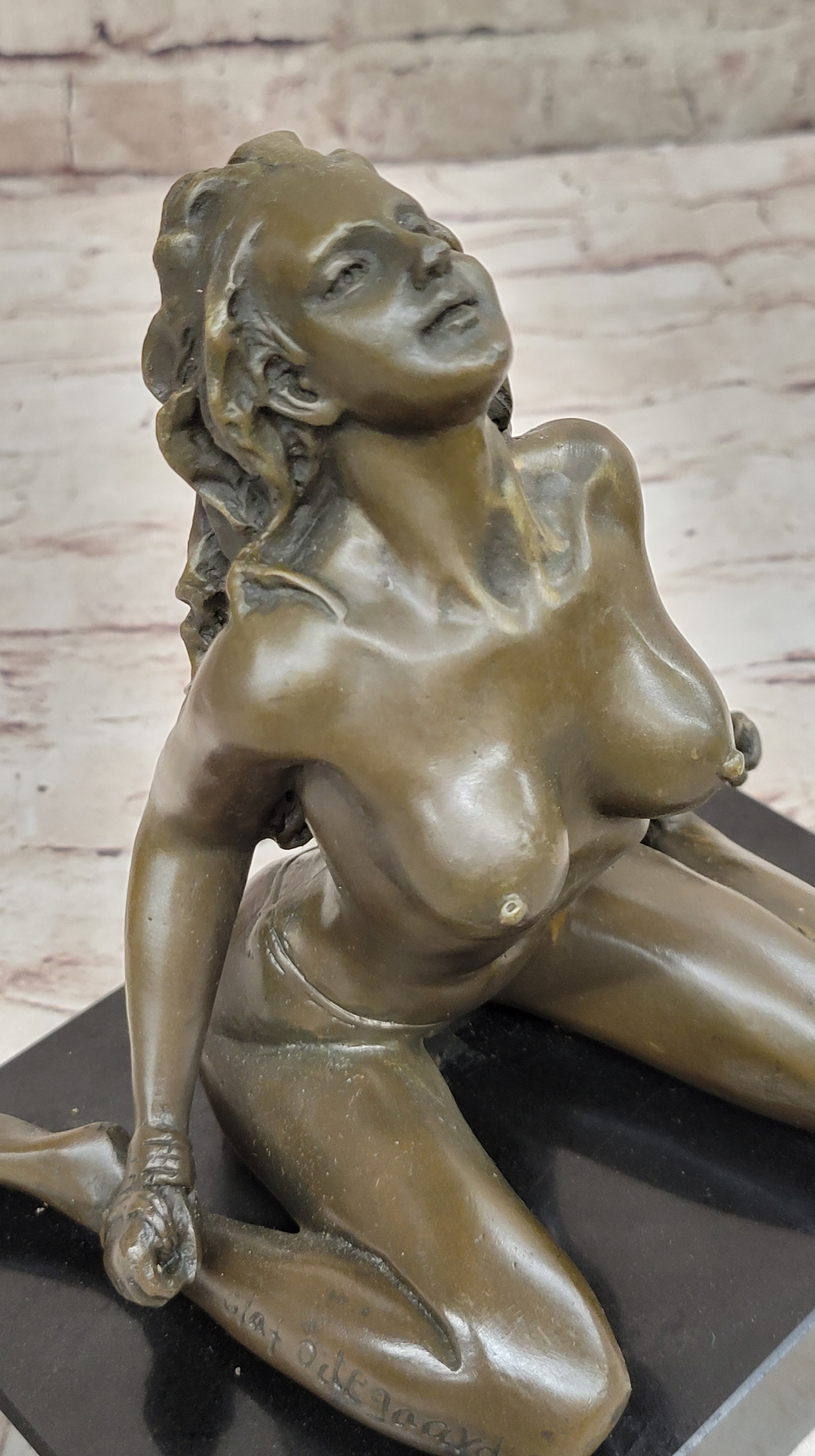 Olaf Odegaard's "Signed Original Hot Cast Wicked Erotic Nude Girl" is an artistic statement that celebrates the sensuality and aesthetics of the female body, inviting admirers to explore the complexities of human form and desire. This sculpture is not only a testament to the artist's skill but also a bold addition to any collection, where it will undoubtedly become a centerpiece of discussion and appreciation.Bronze Dimensions with Marble Base: Height 9" X Width 7"