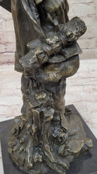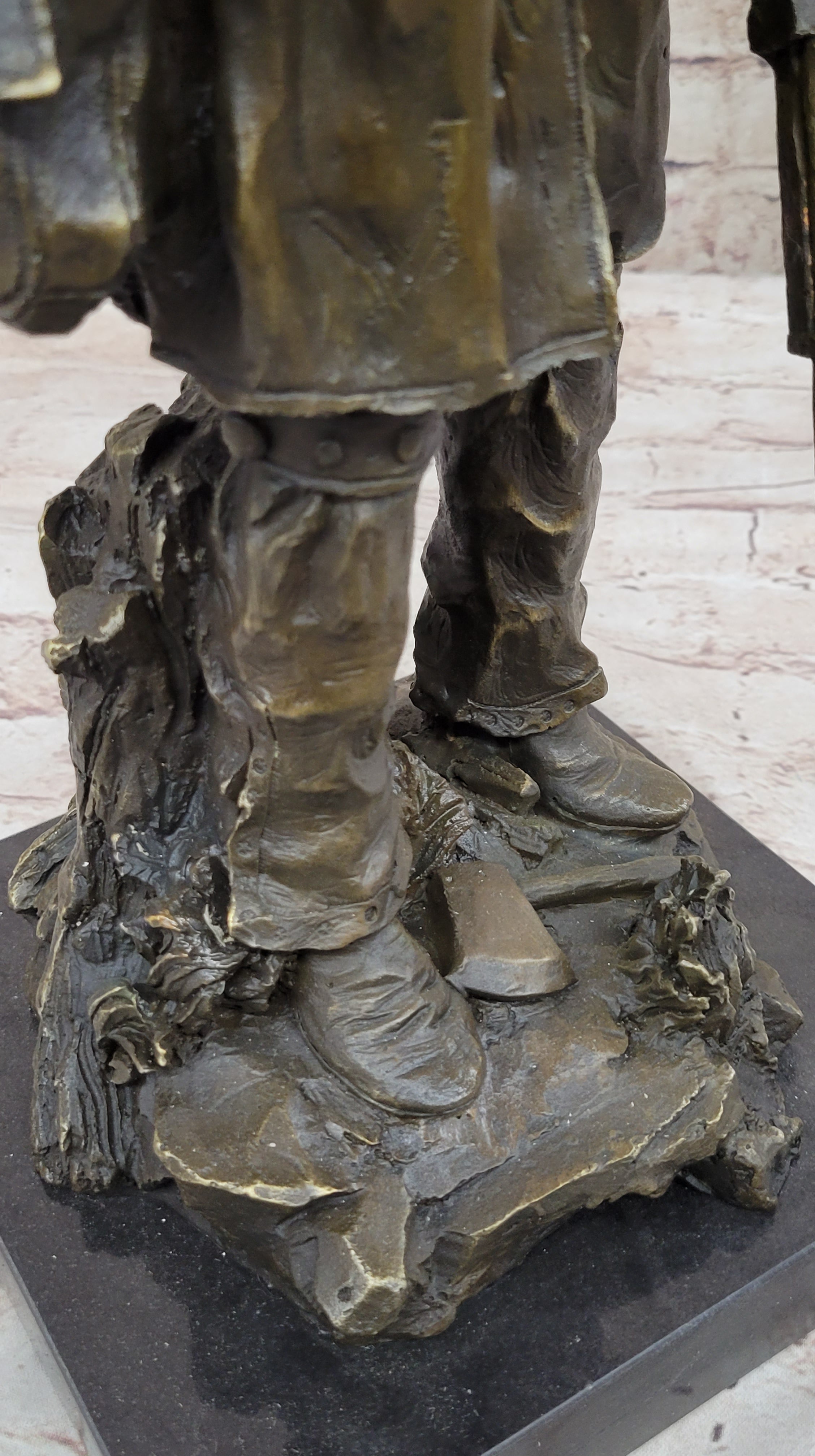 With a rich brown patina, every detail of this sculpture exudes a sense of authenticity and power. His pants, contrasting in black, further accentuate the striking presence of this bronze figure. Meticulously crafted by hand, this sculpture is a testament to the mastery of the "Lost Wax Method," ensuring the utmost quality and precision. Mounted on a sturdy marble base, it stands as a symbol of strength and resilience.
