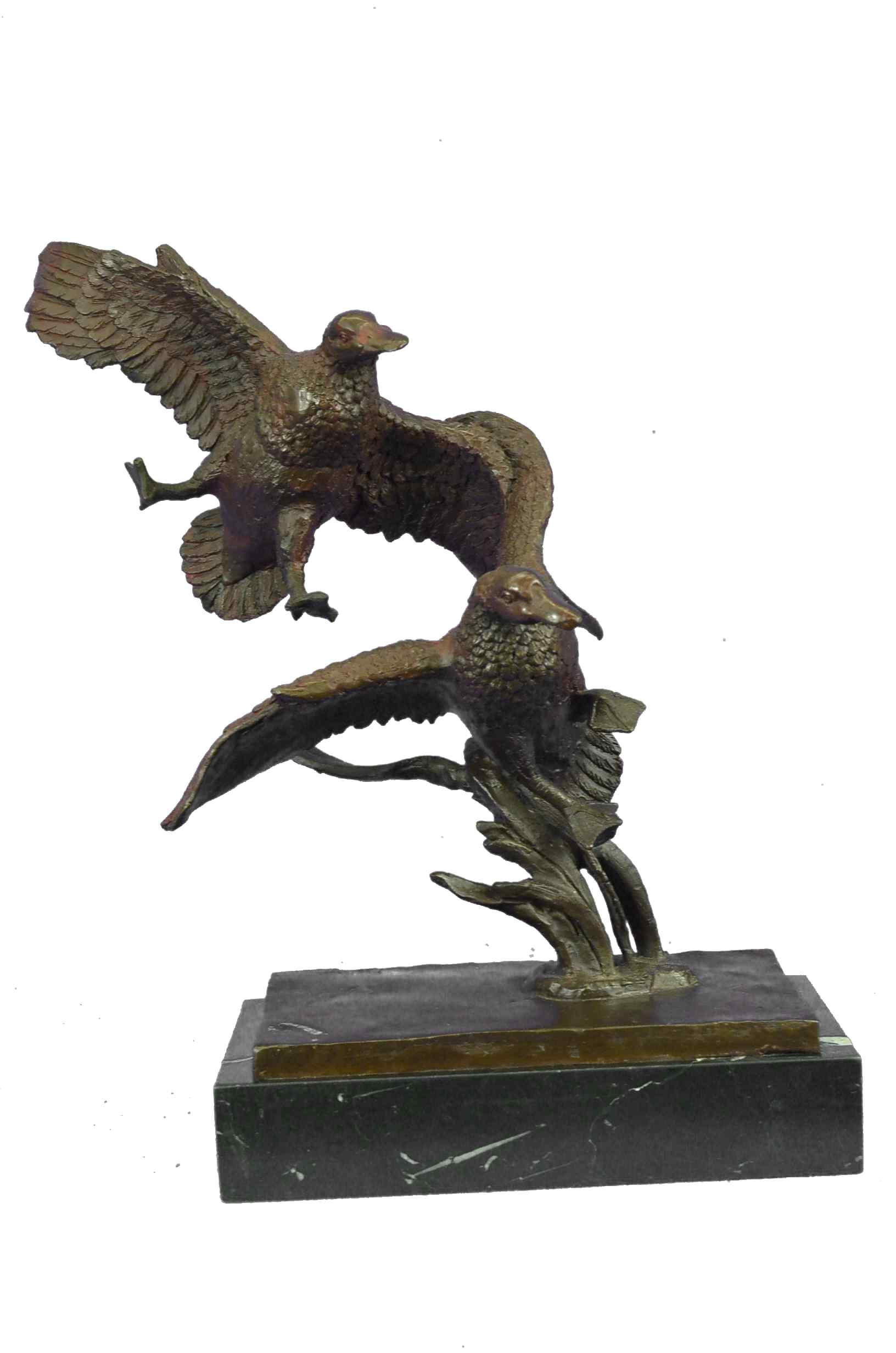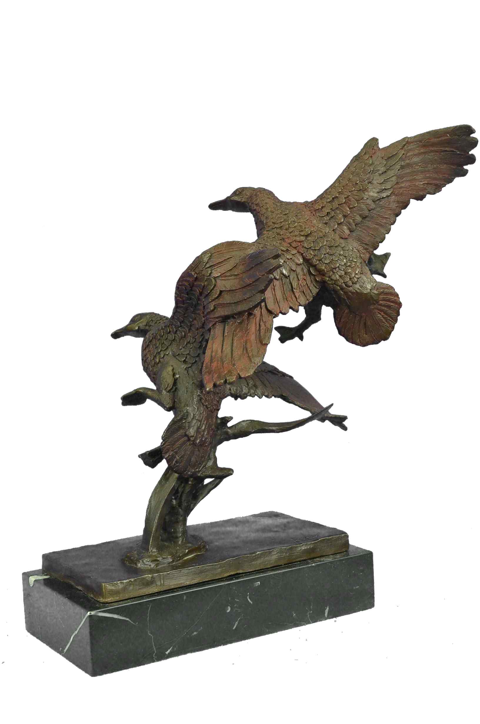Signed Original Marsh Land Duck Bronze Sculpture Statue Marble Base Figurine Art