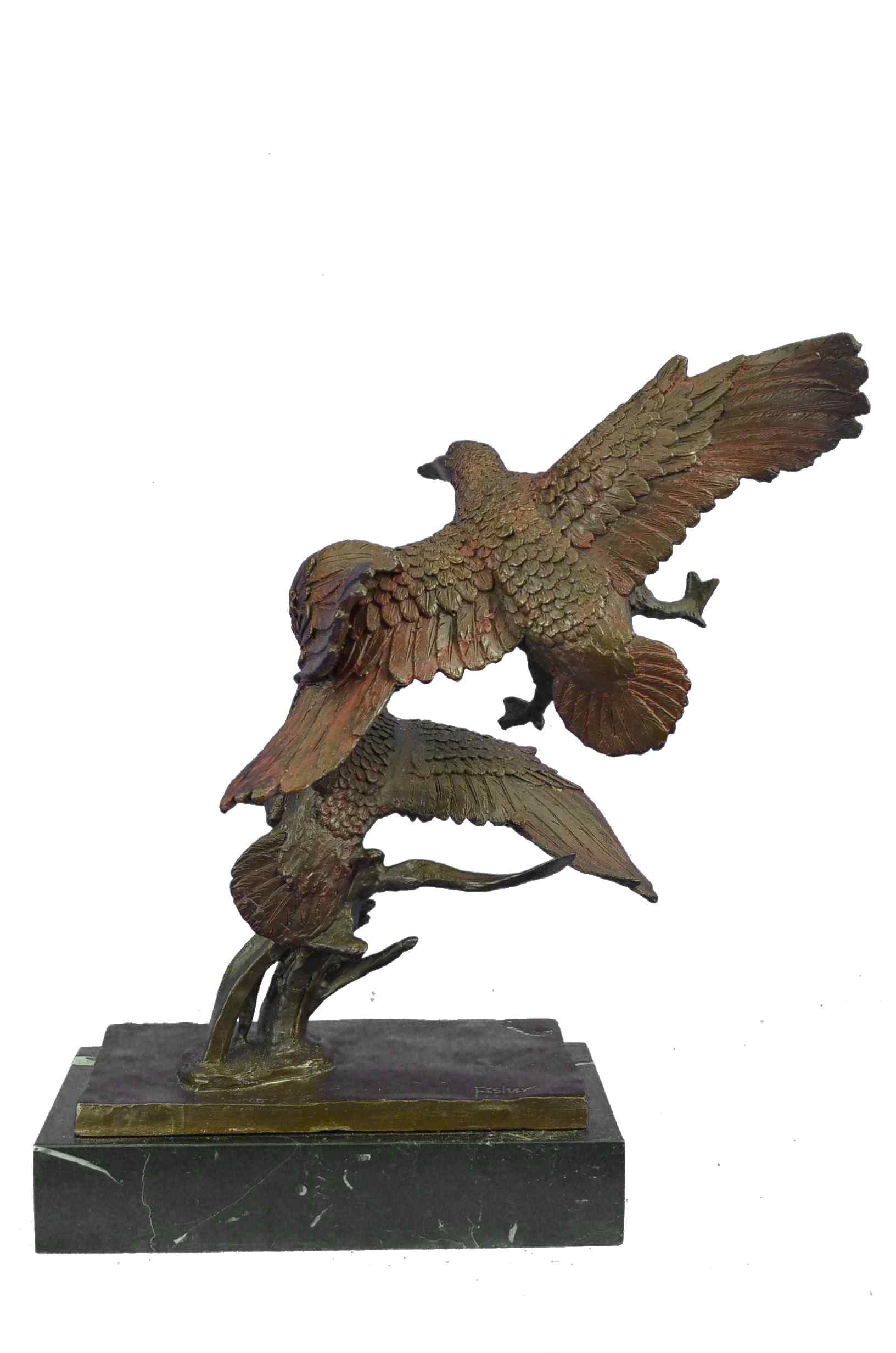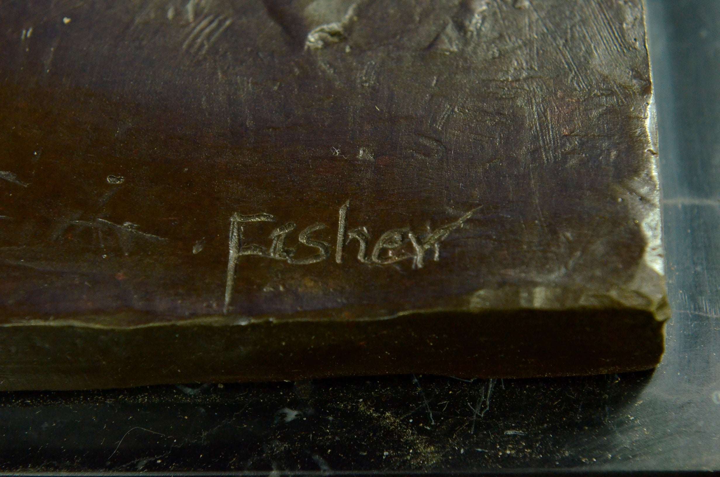 The Ducks beauty and their spectacular mating dances have made them highly symbolic birds in many cultures. Most have elaborate and noisy courting displays or "dances". According to folklore, cranes mate for life and even those who do not, still stay mated to one partner for several decades. This everlasting bond is depicted in this sculpture of two Ducks spending a relaxing day in the marsh near an open stream. They stand side by side. One grazes, while the other looks out at their surroundings. It is a great gift for nature lovers, fisherman, hunters and country dwellers. It may even be a sweet gesture to a lovely devoted couple on their golden anniversary. 100% bronze and handmade, this brown patina sculpture was cast using the "Lost Wax Method" and mounted on a black marble base. It features the signature Fisher.Original or Reproduction: Reproduction
