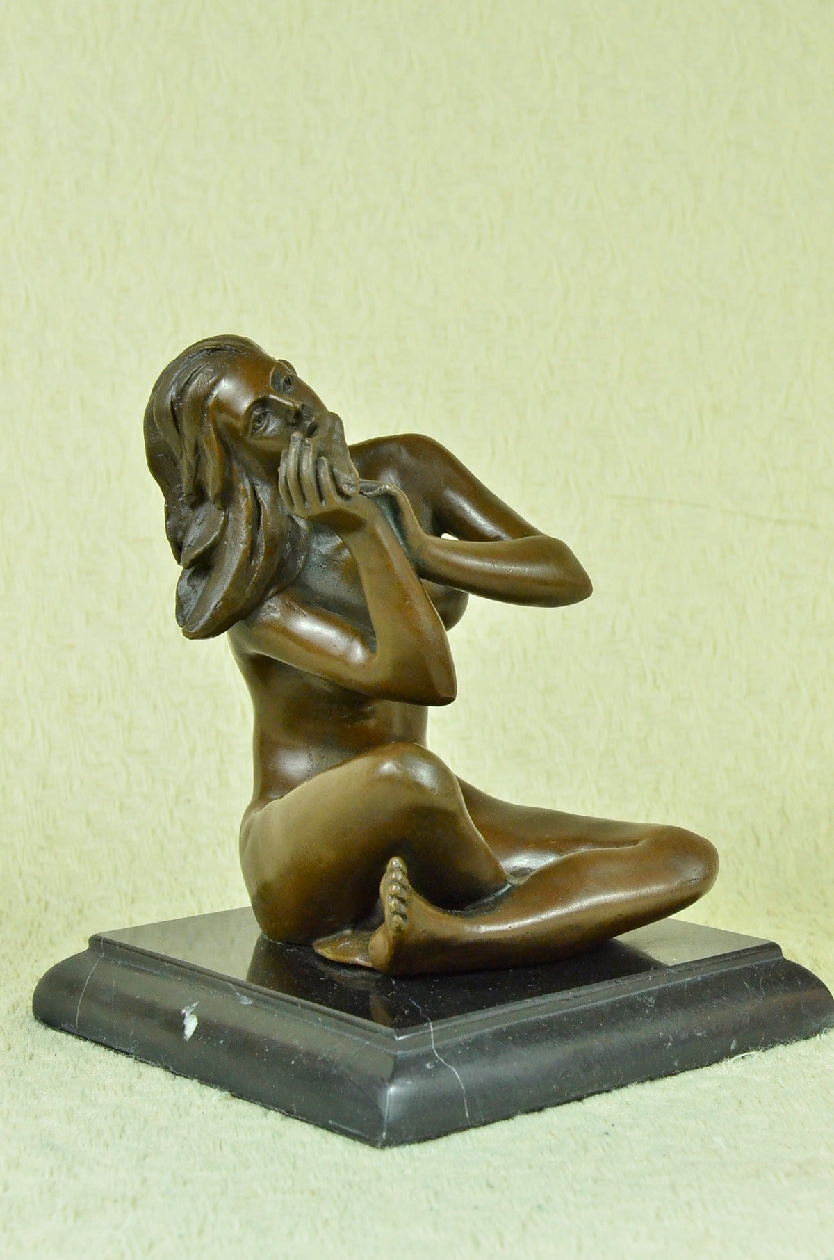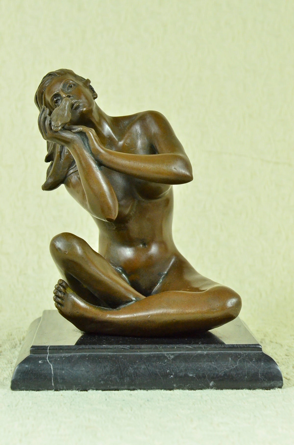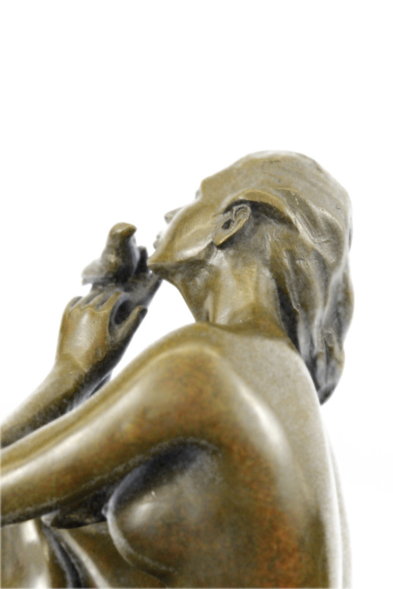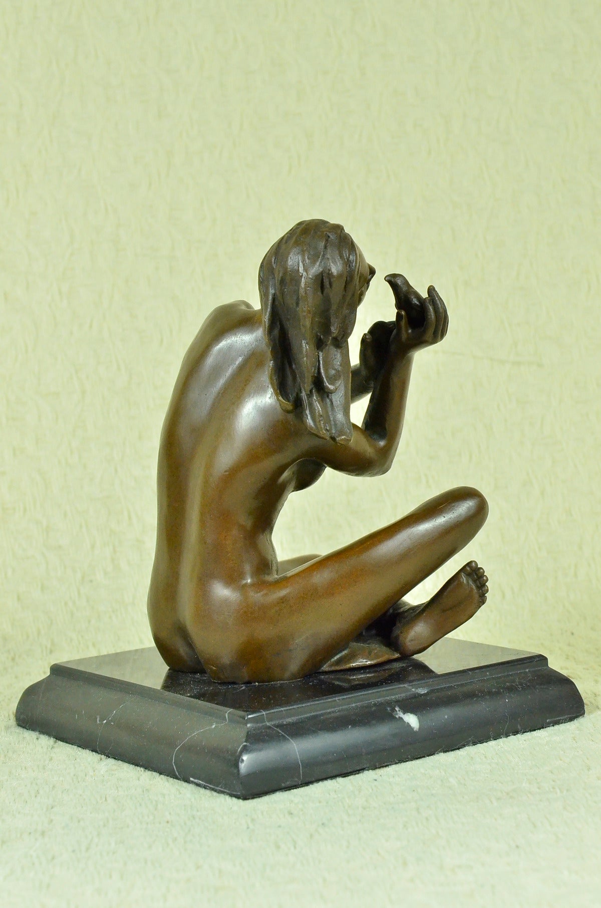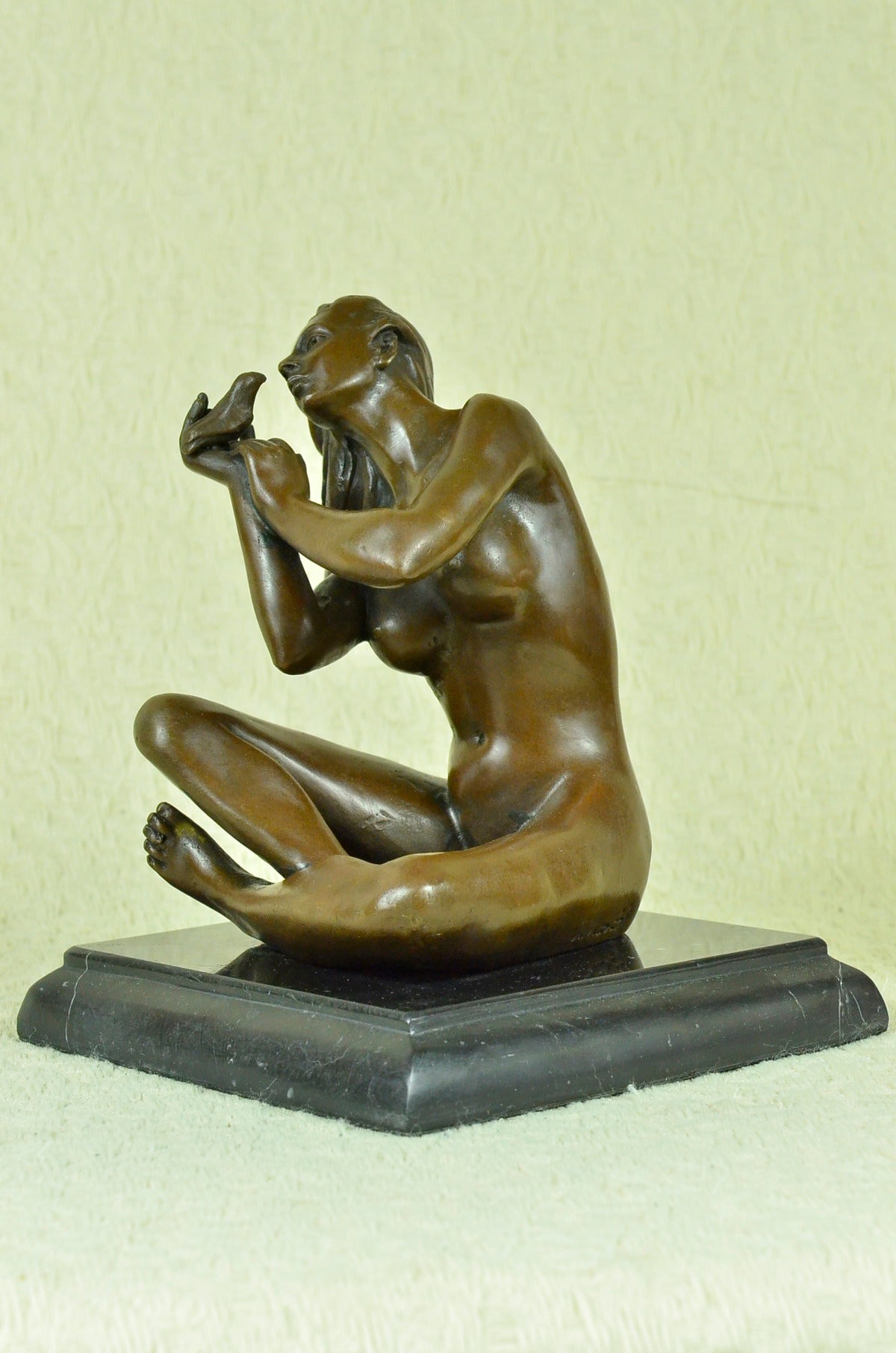 Signed Original Mavchi Nude Female Holding A Love Bird Bronze Sculpture Figurine