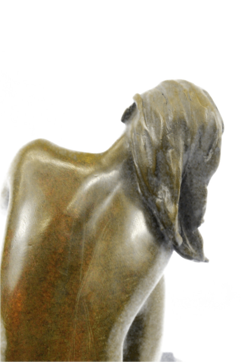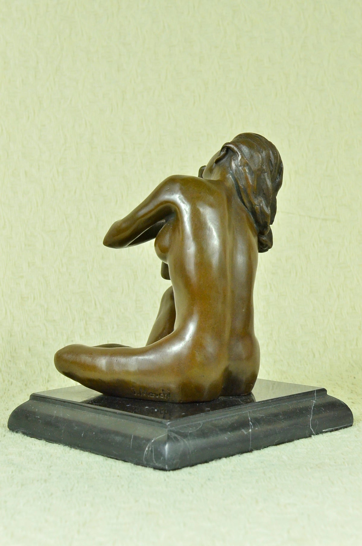 Superb real bronze nude signed Mavchi depicts a beautiful lady tenderly holding her bird. She`s beautifully sculptured from all angles of view. The detail and composition are excellent. She actually looks alive. The bronze is inscribed Mavchi and is mounted on its original marble pedestal base. The bronze is in excellent condition.Original or Reproduction: Original