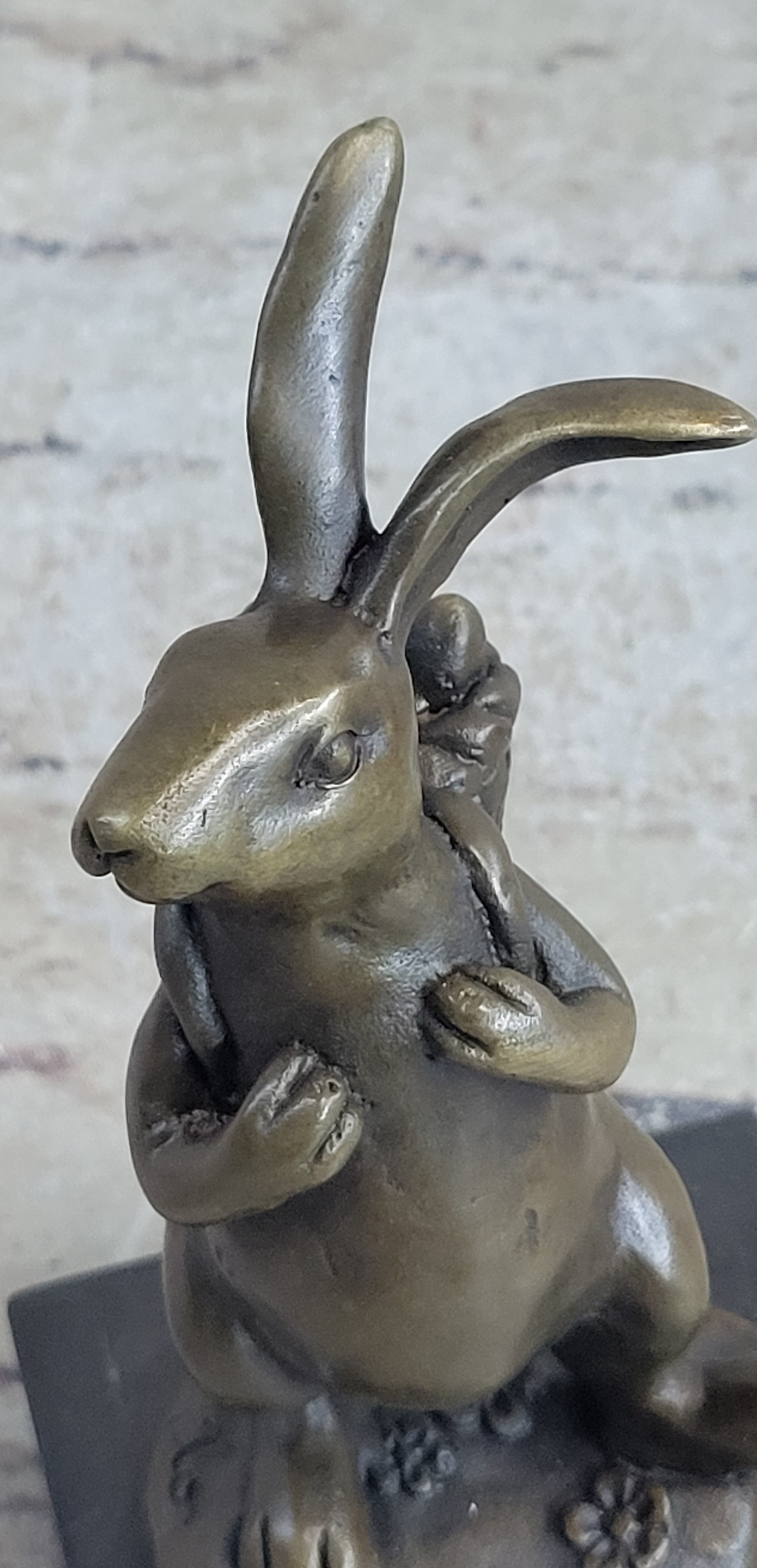 Signed Original Milo Bunny W. Basket of Flower Bronze Art Decor Sculpture Figure