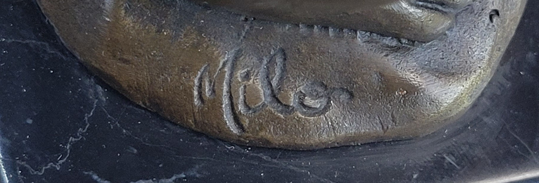 This sculpture serves as a perfect gift, particularly suited for springtime and Easter festivities. It embodies the spirit of the season, making it an ideal present for your loved ones. Crafted using the esteemed "Lost Wax Method," this artwork showcases meticulous craftsmanship. It boasts a captivating two-tone brown patina, enhancing its visual appeal. Mounted on a sleek black marble base, meticulously custom-cast by European Bronze Finery, this sculpture is an exquisite testament to its quality. To authenticate the artwork, it proudly bears the signature of the esteemed artist Milo.