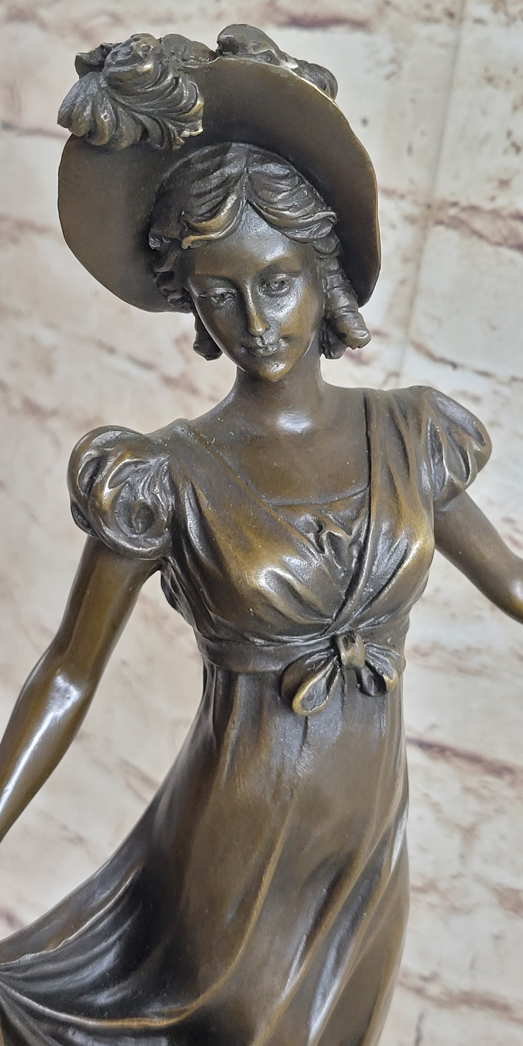 Little Bo Peep Bronze Statue Sculpture Female Figure in Hat 17" x 7"