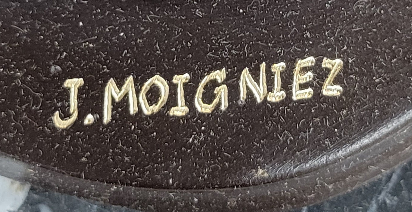 Signed by the renowned artist J. Moigniez, this sculpture serves as a captivating reminder of the untamed beauty of the natural world.Bronze Dimensions with Marble Base: Height 9 1/2" X Width 16"