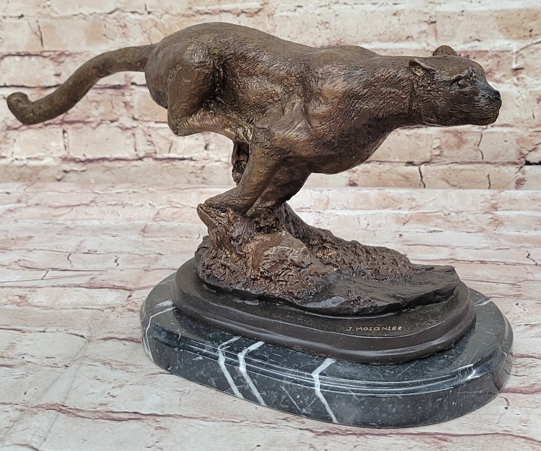 SIGNED STALKING PUMA PANTHER BRONZE SCULPTURE FIGURE STATUE ART FIGURINE MARBLE