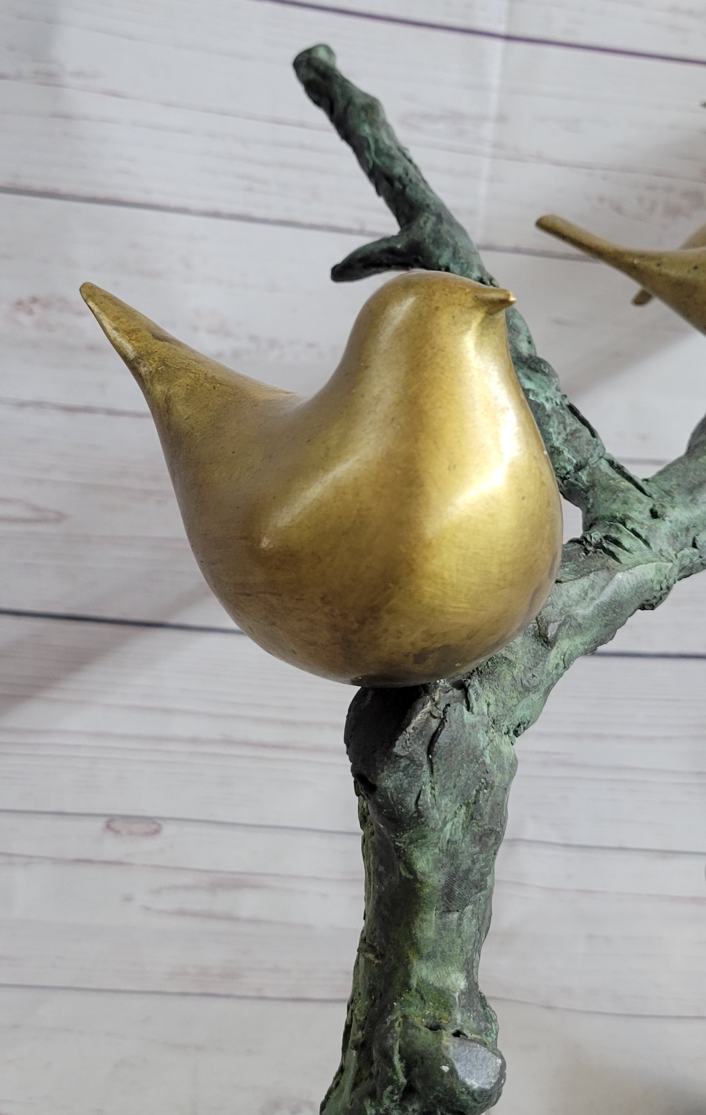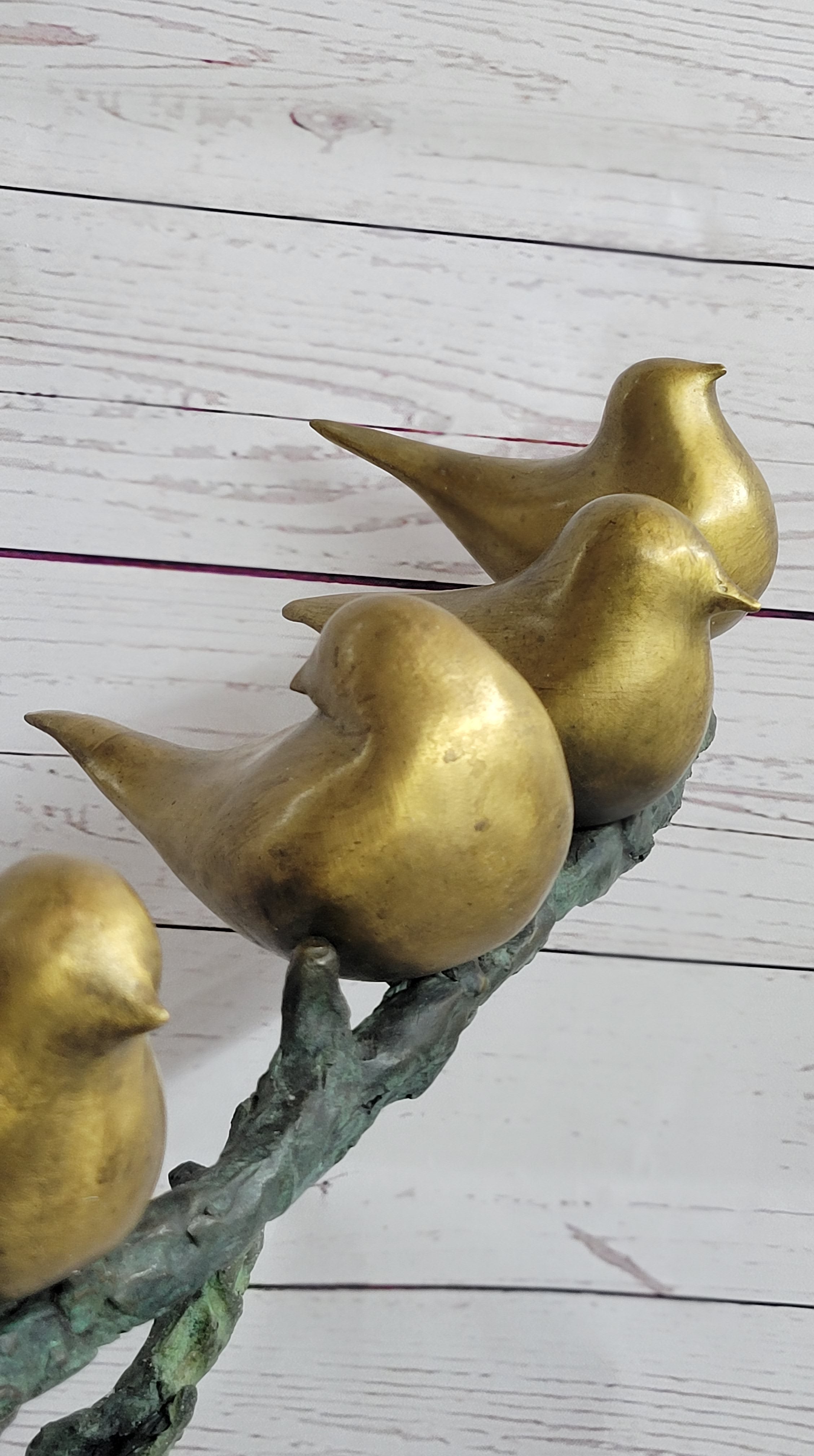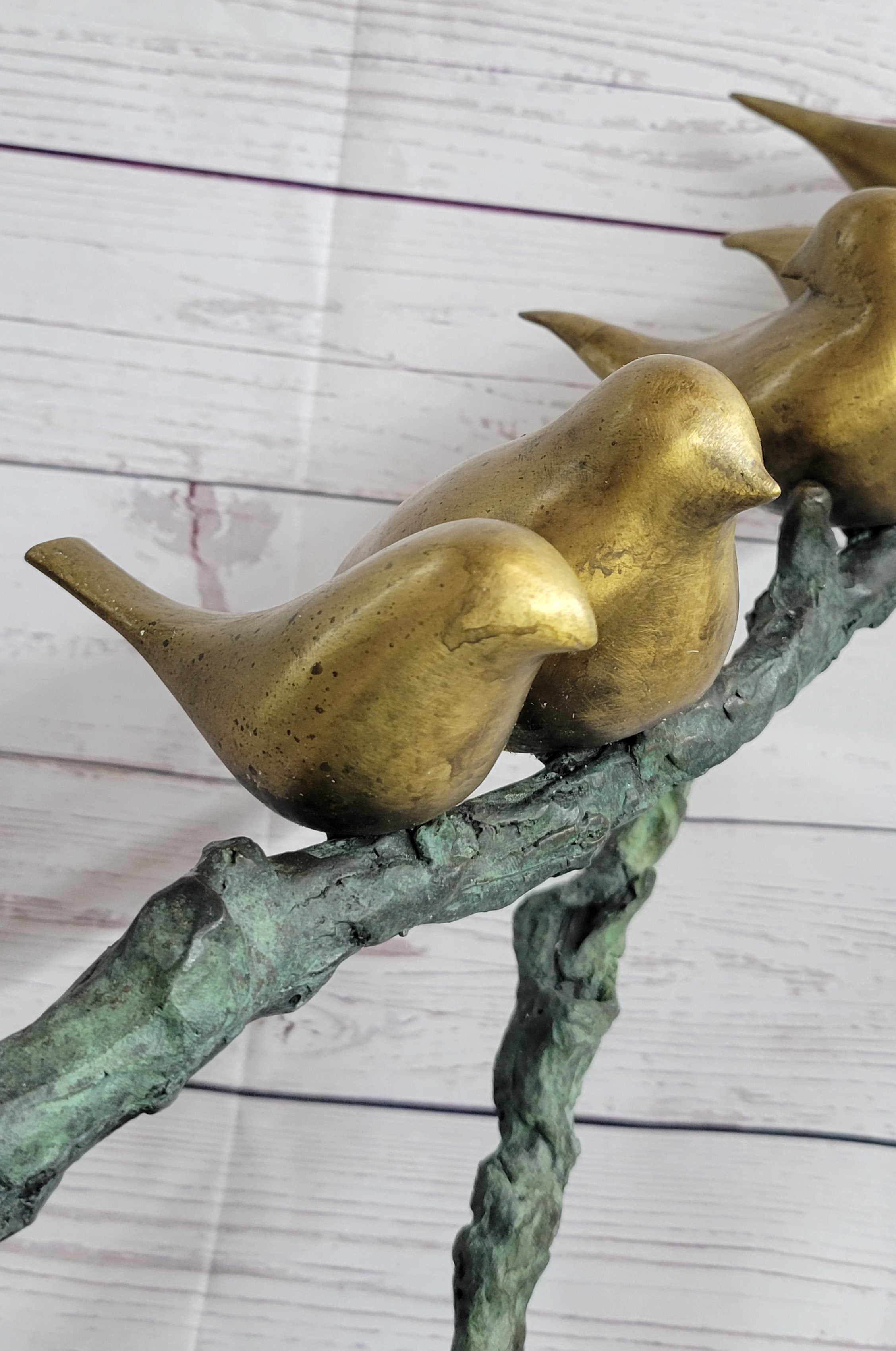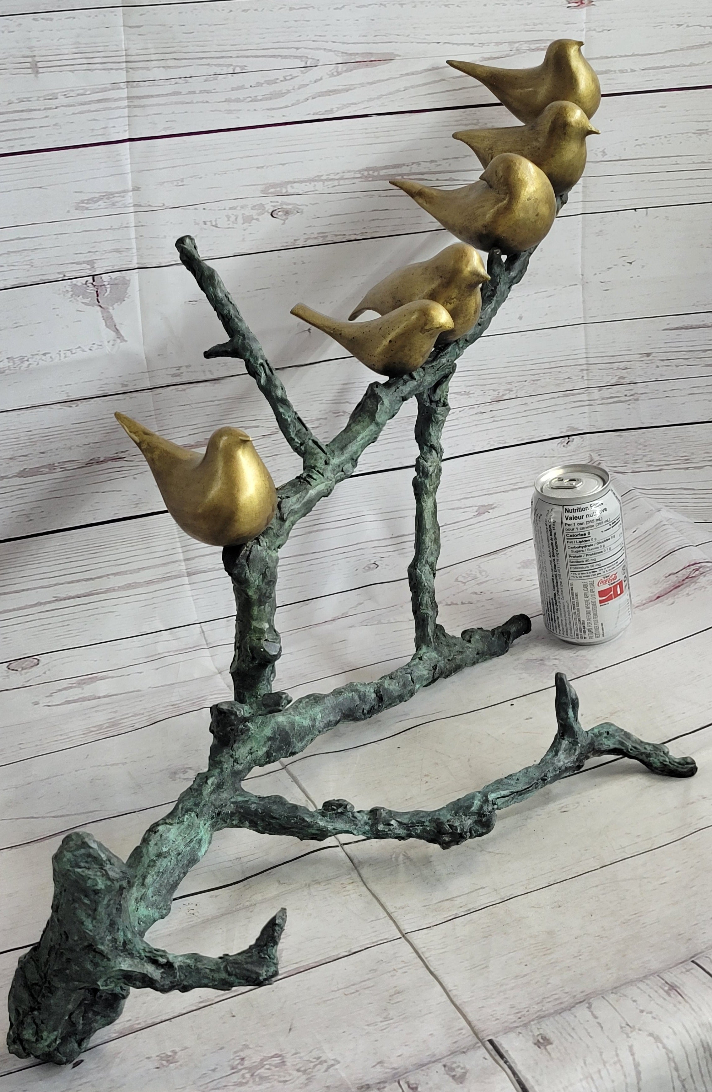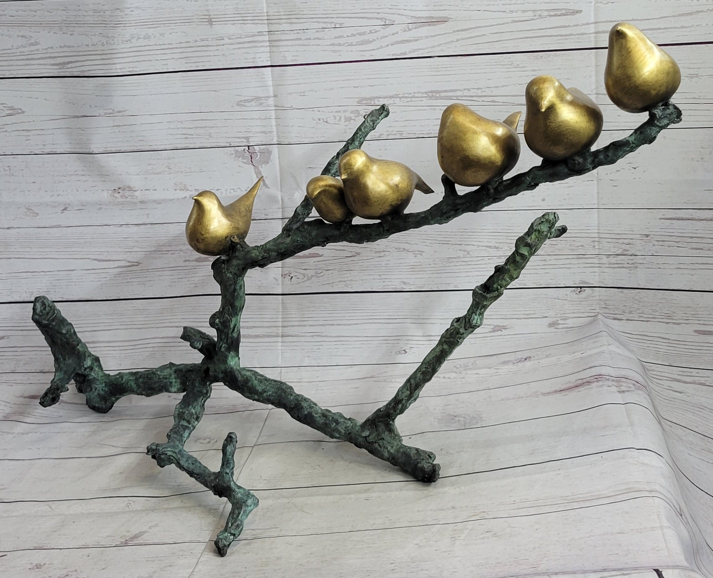 Six Birds on a Branch Bronze Metal Sculpture Contemporary Signed Art Decor 18" x 30"