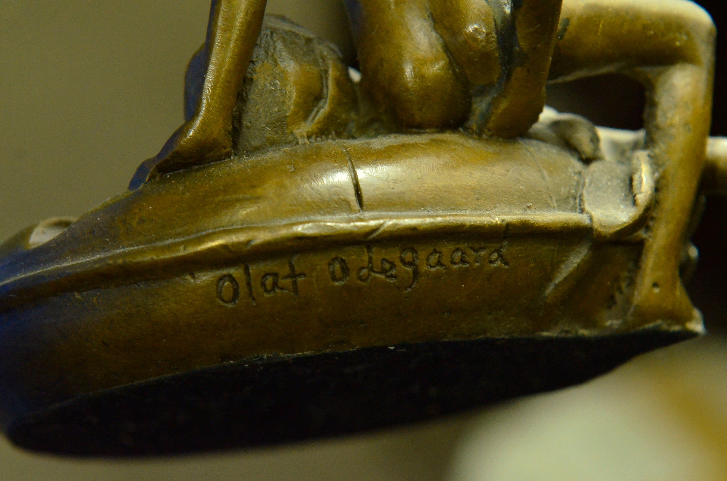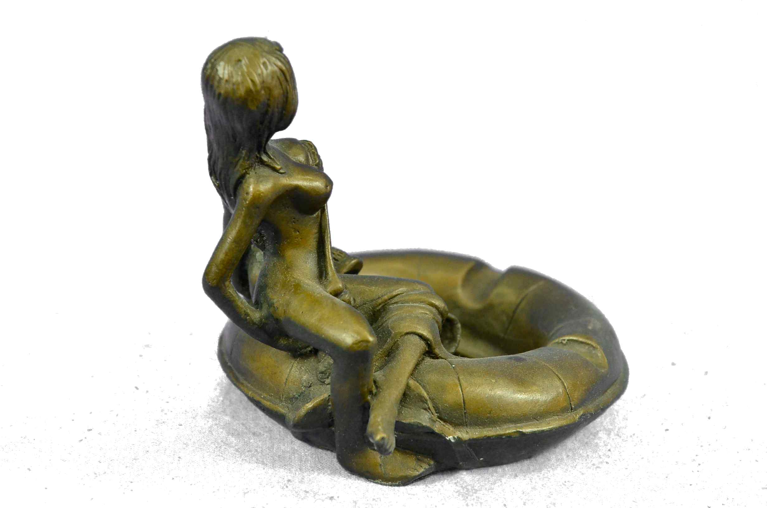 A hard to find collectible Hand crafted ashtray. This pin-up girl beauty will made a great addition to any ashtray collection. This Bronze Sculpture was casted using the “Lost Wax Method” and has a two tone brown patina. This sculpture is 100% bronze and is handmade. This sculpture is signed By artist Olaf Odegaard. The Art of Lost WaxOriginal or Reproduction: Original