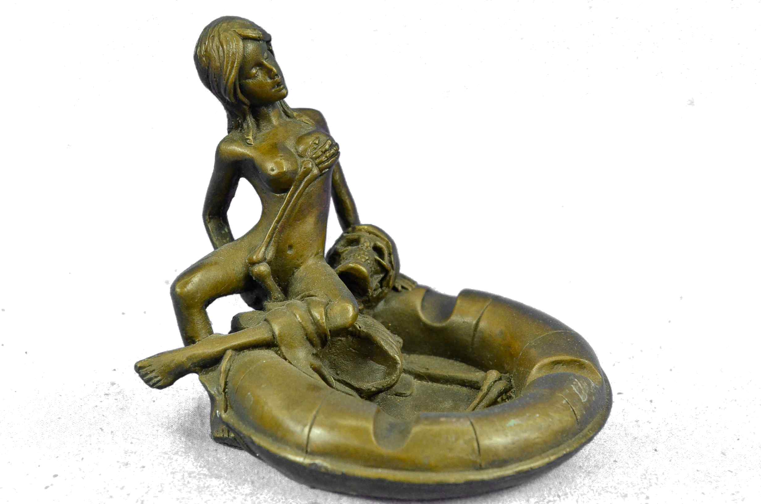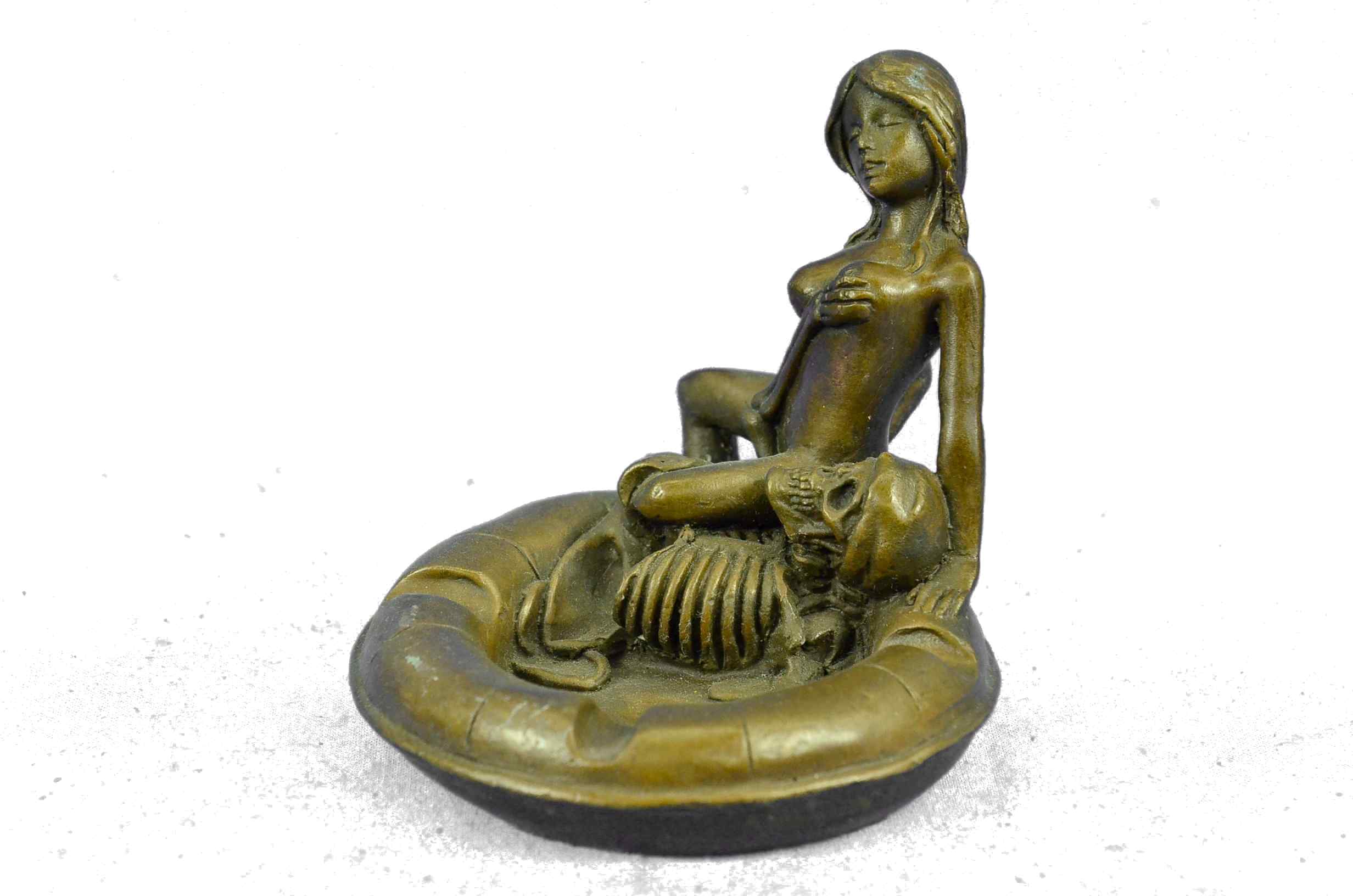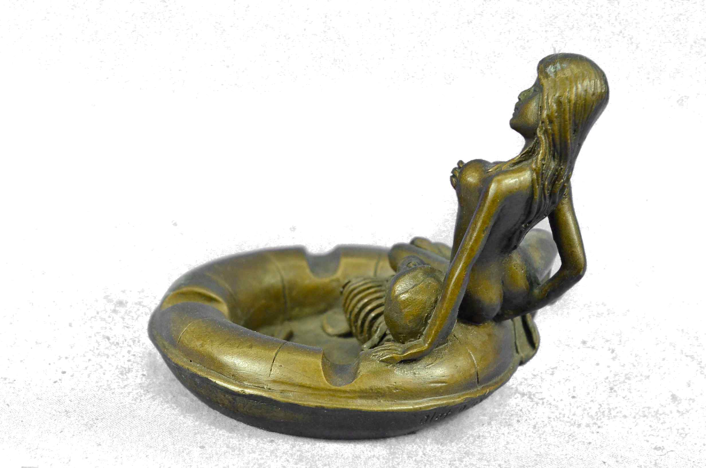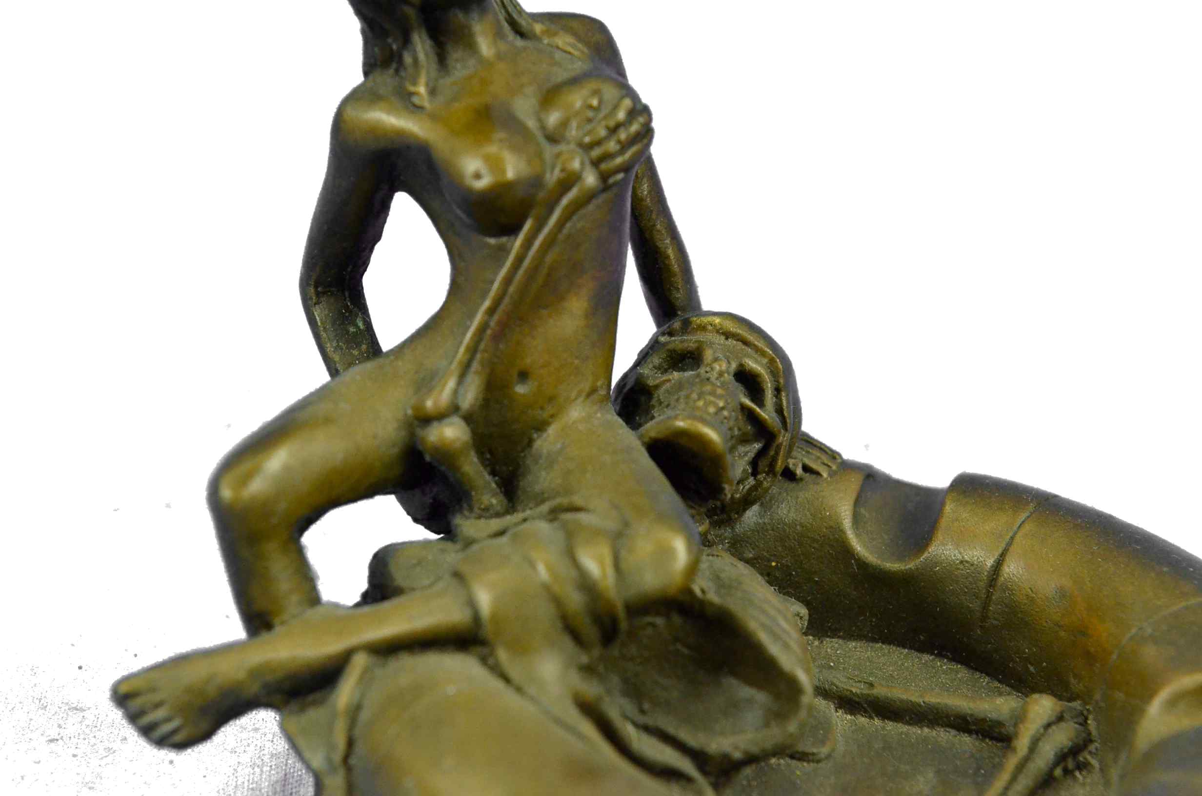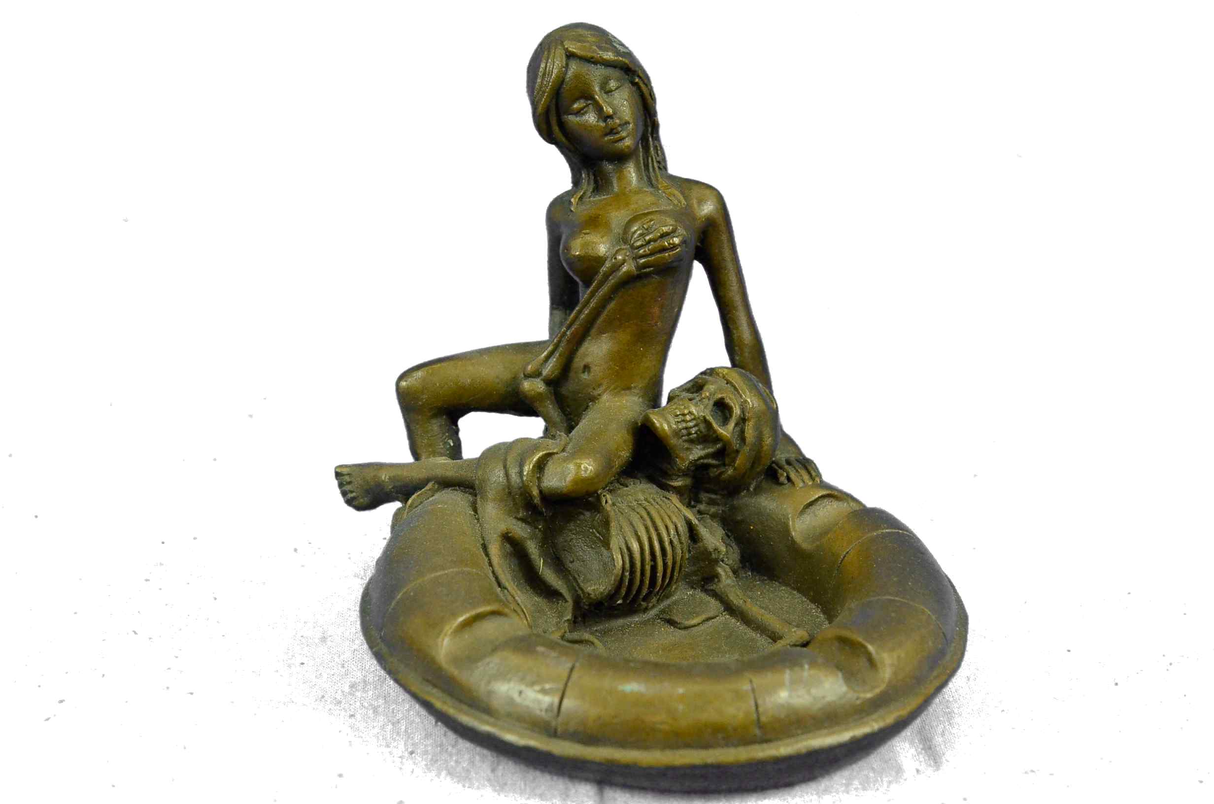 Skeleton Lurking at a nude Girl Bronze Ashtray Hot Cast Statue Sculpture Figure