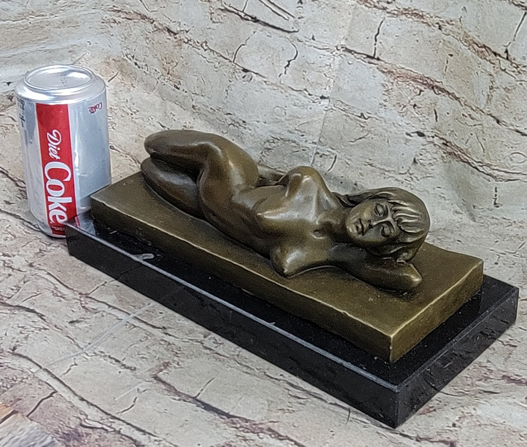 Sleeping Nude Girl Art Sculpture Bronze Statue Figure on Marble Base