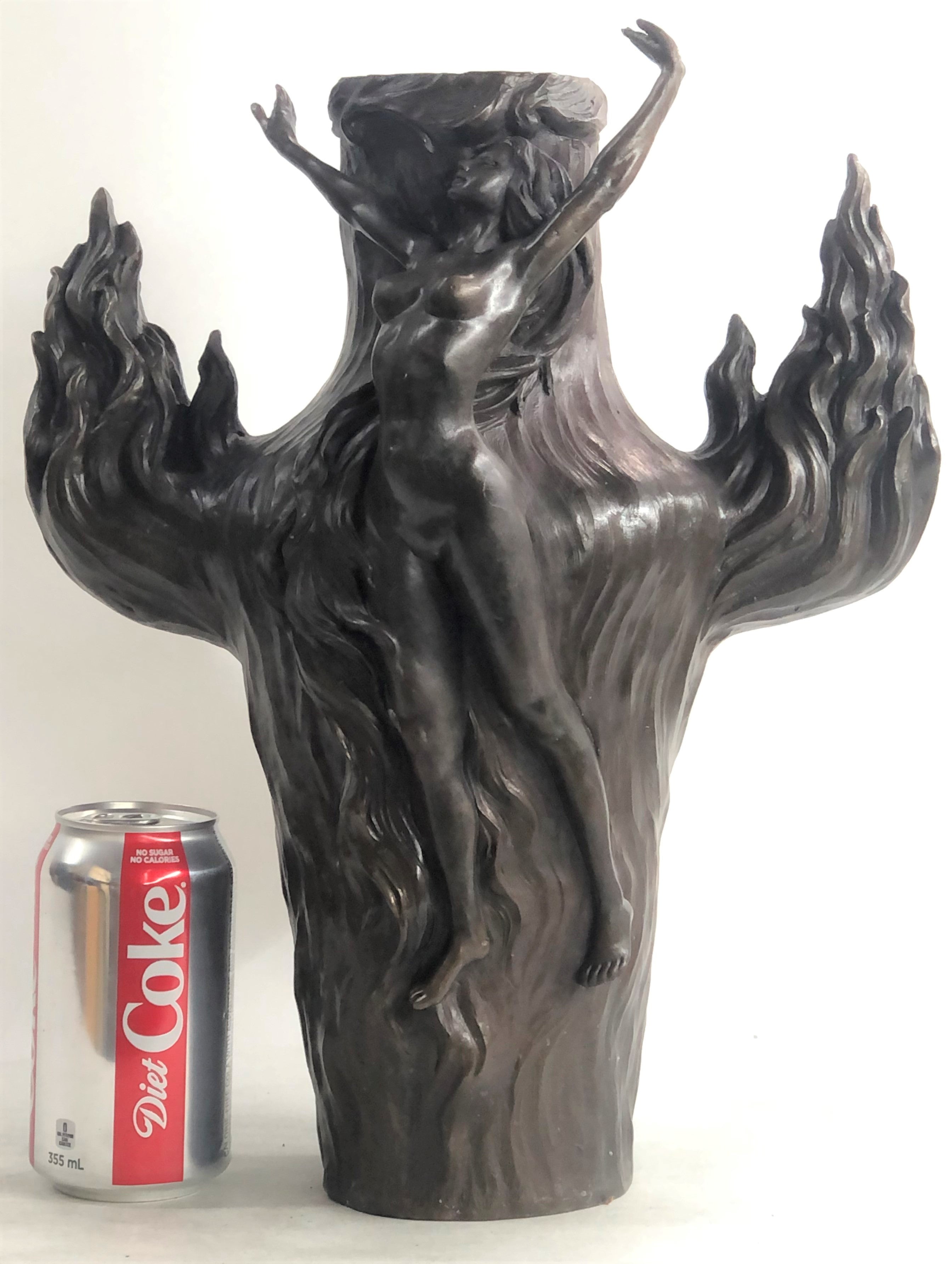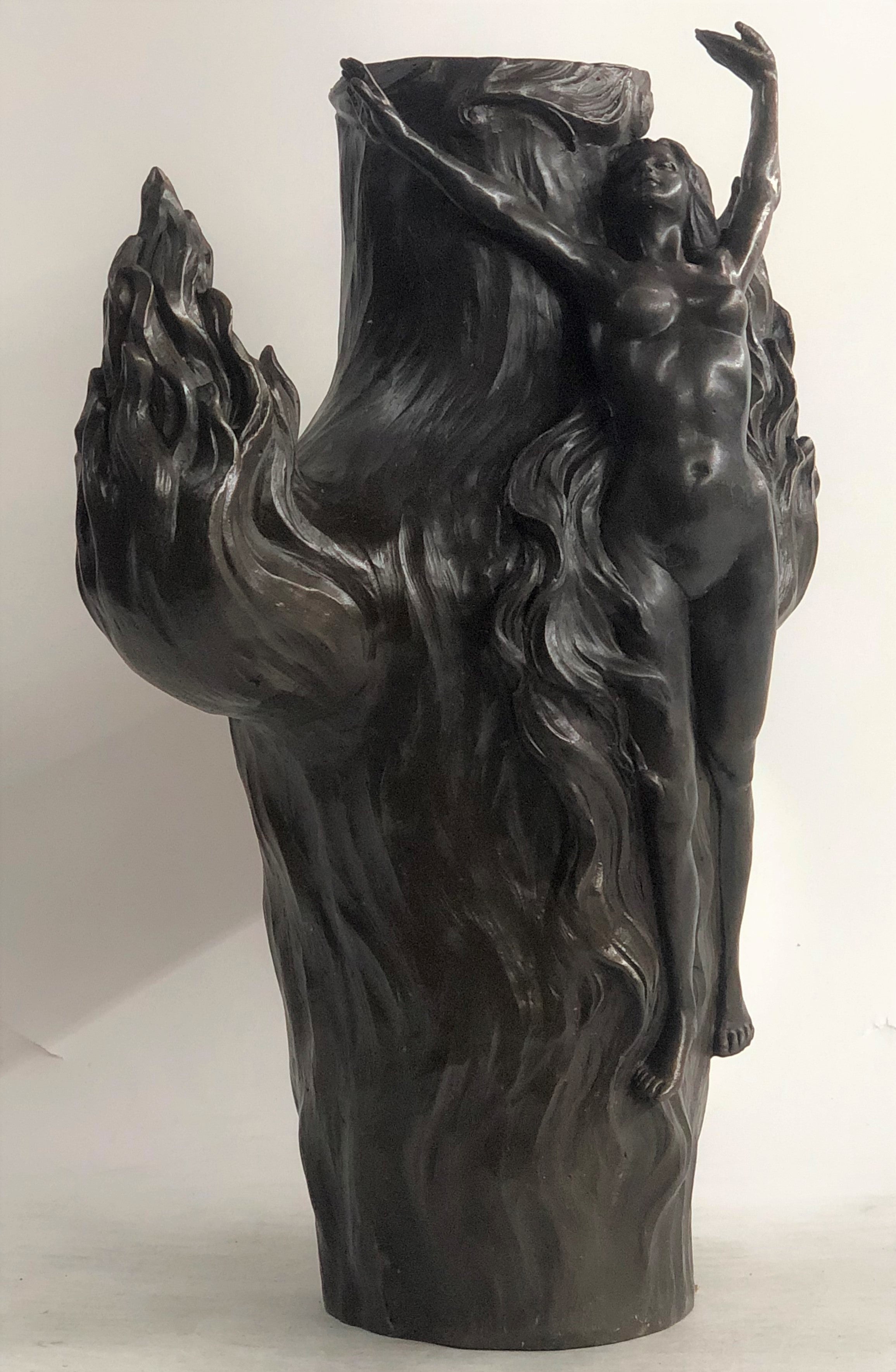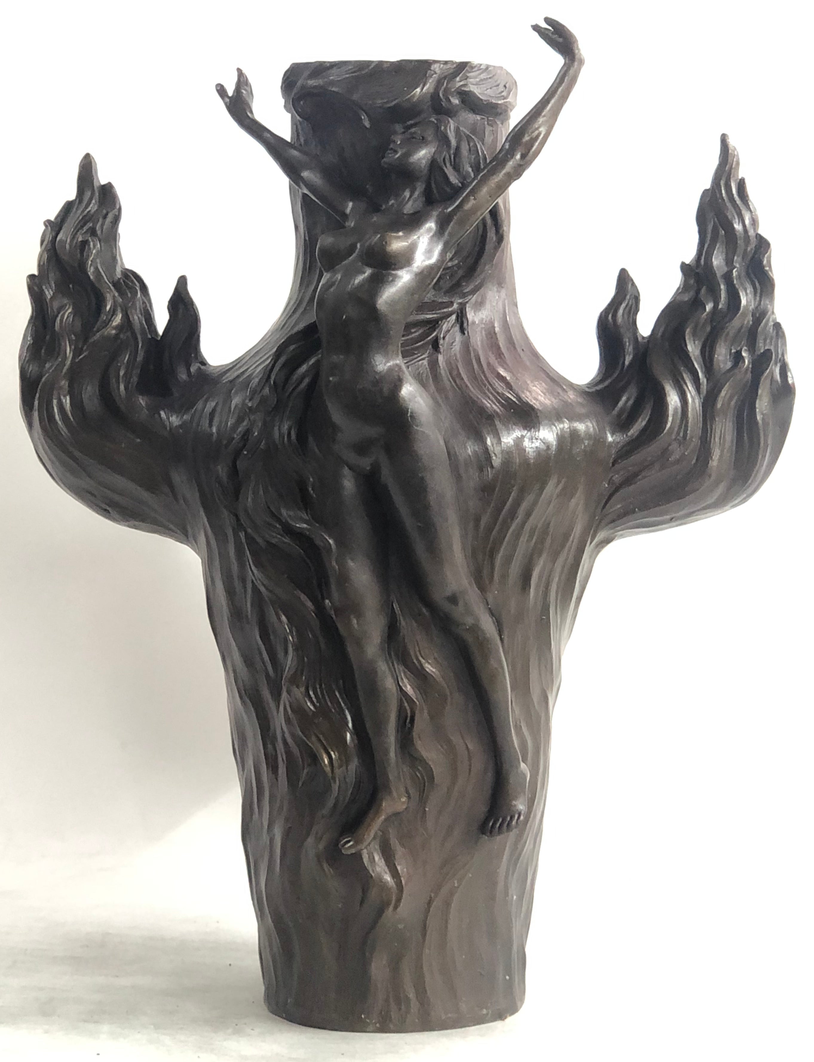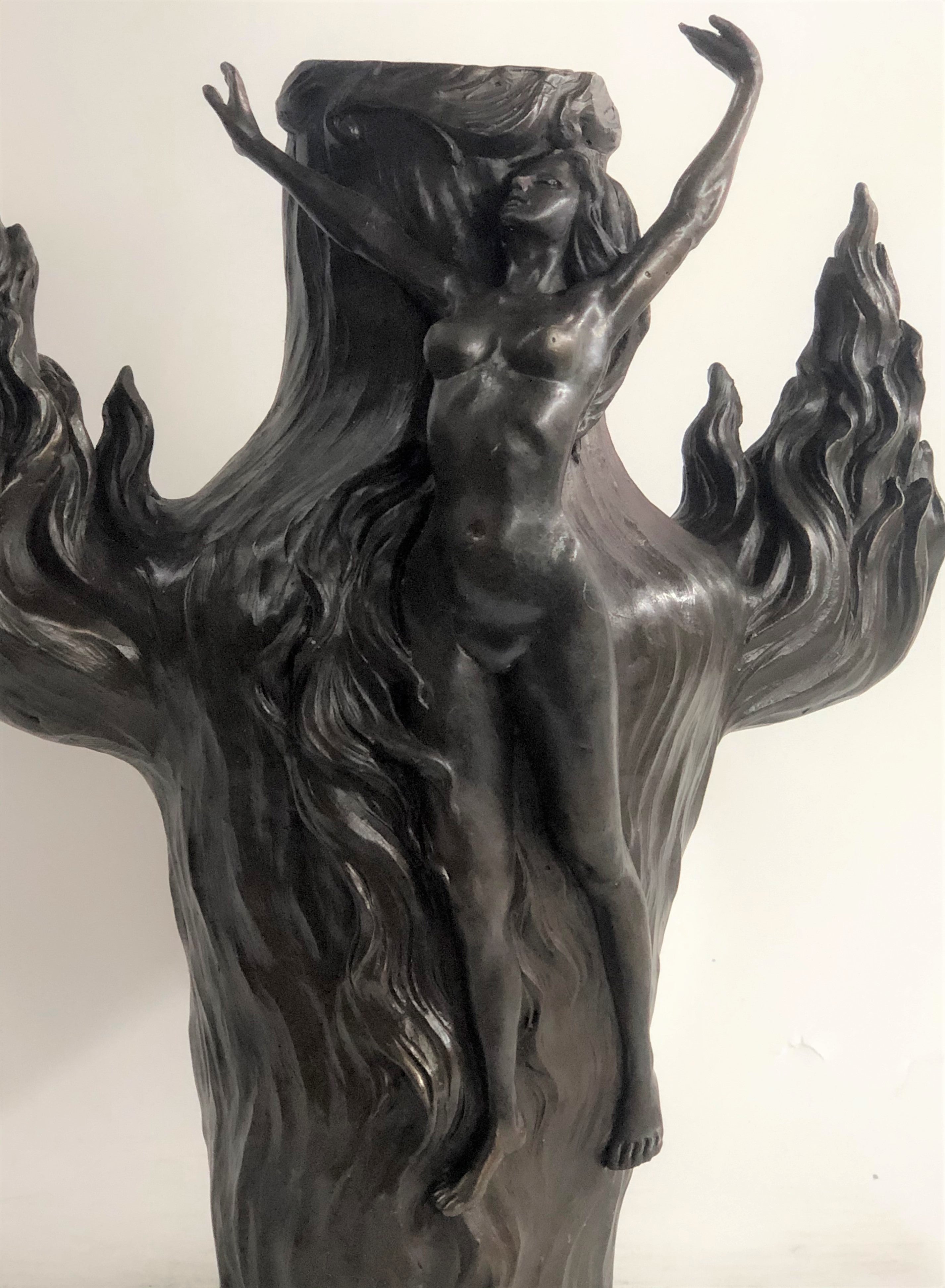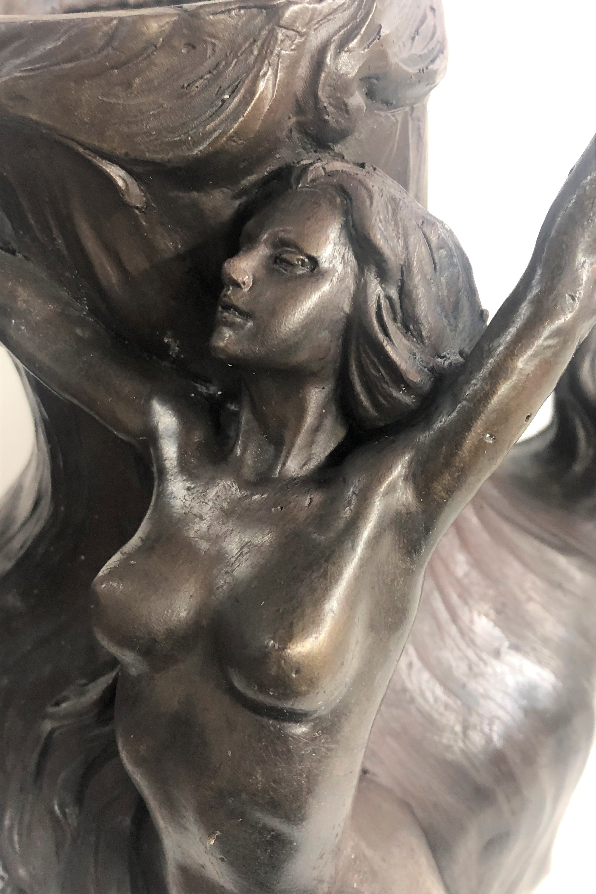 This stunning vase is a true statement piece that commands attention with its captivating design. Adorned with nude nymphs encircling the vase, their graceful forms resembling blossoming flowers, it exudes elegance and charm. The seamless integration of the nymphs with the vase, as if they are growing from it, adds to its allure and makes it a striking focal point in any room.