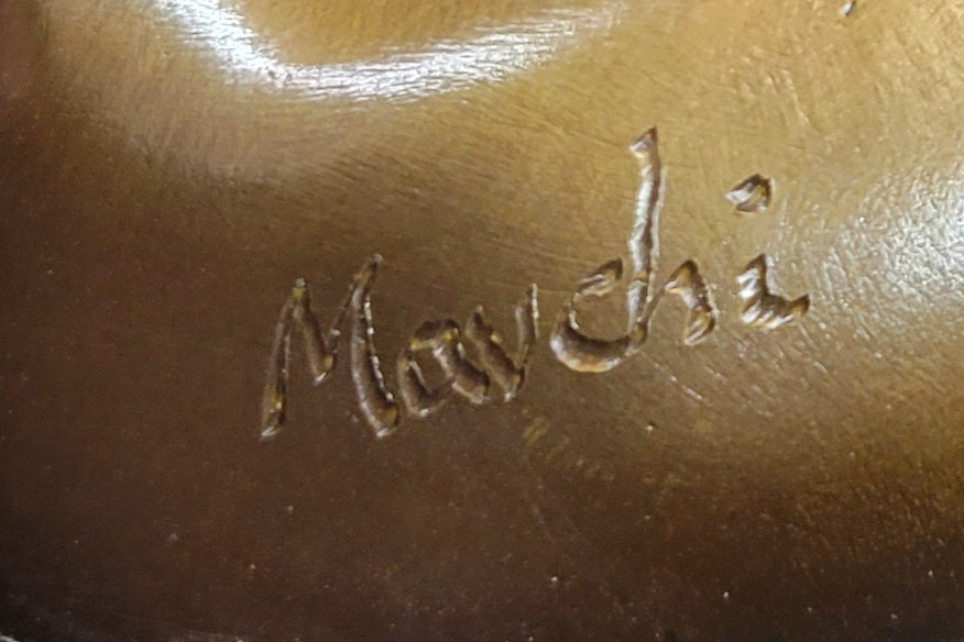Paying homage to the timeless allure of the classic pin-up style from the 1940s and 1950s, this sculpture adds a contemporary twist that highlights the enduring beauty and strength of women, regardless of their shapes and sizes. Crafted using the intricate "Lost Wax Method," this exquisite piece features a striking two-tone brown and green patina, lending it a captivating visual appeal and a sense of dynamic vitality. Meticulously handcrafted with a keen eye for detail, the sculpture stands as a testament to the artist Mavchi's commitment to capturing the timeless essence of feminine beauty and empowerment. Bearing the distinguished signature of the artist, this sculpture serves as an exquisite representation of the enduring legacy and allure of the female form in art, making it a valuable addition to any discerning art collector's ensemble.Bronze Dimensions with Marble Base: Height 10" X Width 5"