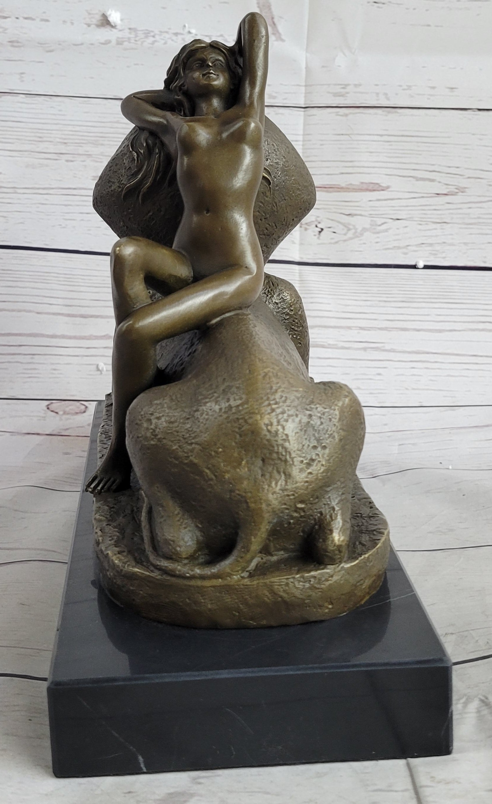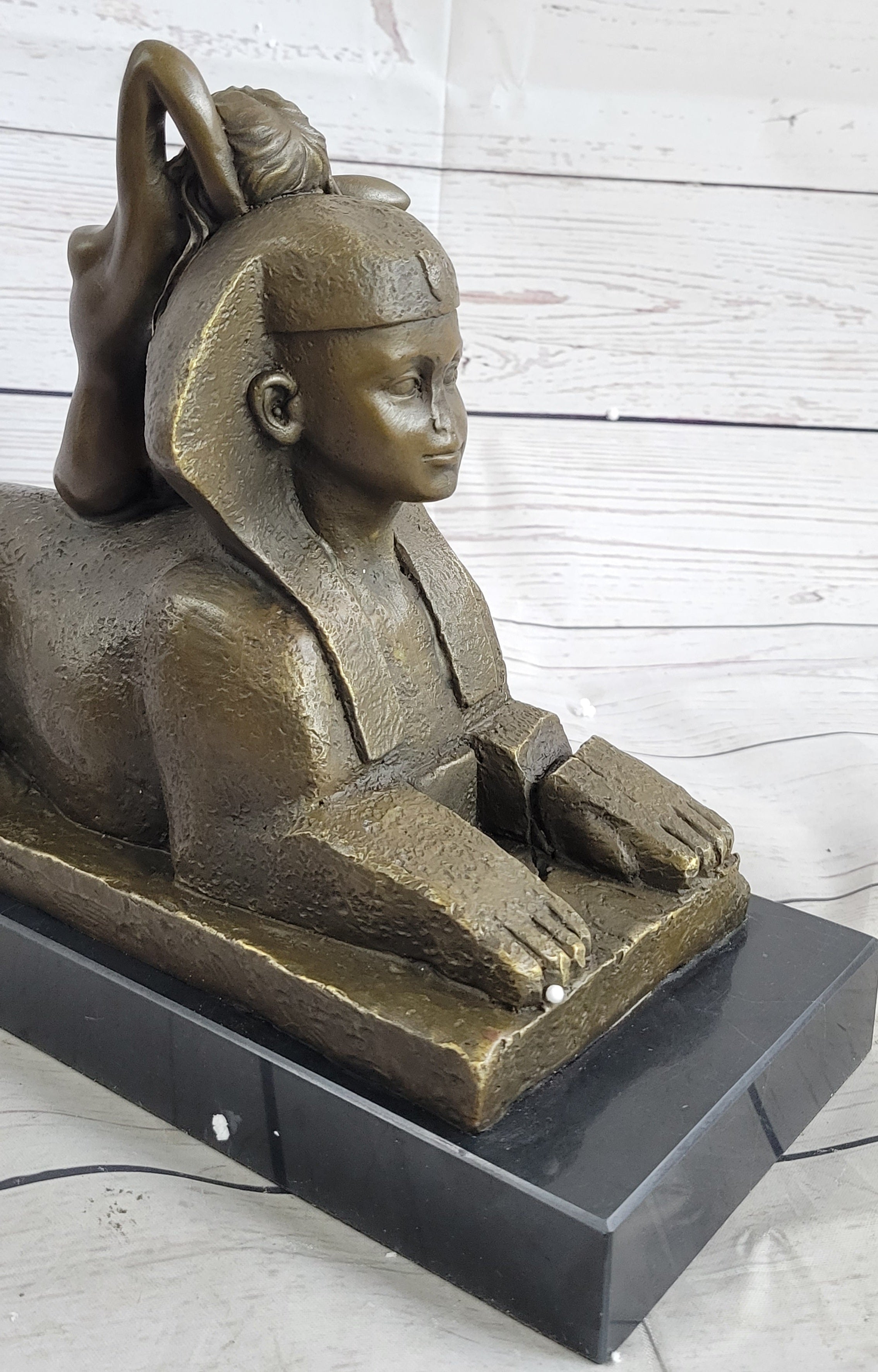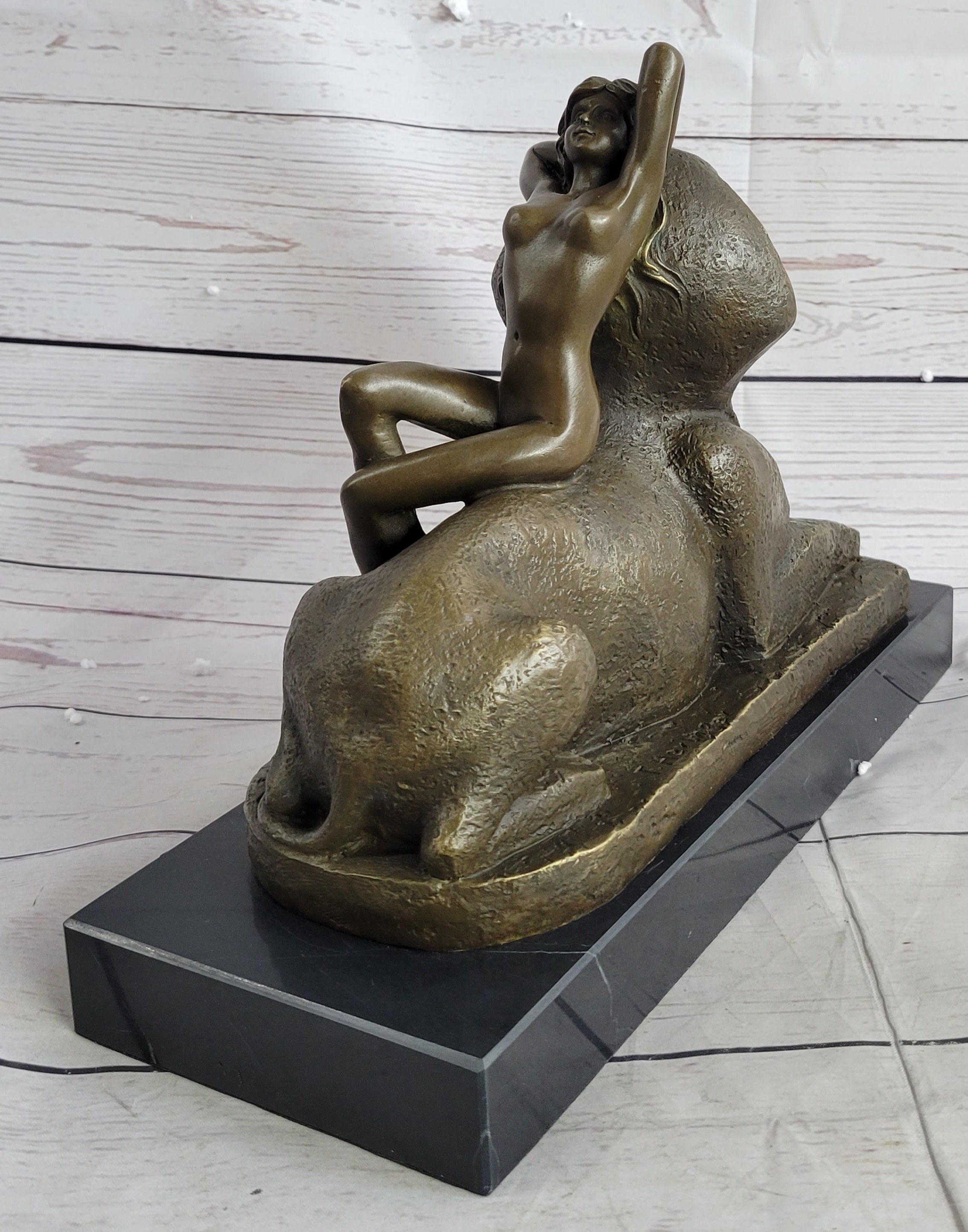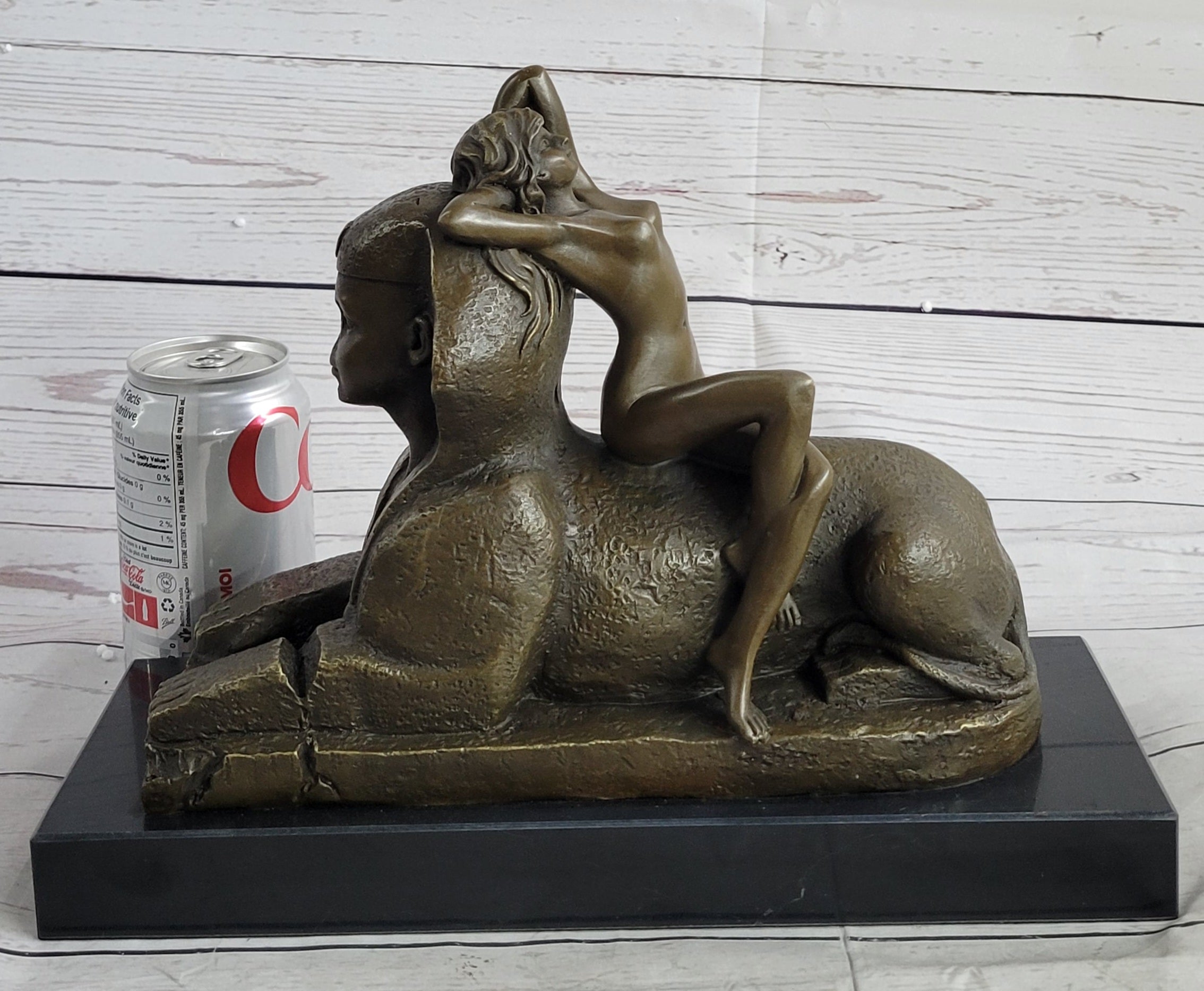 SPHINX by T. Herlinger (1904) Bronze Sculpture Statue Nude Female Figure Marble Base
