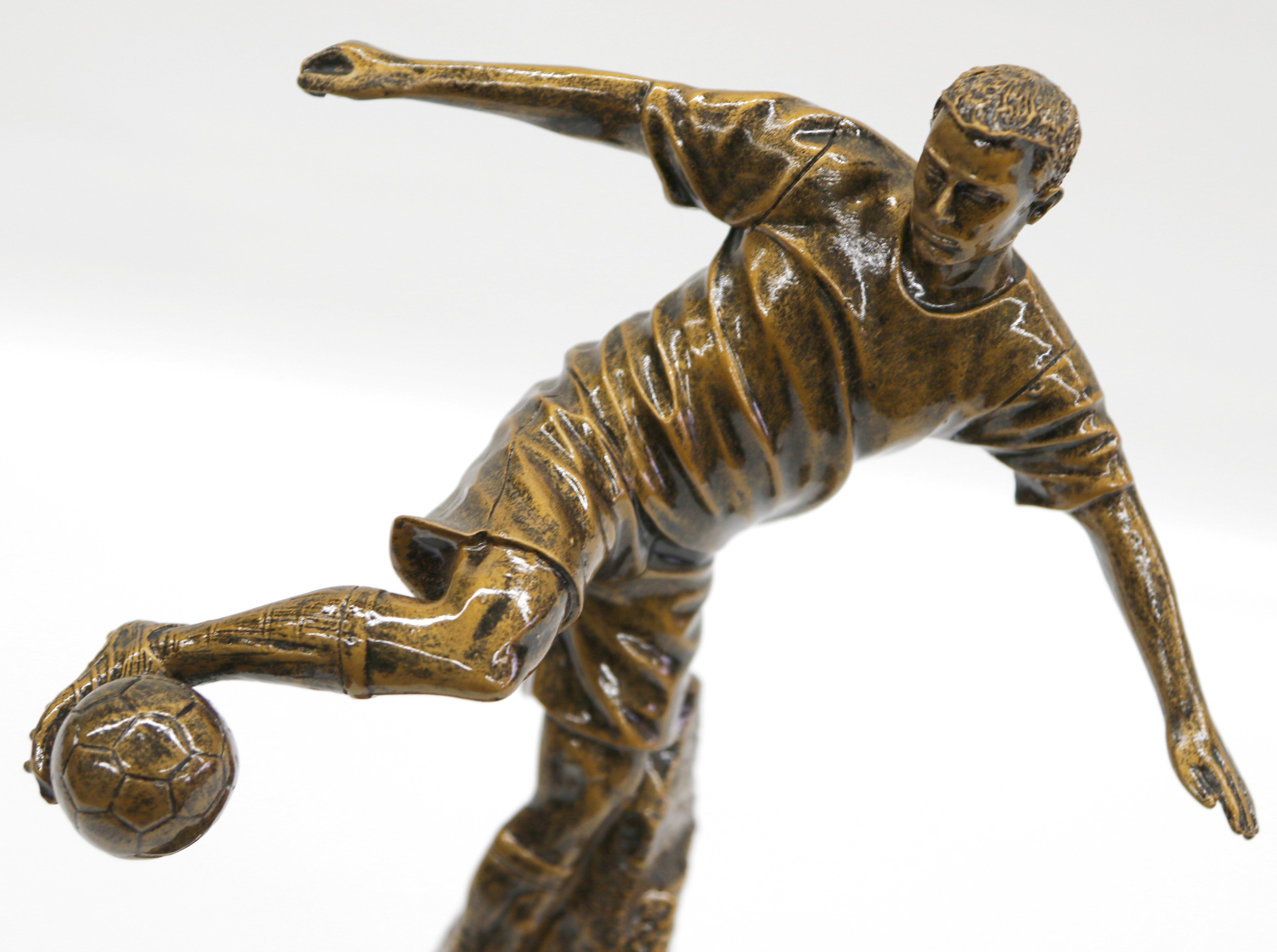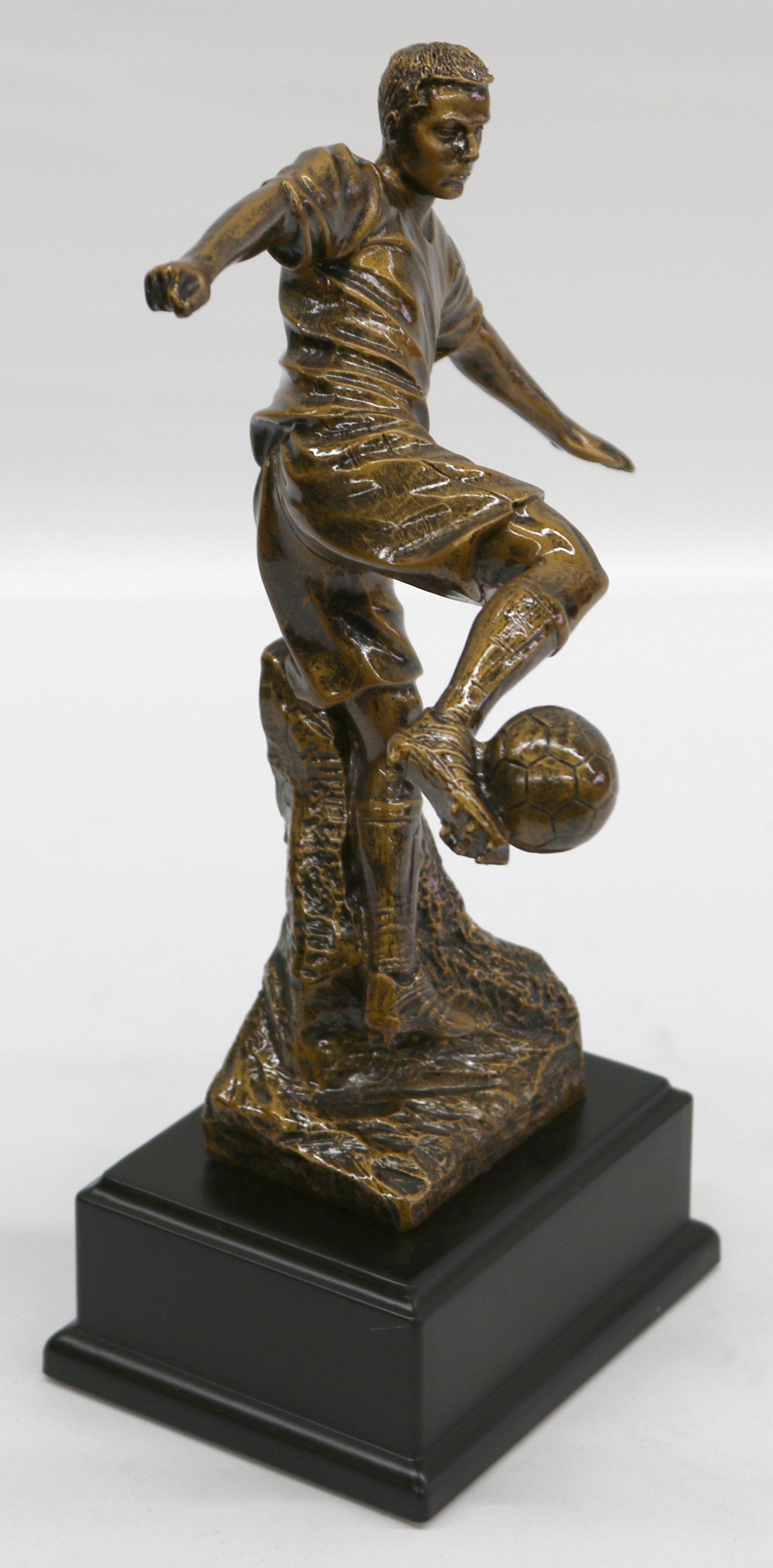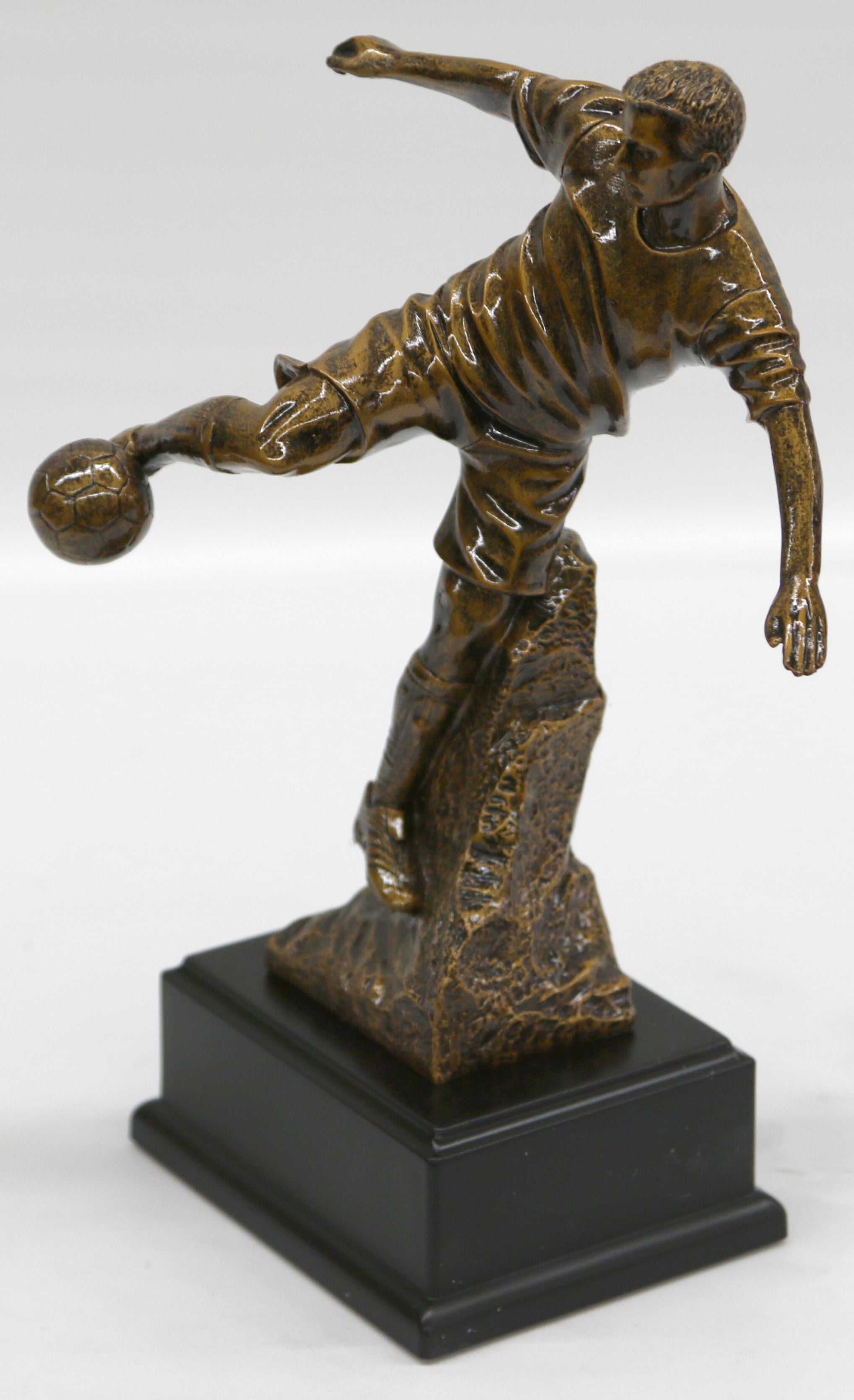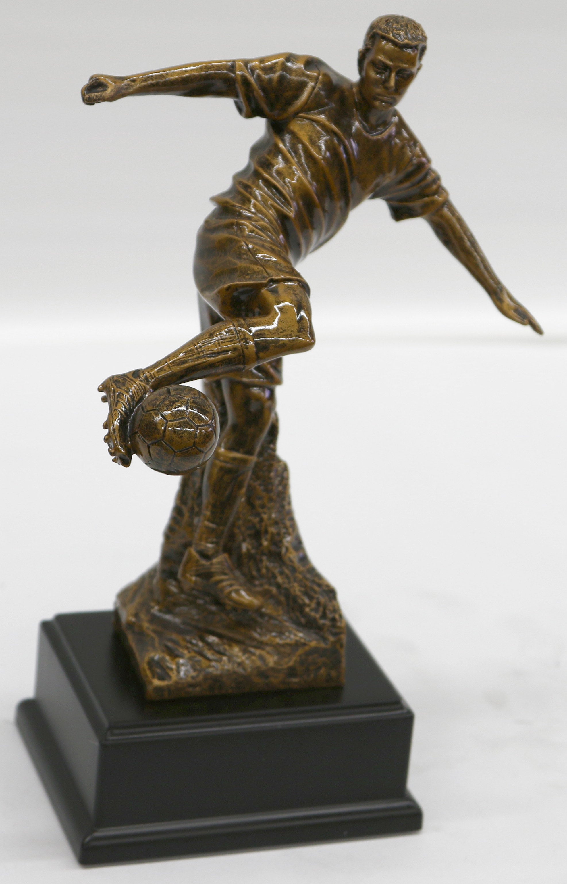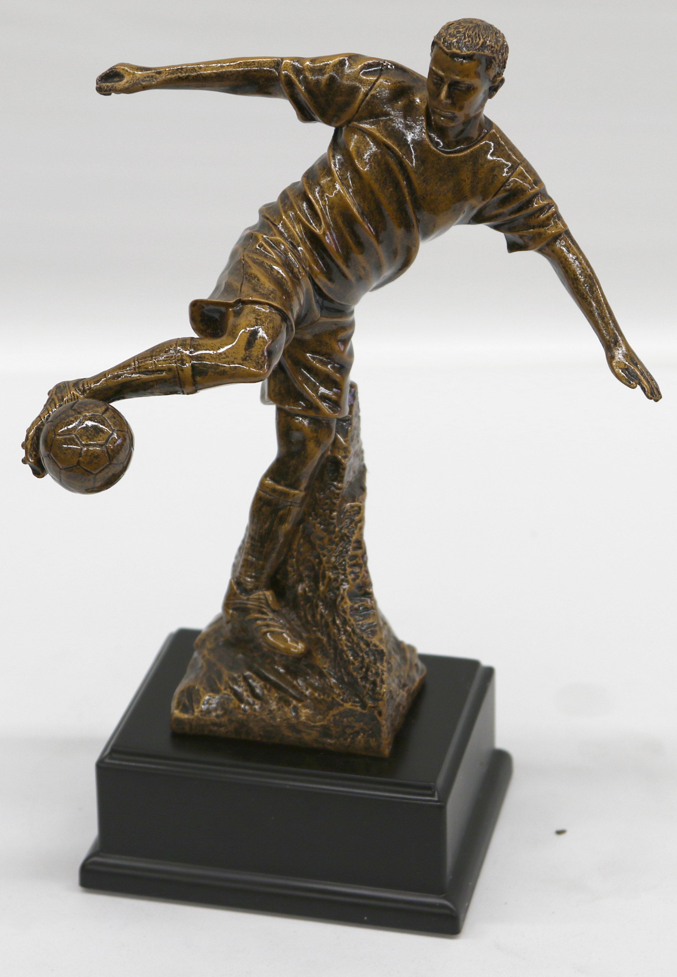 Sport Memorabilia Bronze Covered Male Soccer Player Hand Made Sculpture Figurine