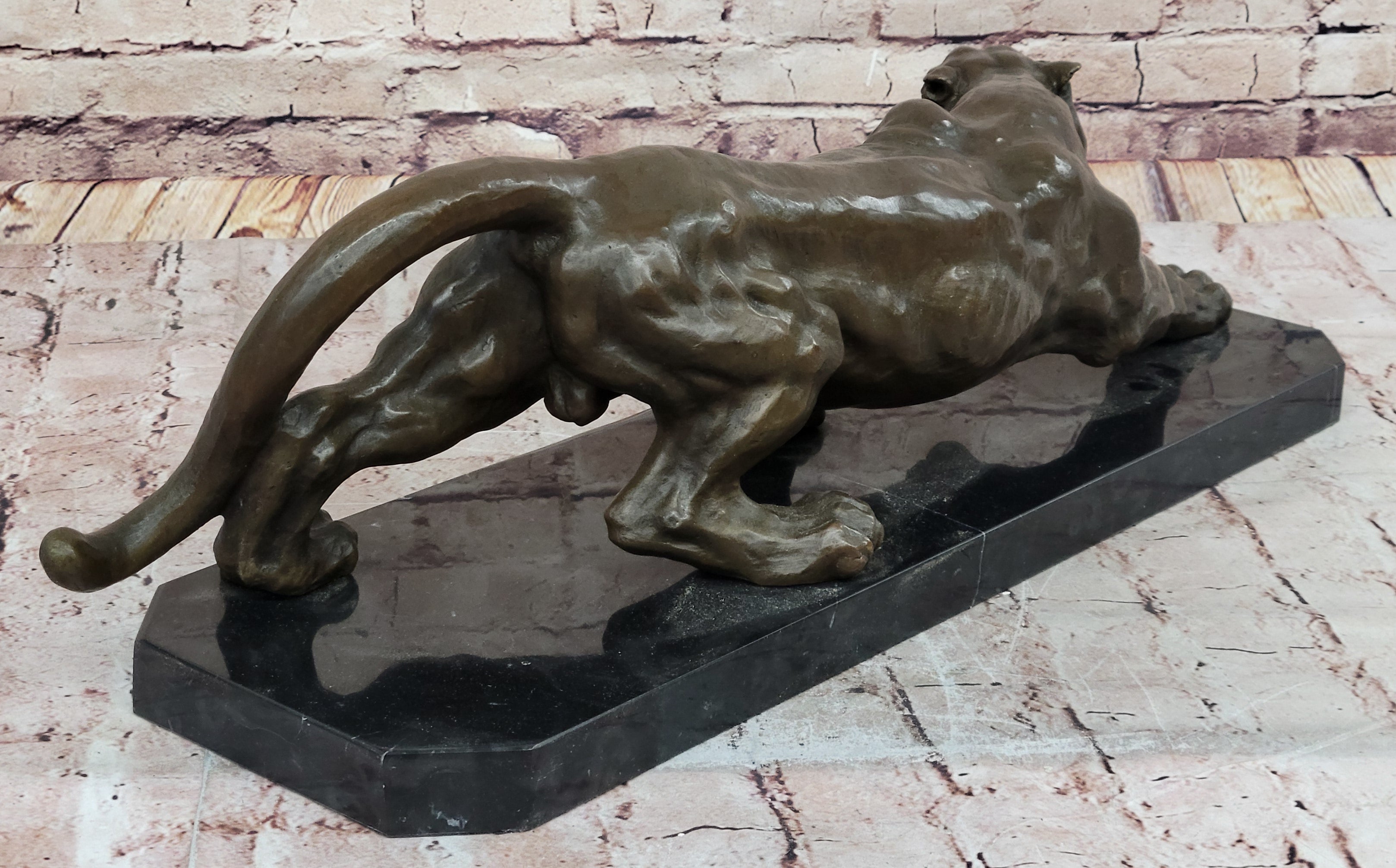 Stalking Panther Cougar Lioness Bronze Sculpture Statue Figure Art on Marble Base